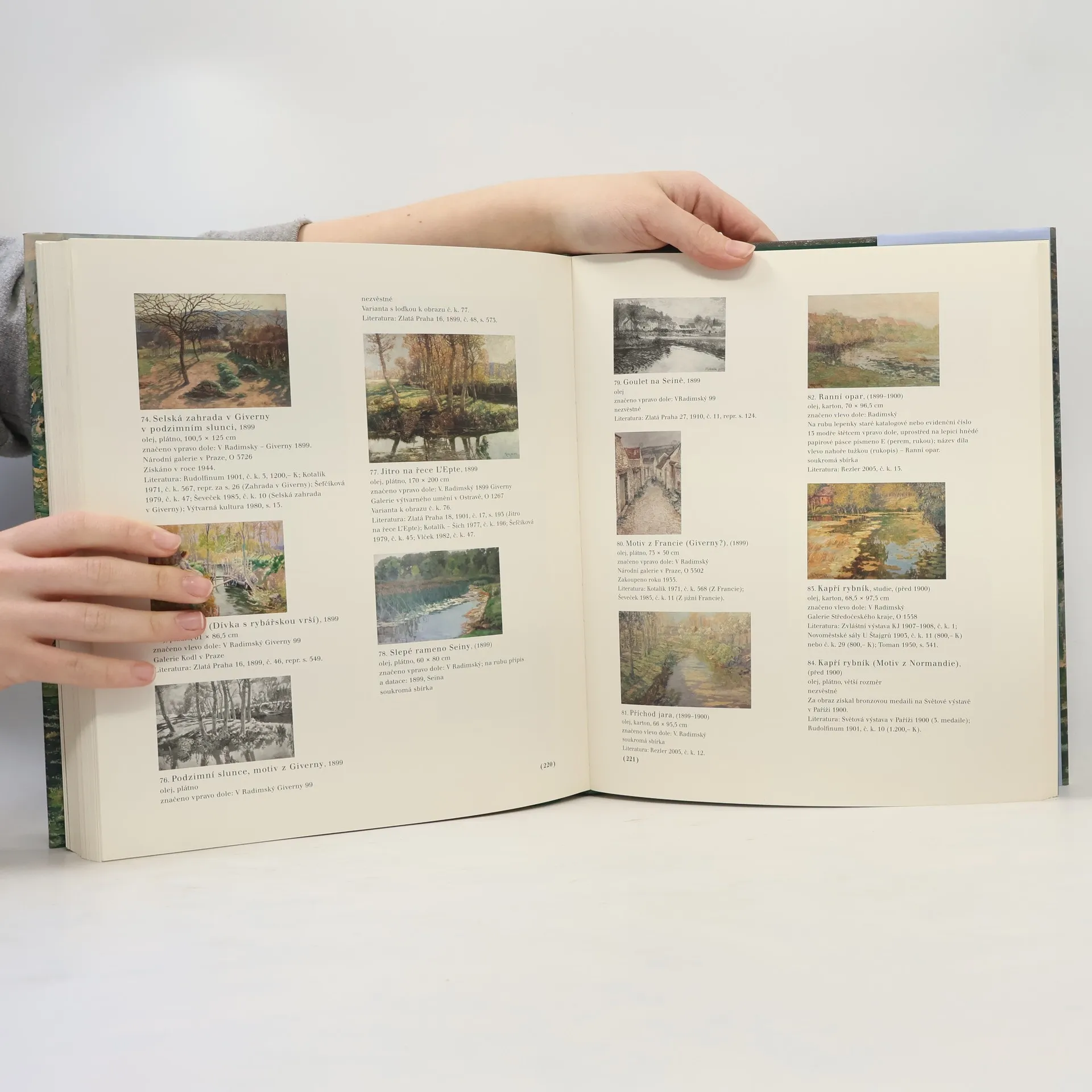 Václav Radimský (1867-1946) patřil ve své době k výrazným a zajímavým osobnostem nejen české, ale i francouzské krajinomalby. Jako první z českých malířů se nechal ve Francii ovlivnit impresionismem a byl prvním českým výtvarníkem, jenž seznámil pražskou veřejnost s tímto proudem. Radimského tvorbu můžeme rozdělit na dva námětové a časové okruhy. První spadá přibližně do let 1890-1918, kdy žil u Giverny nedaleko Vernonu a stálou inspirací se mu stala řeka Seina a příroda v okolí Giverny; tehdy se přátelil s Paulem Cézannem a spolupracoval mimo jiné i s Claudem Monetem. Druhý je vymezen Radimského návratem do Čech po skončení první světové války a jeho smrtí. Se stejnou intenzitou se tehdy soustředil převážně na zobrazování řeky Labe a krajiny kolem Kolína. První monografie tohoto nyní znovu vysoce oceňovaného umělce, vydávaná nakladatelstvím Arbor vitae, konečně splácí dluh, který historie umění vůči malíři dlouhodobě měla. Kromě statí hlavní autorky Naděždy Blažíčkové-Horové přináší i studii Markéty Theinhardtové věnovanou vztahům umělcovy tvorby s francouzským moderním uměním, obsahuje výběrový soupis díla s téměř pěti sty barevnými reprodukcemi a je vybavena podrobným francouzským a anglickým resumé.