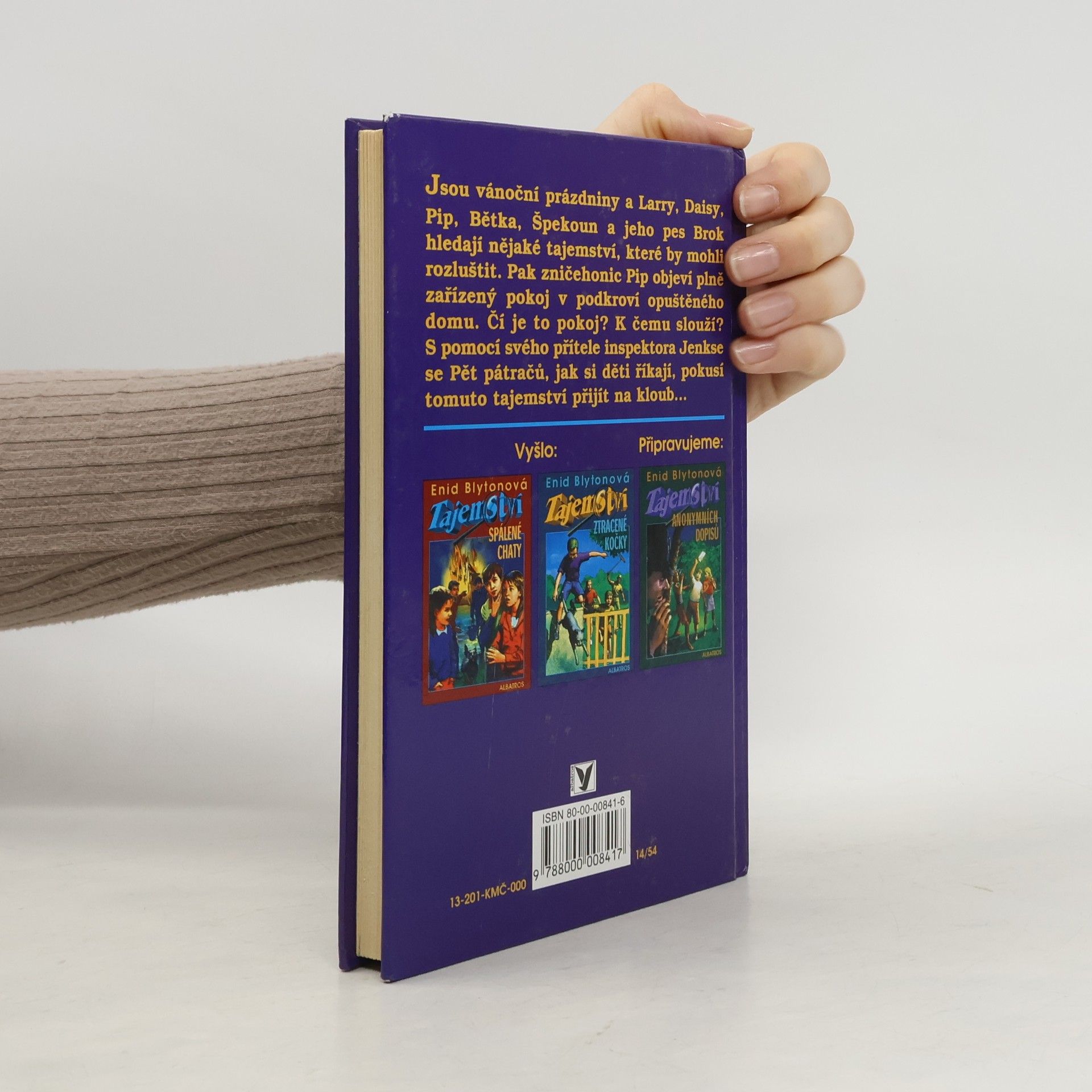 V pořadí třetí knížka z řady Tajemství. Jsou vánoční prázdniny a Larry, Daisy, Pip, Bětka, Špekoun a jeho pes Brok by rádi luštili nějaký zapeklitý případ. Jinak by přece prázdniny nestály za nic! Pak zničehonic Pip objeví dokonale zařízený pokoj v podkroví opuštěného domu a děti jsou ve svém živlu. Čí je to pokoj? Čemu a komu slouží? Proč je uklízený a zařízený a proč tajemného obyvatele nikdo z okolí nespatřil? I když místní policista Goon, "Zmizík", jak mu děti říkají, případ spíše zamotá, než by pomohl vyřešit, děti s pomocí svého starého přítele, inspektora Jenkse, zapeklitý případ vyřeší, odhalí podvodníky a vysvobodí Špekouna ze skutečného nebezpečí.