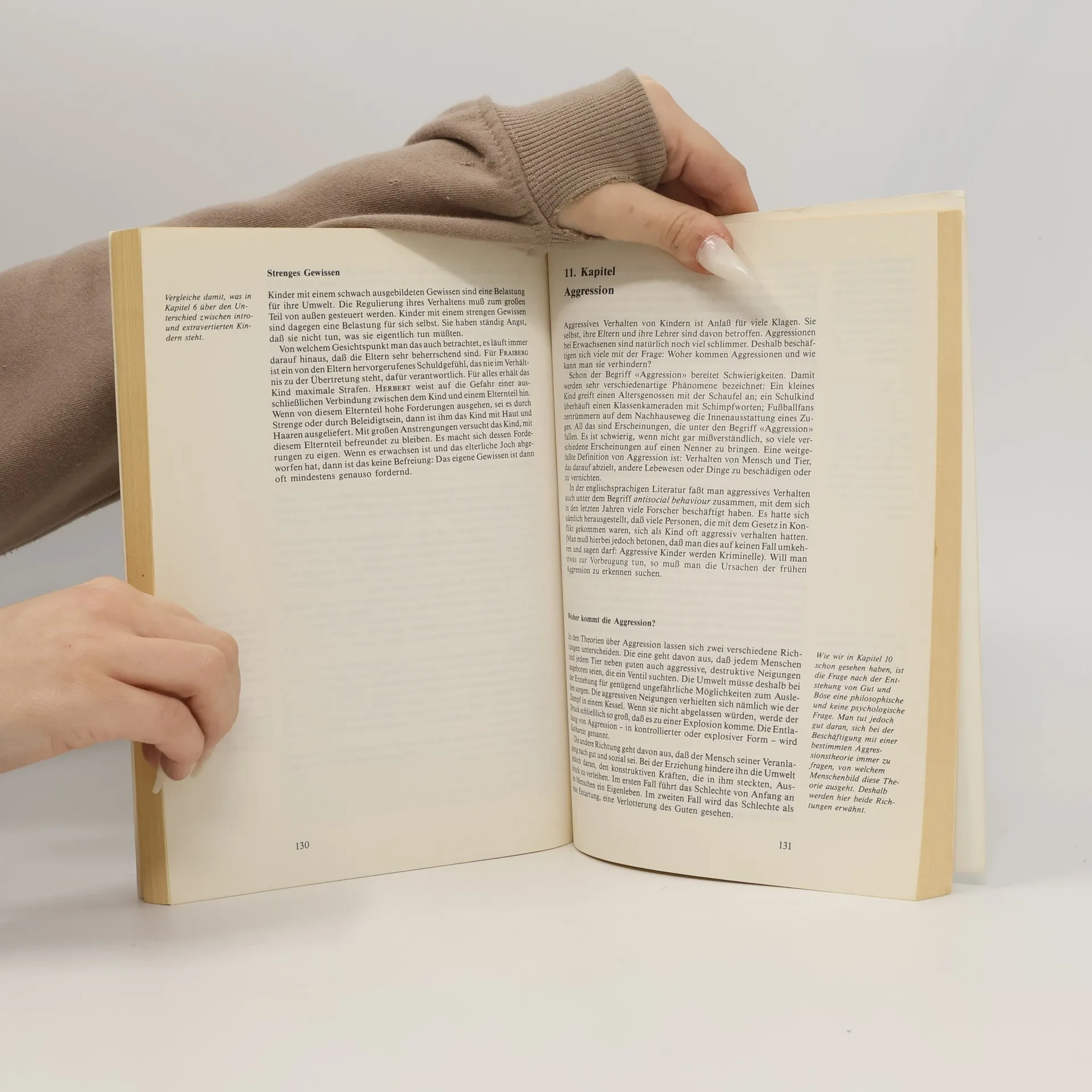 Inhaltsübersicht: Einleitung von Hans Aebli, 1. Welche Faktoren spielen bei der Entwicklung des Säuglings eine Rolle?, 2. Die Entwicklung der Sinnesorgane, 3. Die Entwicklung der Körperbeherrschung, 4. Wie lernen Kinder? 5. Von der Abhängigkeit über Anhänglichkeit zur Selbständigkeit, 6. Elemente der Persönlichkeit, 7. Selbstbewusstsein und Selbsterkennntis, 8. Die Stellung in der Geschwisterreihe, 9. Kinderängste, 10. Gewissensbildung, 11. Aggression, 12. Die sexuelle Entwicklung, 13. Phantasie, 14. Die Entwicklung des Spielens, 15. Kinderzeichnungen, 16. Die Sprachentwicklung, 17. Die Entwicklung des Denkens, 18. Soziale Entwicklung, Literaturhinweise, Register, Personenregister, Sachregister.