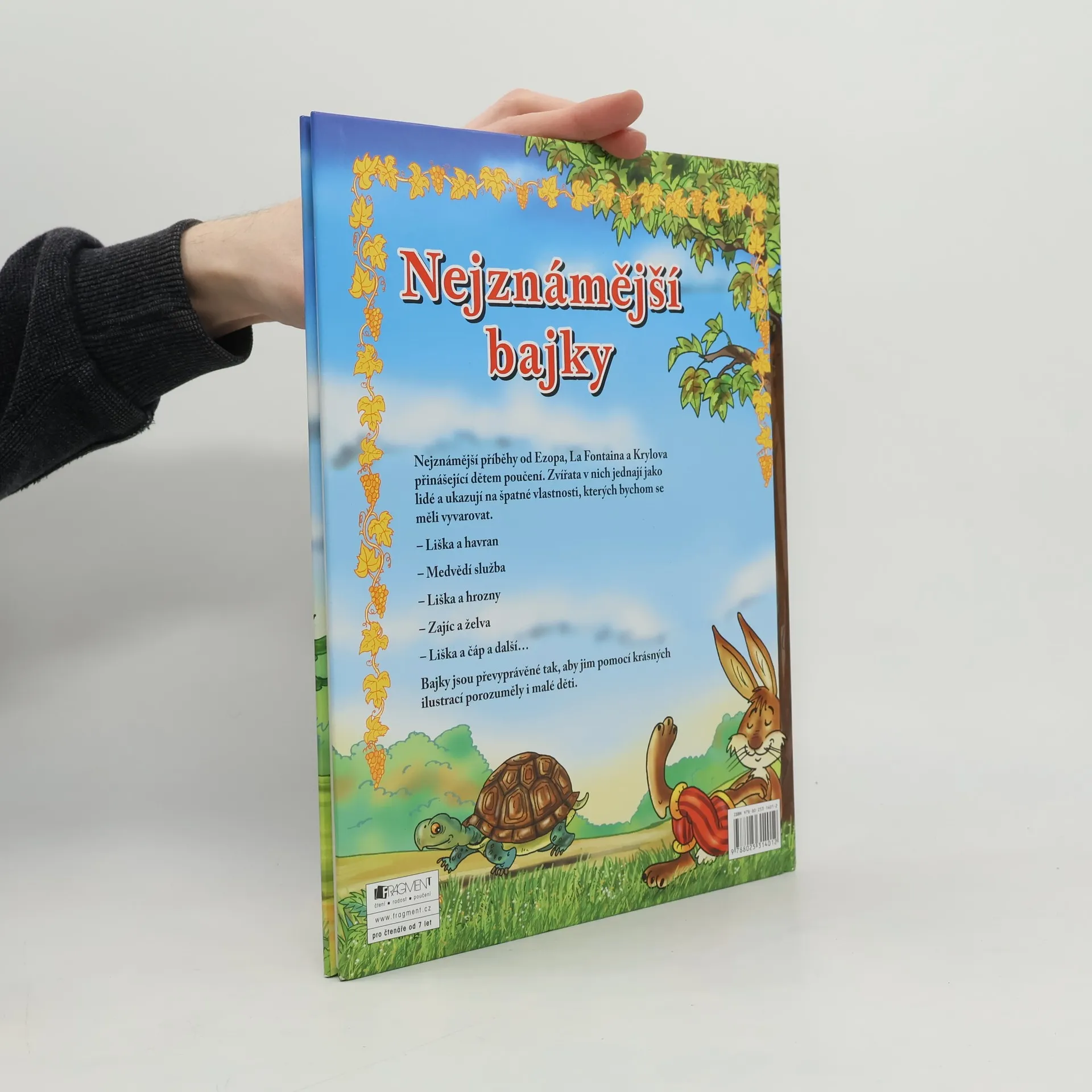 Nejznámější příběhy od Ezopa, La Fontaina a Krylova, ve kterých zvířata jednají jako lidé a které chytrou a humornou formou ukazují na nešvary a vlastnosti, kterých bychom se měli vyvarovat:- Liška a havran- Medvědí služba- Liška a hrozny- Zajíc a želva- Liška a čápBajky jsou převyprávěny tak, aby jim pomocí krásných ilustrací Antonína Šplíchala porozuměly i malé děti. Součástí výtvarně pozoruhodné knihy je téměř sedmdesát fotografií Vlada Bohdana. Volně navazuje na velmi úspěšný titul Jak potkat děti, jen se jeho autoři posunuli v čase a místo "jak" přichází "proč".