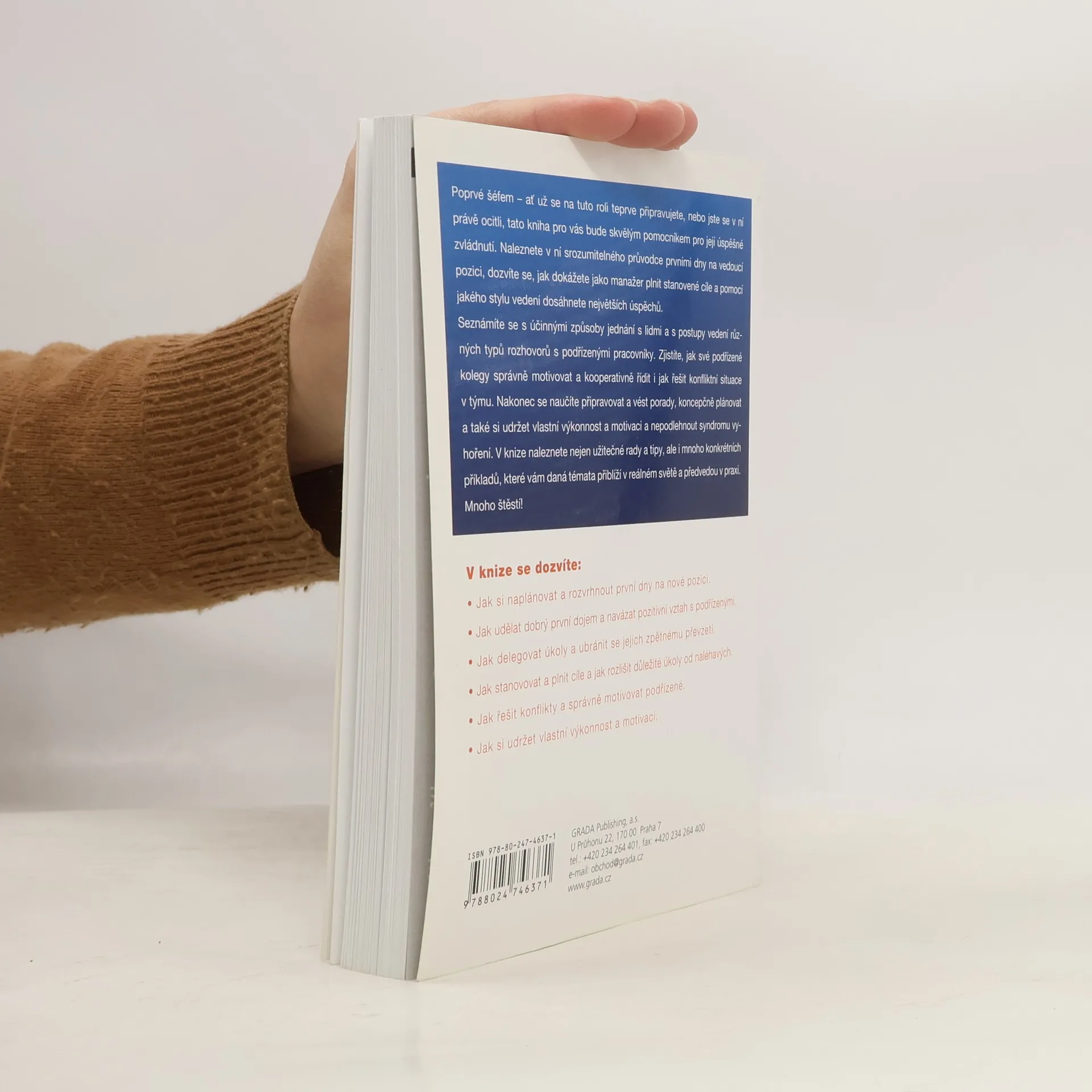 Poprvé šéfem - ať už se na tuto roli teprve připravujete, nebo jste se v ní právě ocitli, tato kniha pro vás bude skvělým pomocníkem pro její úspěšné zvládnutí. Naleznete v ní srozumitelného průvodce prvními dny na vedoucí pozici, dozvíte se, jak dokážete jako manažer plnit stanovené cíle a pomocí jakého stylu vedení dosáhnete největších úspěchů. Seznámíte se s účinnými způsoby jednání s lidmi a s postupy vedení různých typů rozhovorů s podřízenými pracovníky. Zjistíte, jak své podřízené kolegy správně motivovat a kooperativně řídit a také jak řešit konfliktní situace v týmu. Nakonec se naučíte připravovat a vést porady, koncepčně plánovat a také si udržet vlastní výkonnost a motivaci a nepodlehnout syndromu vyhoření. V knize naleznete nejen užitečné rady a tipy, ale i mnoho konkrétních příkladů, které vám daná témata přiblíží v reálném světě a předvedou v praxi. Mnoho štěstí! V knize se dozvíte: - Jak si naplánovat a rozvrhnout první dny na nové pozici. - Jak udělat dobrý první dojem a navázat pozitivní vztah s podřízenými. - Jak delegovat úkoly a ubránit se jejich zpětnému převzetí. - Jak stanovovat a plnit cíle a jak rozlišit důležité úkoly od naléhavých. - Jak řešit konflikty a správně motivovat podřízené. - Jak si udržet vlastní výkonnost a motivaci.