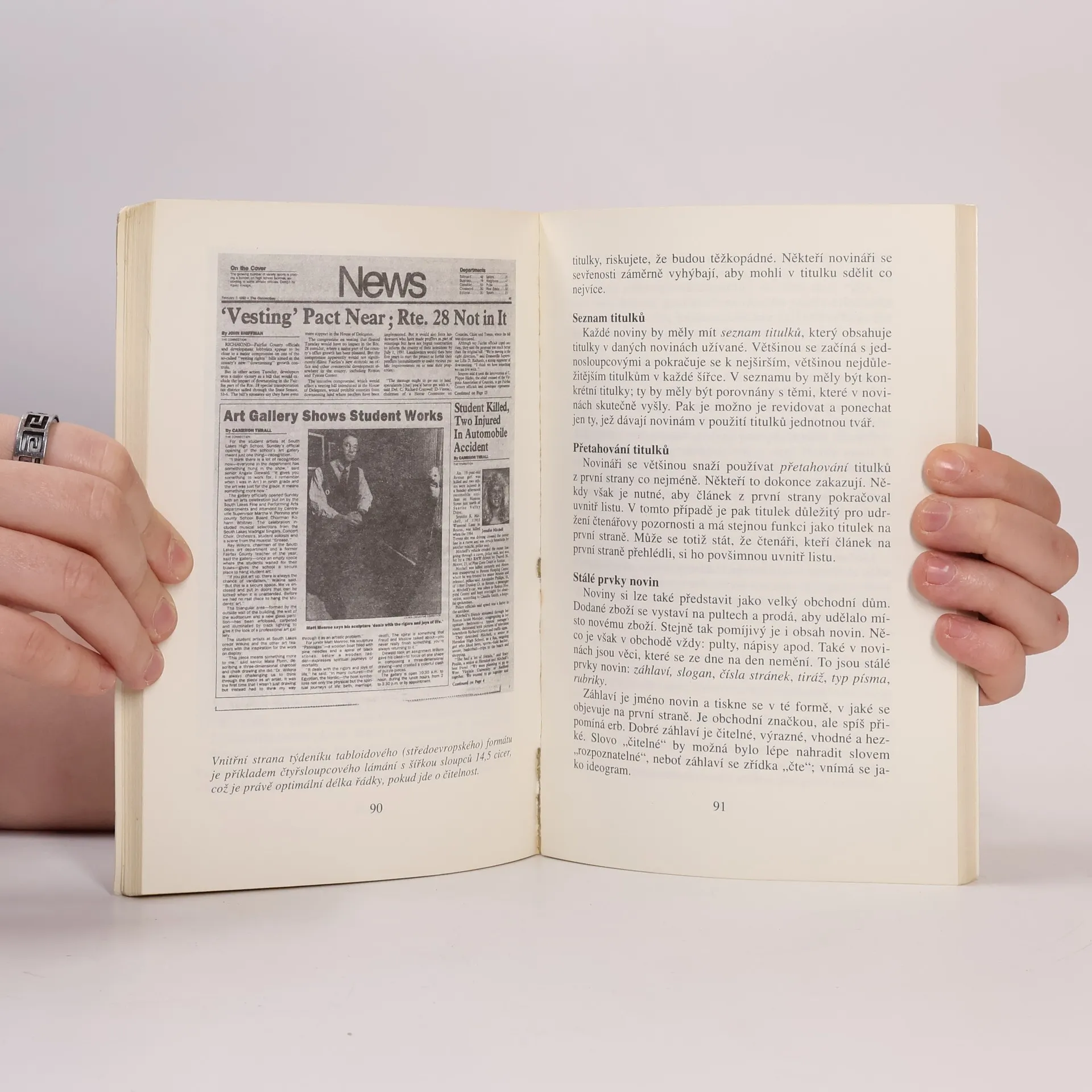 Text publikace vznikl krátce po Sametové revoluci z důvodu nových potřeb vznikajících médií rodící se svobodné společnosti. Na knize se podílely desítky novinářů. Je určitým pohledem na fungování mediálního prostředí. Obsahuje řadu kapitol, jejichž obsah lze využít ve výuce jazykové komunikace, výchovy k občanství, etické výchovy apod. Mezi rozhodně zajímavé patří kapitoly: Umění rozhovoru, Struktura novin (zde si ujasníme odpovědnosti jednotlivých rolí v týmu vytvářejícím zpravodajství), Věrohodnost, Psaní titulků, ale i Výběr fotografií.