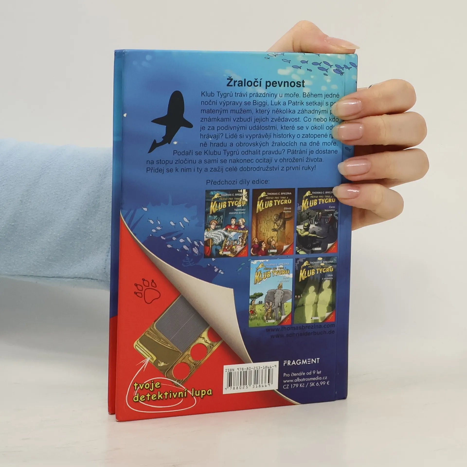 Klub Tygrů tráví prázdniny u moře. Během jedné noční výpravy se Biggi, Luk a Patrik setkají s pomateným mužem, který několika záhadnými poznámkami vzbudí jejich zvědavost. Co nebo kdo je za podivnými událostmi, které se v okolí odehrávají? Lidé si vyprávějí historky o zatopené ruině hradu a obrovských žralocích na dně moře. Podaří se Klubu Tygrů odhalit pravdu? Pátrání je dostane na stopu zločinu a sami se nakonec ocitají v ohrožení života. Přidej se k nim i ty a zažij celé dobrodružství z první ruky!