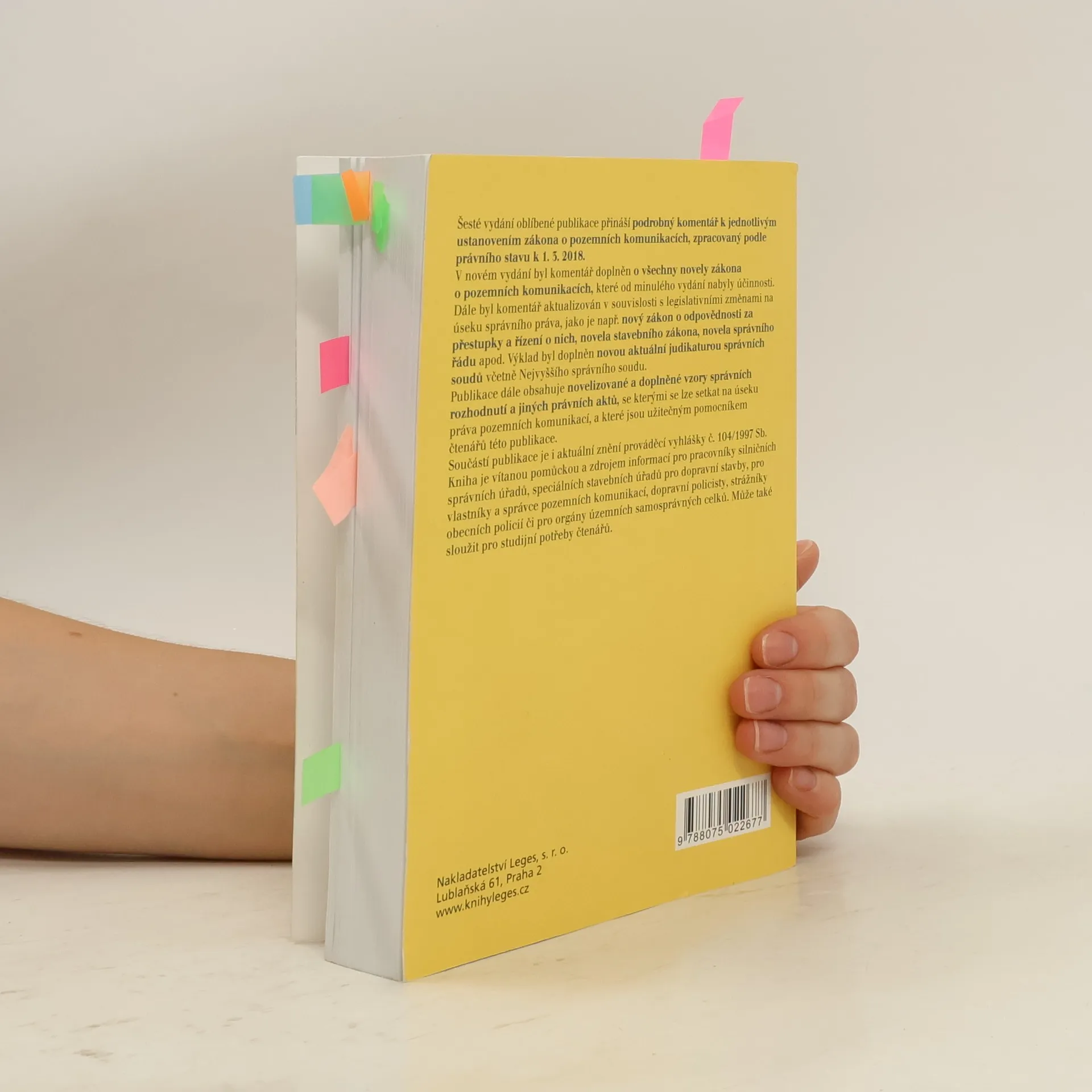 Šesté vydání oblíbené publikace přináší podrobný komentář k jednotlivým ustanovením zákona o pozemních komunikacích, zpracovaný podle právního stavu k 1. 3. 2018. Nové vydání obsahuje všechny novely zákona o pozemních komunikacích, které v mezidobí od předešlého vydání nabyly účinnosti. Dále je komentář doplněn o novou aktuální judikaturu správních soudů a celkově je text komentáře aktualizován a přizpůsoben platnému právnímu řádu, tj. zejména novým právním předpisům na úseku správního práva (kupř. novému zákonu o odpovědnosti za přestupky a řízení o nich, novele stavebního zákona, novele správního řádu apod.). Publikace dále obsahuje novelizované a doplněné vzory správních rozhodnutí a jiných právních aktů, se kterými se lze setkat na úseku práva pozemních komunikací, a které jsou užitečným pomocníkem čtenářům této publikace. Součástí komentáře je i aktuální znění prováděcí vyhlášky č. 104/1997 Sb. Kniha je vítanou pomůckou a zdrojem informací pro pracovníky silničních správních úřadů, speciálních stavebních úřadů pro dopravní stavby, pro vlastníky a správce pozemních komunikací, dopravní policisty, strážníky obecních policií či pro orgány územních samosprávných celků. Může také sloužit pro studijní potřeby čtenářů.