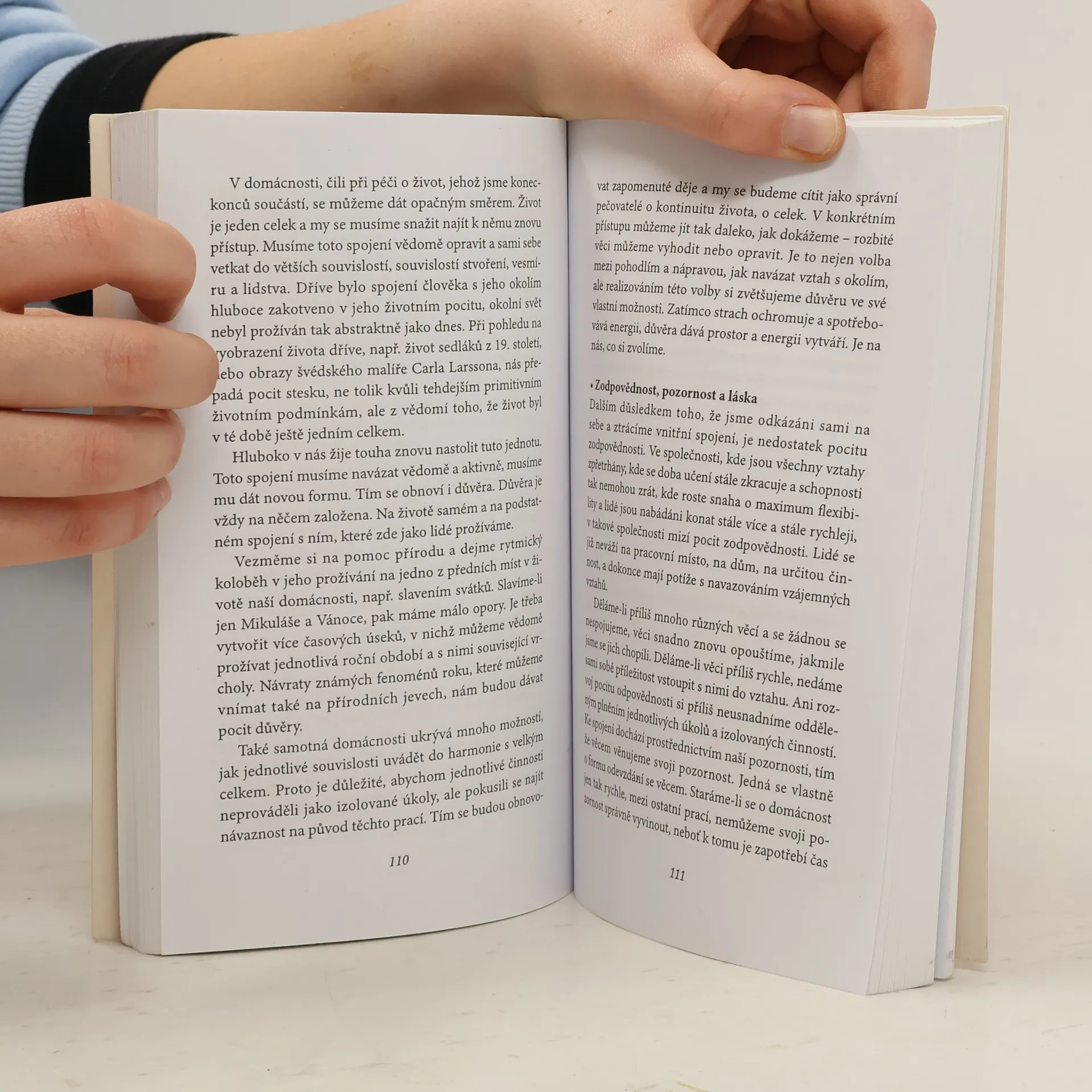 Autorka představuje ve své knize pokus podívat se na domácnost a rodinu z pozitivního a kvalitativního hlediska. Zkoumá, jaký smysl může mít domácnost pro dítě v prvních sedmi letech nebo pro školáka a pro dítě v pubertě. Jaké možnosti individuálního vývoje nám může domácnost nabídnout? Co můžeme v domácnosti objevovat, čemu se můžeme naučit? Jaké možnosti vývoje nabízí muži nebo ženě a jaký význam to má pro celou společnost?
