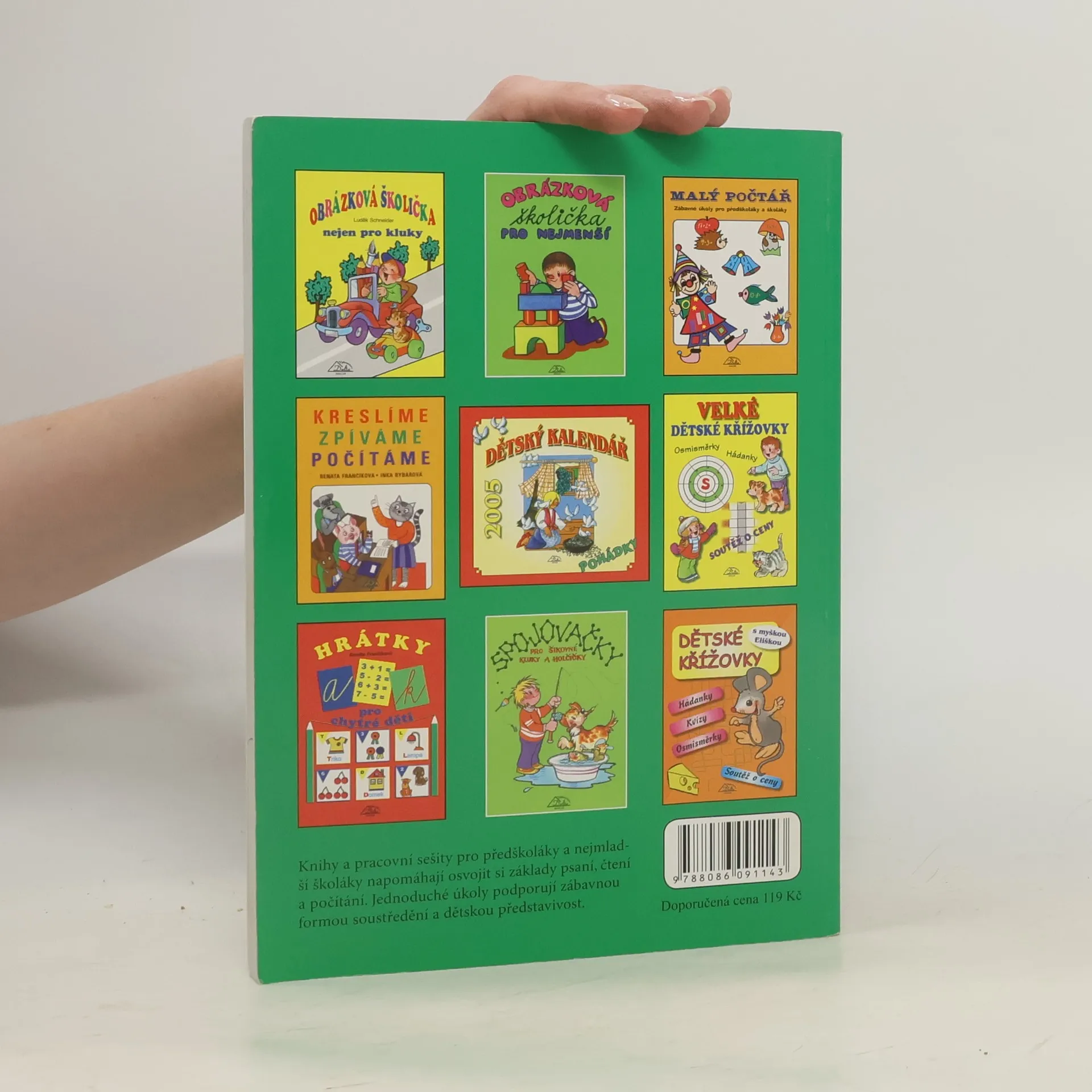 Pracovní kniha hravou formou připravuje děti na vstup do školy a napomáhá osvojit si základy čtení, psaní a počítání.