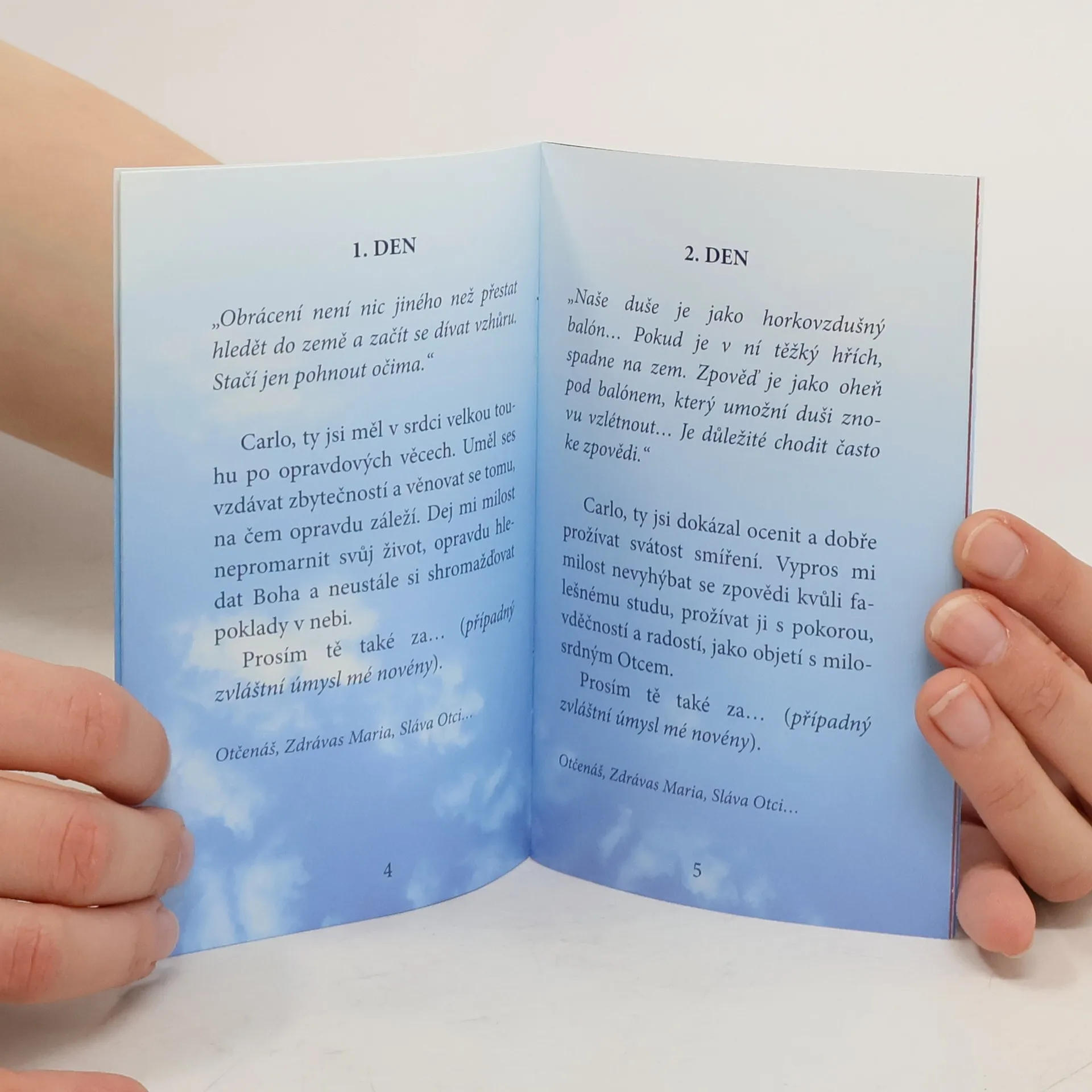 Následující novéna neboli devítidenní modlitba, při níž prosíme bl. Carla Acutise o přímluvu u Boha, je postavena na některých jeho krátkých, zato však „výživných“ výrocích. Může být použita jako mini duchovní obnova, ať už individuálně nebo ve společenství, ale také jako prosba o světlo a pomoc v nesnázích, případně jako přímluvná modlitba za druhé: za obrácení našich blízkých – sourozenců či kamarádů, rodičů, vlastních dětí nebo kmotřenců –, za uzdravení vztahů v rodině, za těžce nemocné, za lidi v závislostech atp.