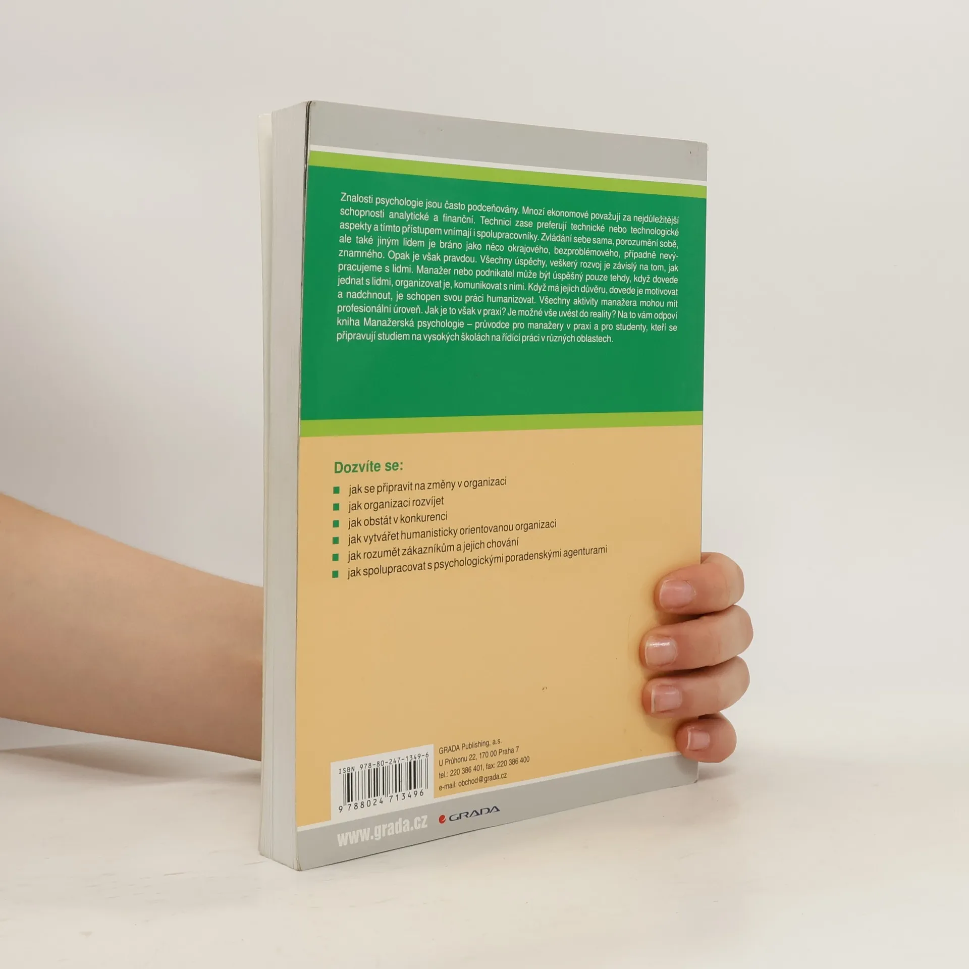 Znalosti psychologie jsou často podceňovány. Mnozí ekonomové považují za nejdůležitější schopnosti analytické a finanční. Technici zase preferují technické nebo technologické aspekty a tímto přístupem vnímají i spolupracovníky. Zvládání sebe sama, porozumění sobě, ale také jiným lidem je bráno jako něco okrajového, bezproblémového, případně nevýznamného. Opak je však pravdou. Všechny úspěchy, veškerý rozvoj je závislý na tom, jak pracujeme s lidmi. Manažer nebo podnikatel může být úspěšný pouze tehdy, když dovede jednat s lidmi, organizovat je, komunikovat s nimi. Když má jejich důvěru, dovede je motivovat a nadchnout, je schopen svou práci humanizovat. Všechny aktivity manažera mohou mít profesionální úroveň. Jak je to však v praxi? Je možné uvést do reality? Na to vše vám odpoví kniha Manažerská psychologie - průvodce pro manažery v praxi a pro studenty, kteří se připravují studiem na vysokých školách na řídící práci v různých oblastech.