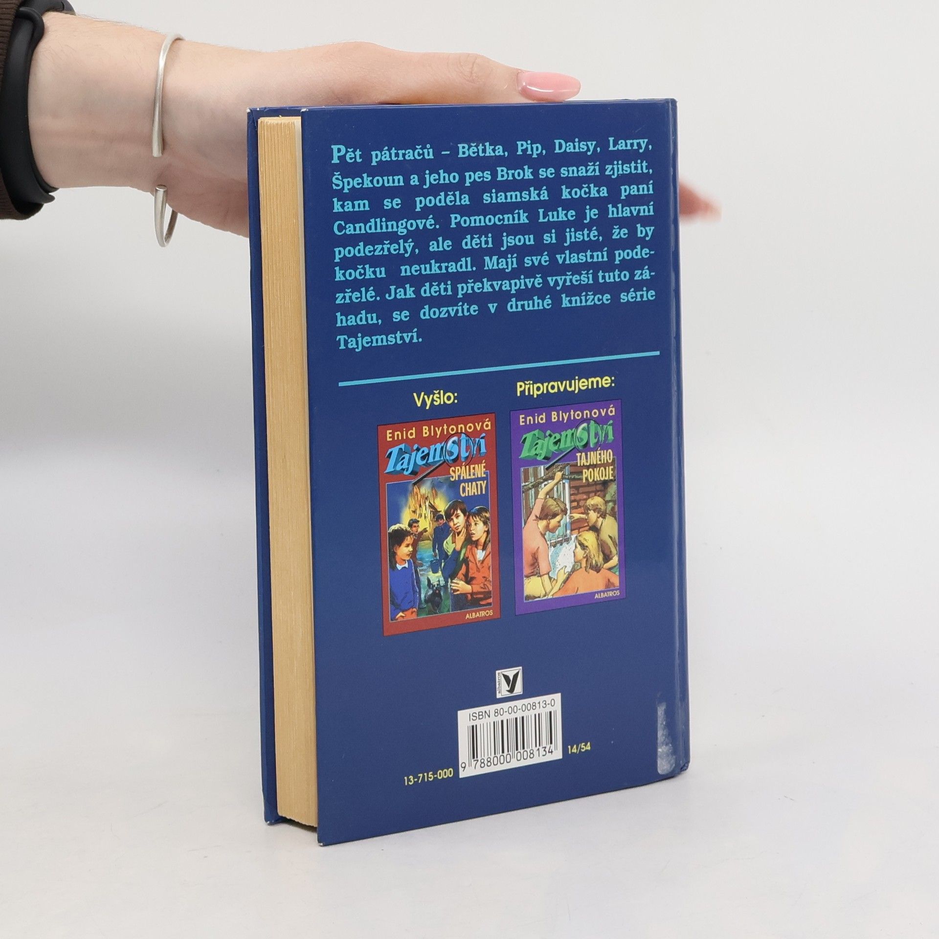 Pět pátračů - Bětka, Pip, Daisy, Larry, Špekoun a jeho pes Brok se snaží zjistit, kam se poděla siamská kočka paní Candlingové. Pomocník Luke je hlavní podezřelý, ale děti jsou si jisté, že by kočku neukradl. Mají své vlastní podezřelé. Jak děti překvapivě vyřeší tuto záhadu, se dozvíte v druhé knížce série Tajemství.