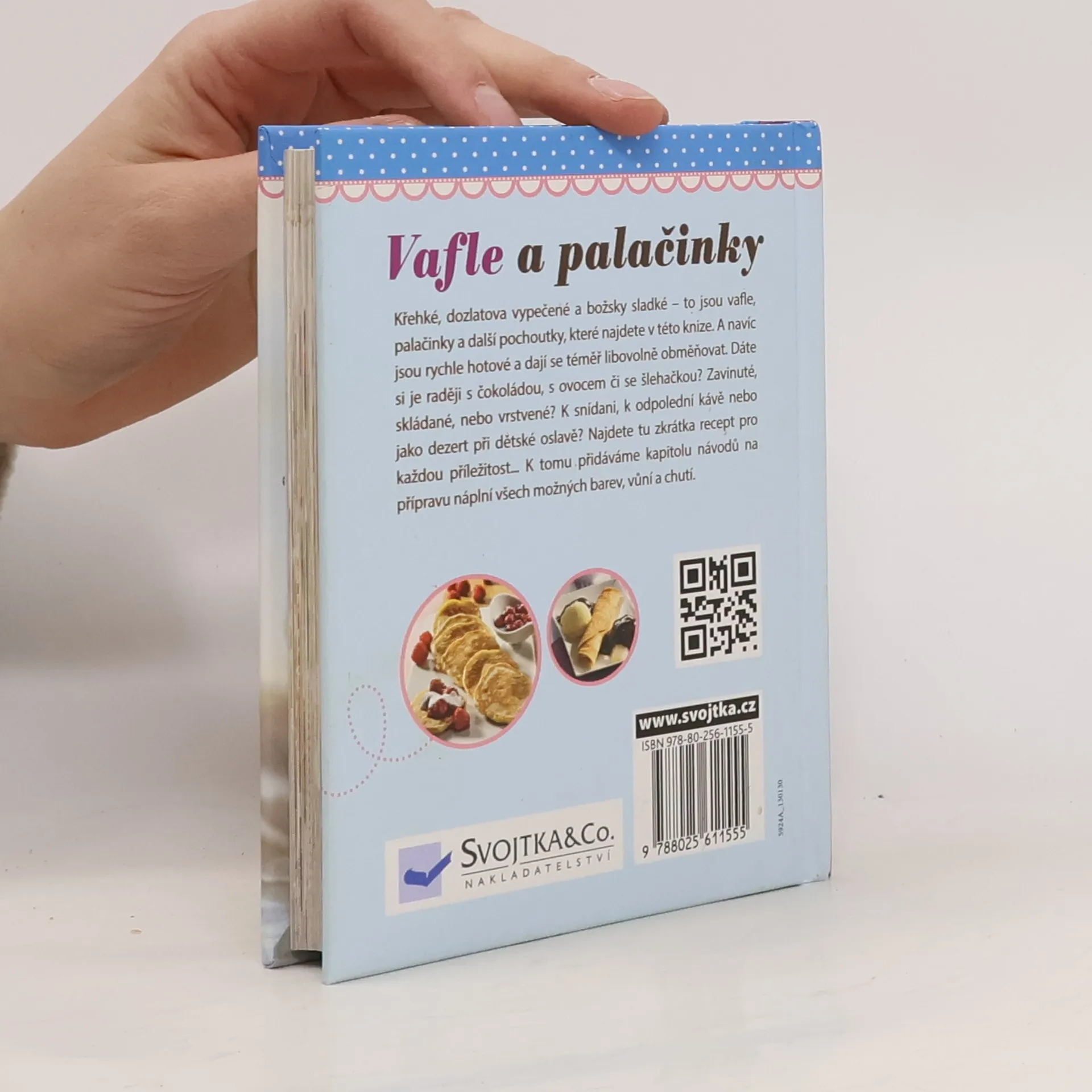 Vafle a palačinky je příručka z řady kuchařských knih, po kterých rádi sáhnete, když si budete chtít trochu netradičně osladit život. Křehké, dozlatova upečené a božsky sladké - to jsou vafle a palačinky na všechny způsoby. Dáte si je raději s čokoládou, ovocem či se šlehačkou? Zavinuté, skládané nebo snad vrstvené? Ke snídani, k odpolední kávě nebo jako dezert při dětské oslavě? Tato knížka je plná receptů pro každou příležitost. Vše je tak snadné a rychlé - na jedné straně jsou uvedeny ingredience potřebné na přípravu daného moučníku společně s postupem zpracovaným krok za krokem a na protější straně je hotový moučník vyobrazený na fotografii. K tomu přikládáme kapitolu návodů na přípravu náplní všech možných barev, vůní a chutí. Příprava vaflí a palačinek nikdy nebyla snazší!