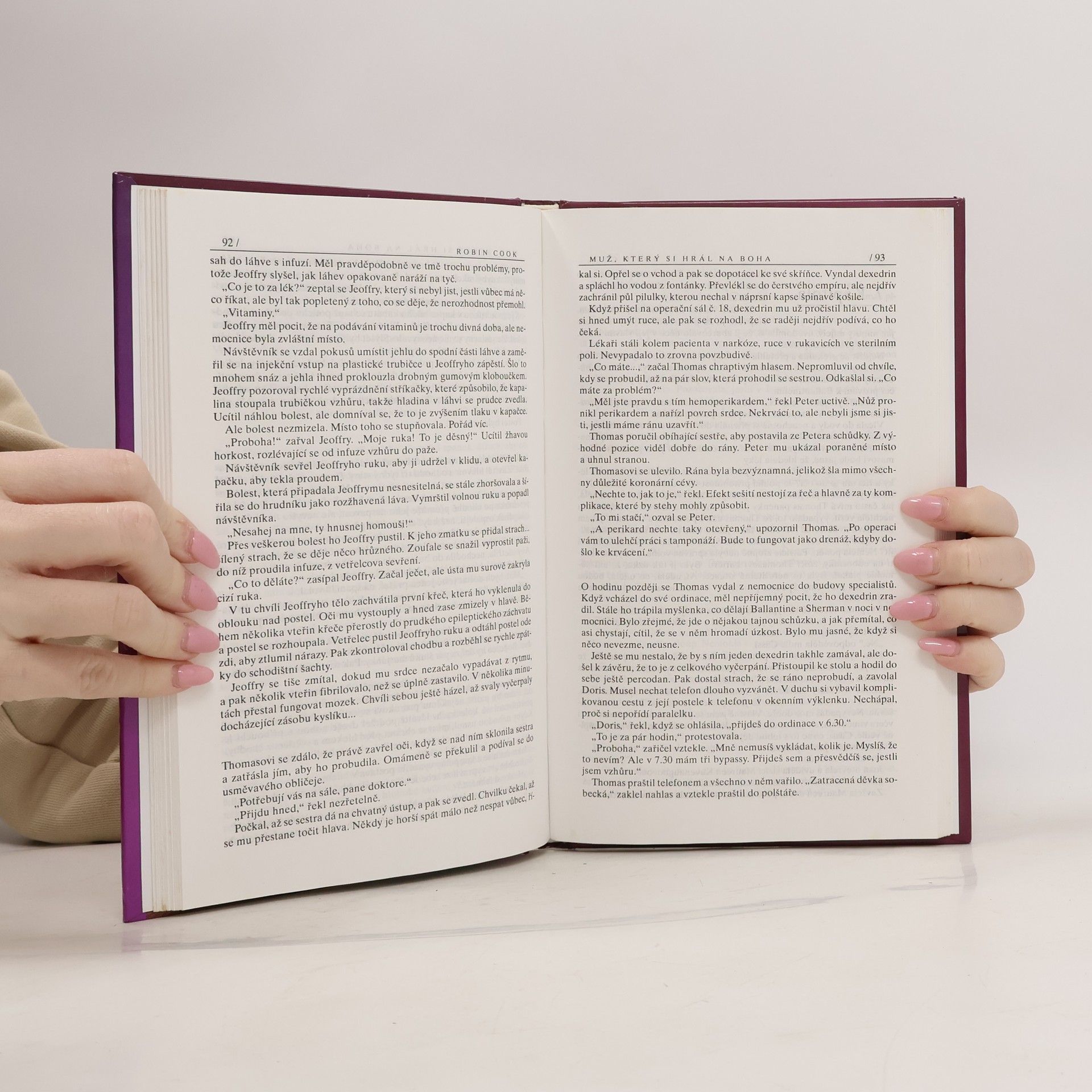 Je mnoho způsobů, jak zemřít. V hypermoderní nemocnici se k nim přidává další - nejstrašnější ze všech… Mladá lékařka Cassandra Kingsleyová oddaně miluje svého manžela Thomase, vynikajícího kardiochirurga, který jako první použil novou metodu operace a získal tím pocit, že je všemohoucí, protože rozhoduje o životě a smrti mnoha lidí. Oba pracují v bostonské nemocnici Memorial. Cassandru trápí dvě věci: v soukromí ji znepokojuje, že se její manžel hodně změnil, v nemocnici se zase nemůže vyrovnat se sérií záhadných úmrtí, jež už nelze pokládat za náhodu. Cassandra se pustí do hledání pravdy - a teprve tehdy začne poznávat pravý význam slova hrůza.