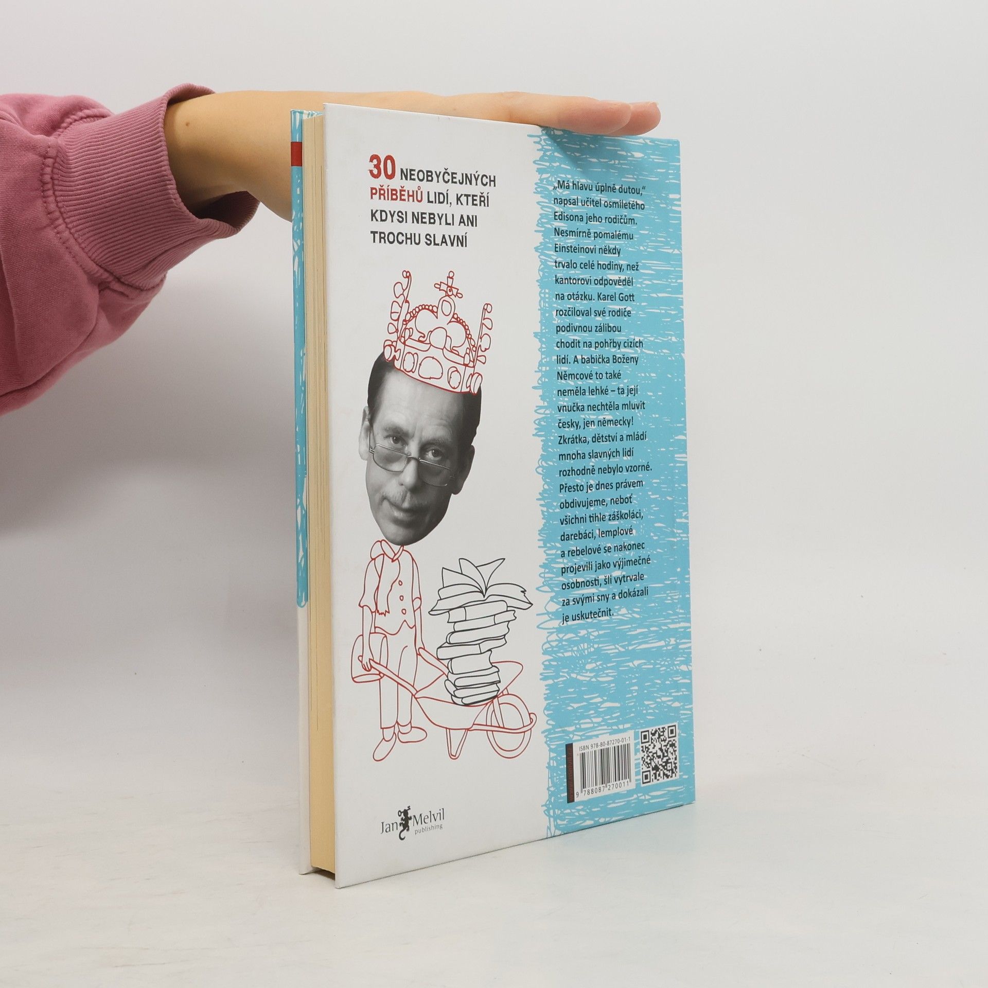 Neobyčejná kniha pro mládež, ale i dospělé čtenáře, přibližuje dětství a mládí 30 špatných žáků, darebáků, lemplů a rebelů, kteří to nakonec dotáhli daleko. „Má hlavu úplně dutou,“ napsal například Edisonův učitel jeho matce. Pomalému Einsteinovi někdy trvalo celé hodiny, než kantorovi odpověděl na otázku. Karel Gott rozčiloval své rodiče podivnou zálibou chodit na pohřby cizích lidí. A Božena Němcová – ta zase nechtěla mluvit česky! Kniha obsahuje více než 150 fotografií a ilustrací. Otakar Batlička Alexander Graham Bell Konstantin Biebl Napoleon Bonaparte Paul Cézanne Mikuláš Dačický z Heslova Charles Darwin Walt Disney Antonín Dvořák Thomas Alva Edison Albert Einstein Emil Filla Alberto Vojtěch Frič Josef Václav Frič Karel Gott Václav Havel Charlie Chaplin Jaromír Jágr John Lennon Gregor Johann Mendel Gustav Meyrink Božena Němcová Karel Poláček Bedřich Smetana Josef Sudek Max Švabinský Toyen Leonardo da Vinci Petr Vok z Rožmberka Jan Eskymo Welzl