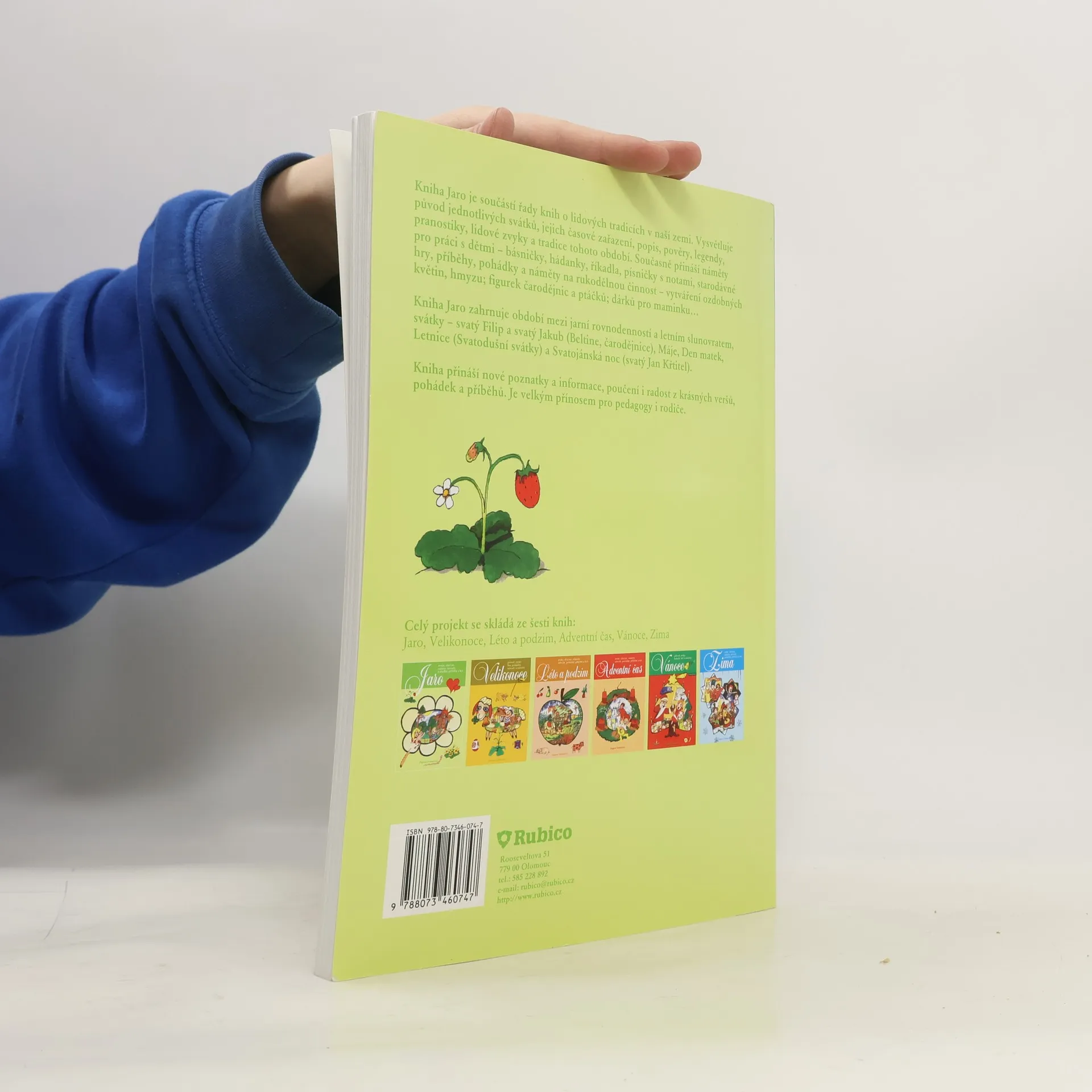 Kniha Jaro je součástí řady knih o lidových tradicích v naší zemi. Vysvětluje původ jednotlivých svátků, jejich časové zařazení, popis, pověry, legendy, pranostiky, lidové zvyky a tradice tohoto období. Současně přináší náměty pro práci s dětmi – básničky, hádanky, říkadla, písničky s notami, starodávné hry, příběhy, pohádky a náměty na rukodělnou činnost – vytváření ozdobných květin, hmyzu; figurek čarodějnic a ptáčků; dárků pro maminku… Kniha Jaro zahrnuje období mezi jarní rovnodenností a letním slunovratem, svátky – svatý Filip a svatý Jakub (Beltine, čarodějnice), Máje, Den matek, Letnice (Svatodušní svátky) a Svatojánská noc (svatý Jan Křtitel). Kniha přináší nové poznatky a informace, poučení i radost z krásných veršů, pohádek a příběhů. Je velkým přínosem pro pedagogy i rodiče.