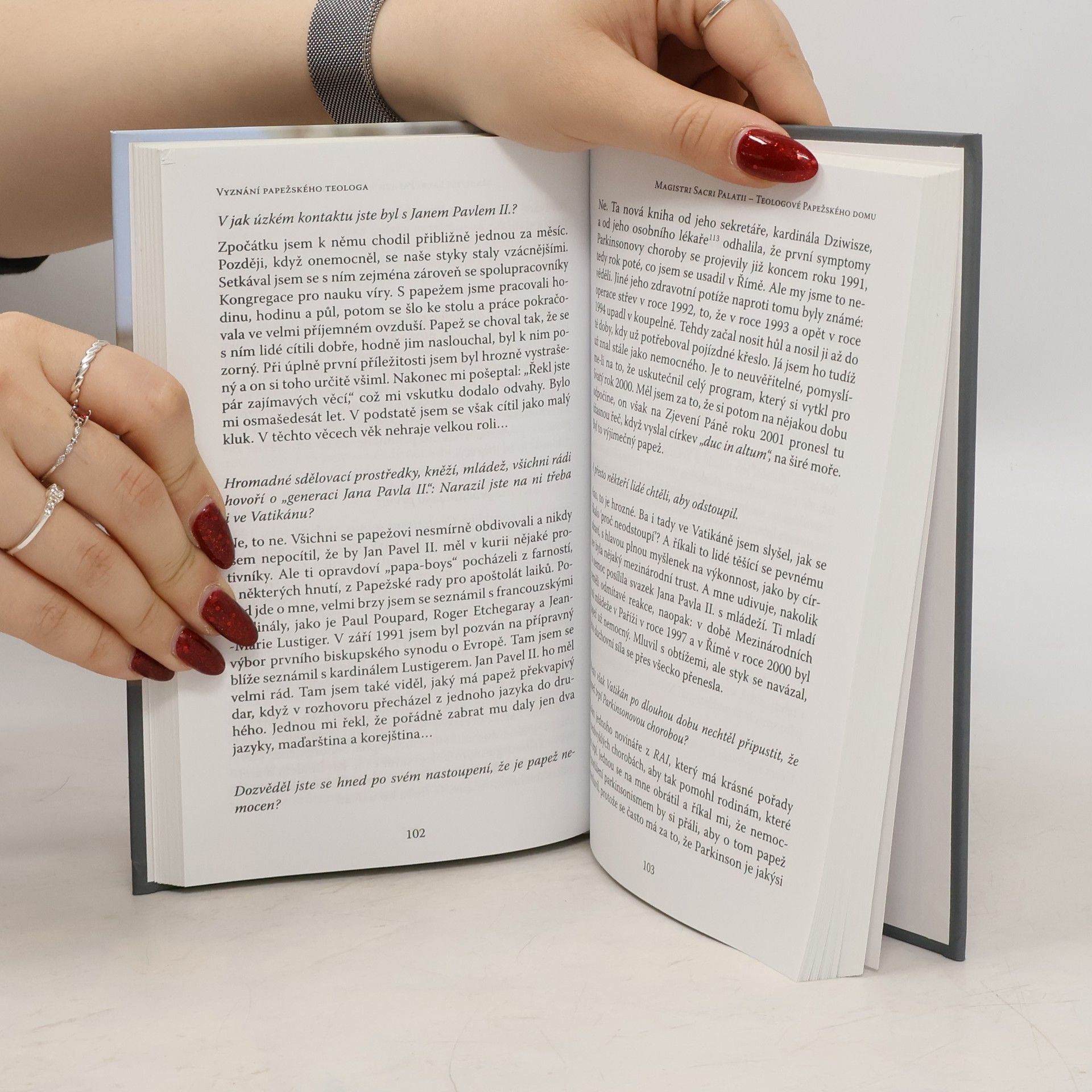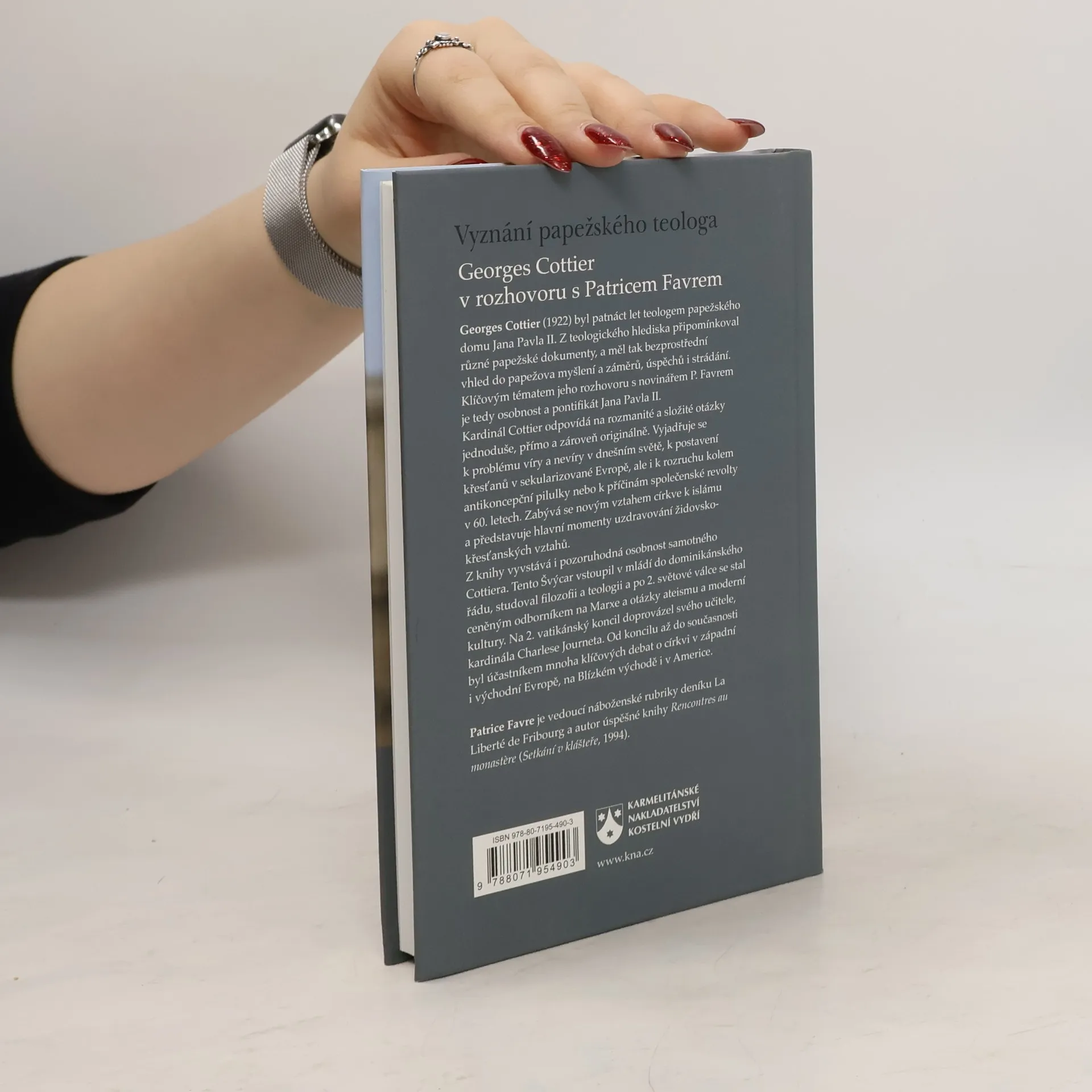 Georges Cottier v rozhovoru s Patricem Favrem. Georges Cottier (1922) byl patnáct let teologem papežského domu Jana Pavla II. Z teologického hlediska připomínkoval různé papežské dokumenty, a měl tak bezprostřední vhled do papežova myšlení a záměrů, úspěchů i strádání. Klíčovým tématem jeho rozhovoru s novinářem P. Favrem je tedy osobnost a pontifikát Jana Pavla II. Kardinál Cottier odpovídá na rozmanité a složité otázky jednoduše, přímo a zároveň originálně. Vyjadřuje se k problému víry a nevíry v dnešním světě, k postavení křesťanů v sekularizované Evropě, ale i k rozruchu kolem antikoncepční pilulky nebo k příčinám společenské revolty v 60. letech. Zabývá se novým vztahem církve k islámu a představuje hlavní momenty uzdravování židovsko-křesťanských vztahů. Z knihy vyvstává i pozoruhodná osobnost samotného Cottiera. Tento Švýcar vstoupil v mládí do dominikánského řádu, studoval filozofii a teologii a po II. světové válce se stal ceněným odborníkem na Marxe a otázky ateismu a moderní kultury. Na Druhý vatikánský koncil doprovázel svého učitele, kardinála Charlese Journeta. Od koncilu až do současnosti byl účastníkem mnoha klíčových debat o církvi v západní i východní Evropě, na Blízkém východě i v Americe.