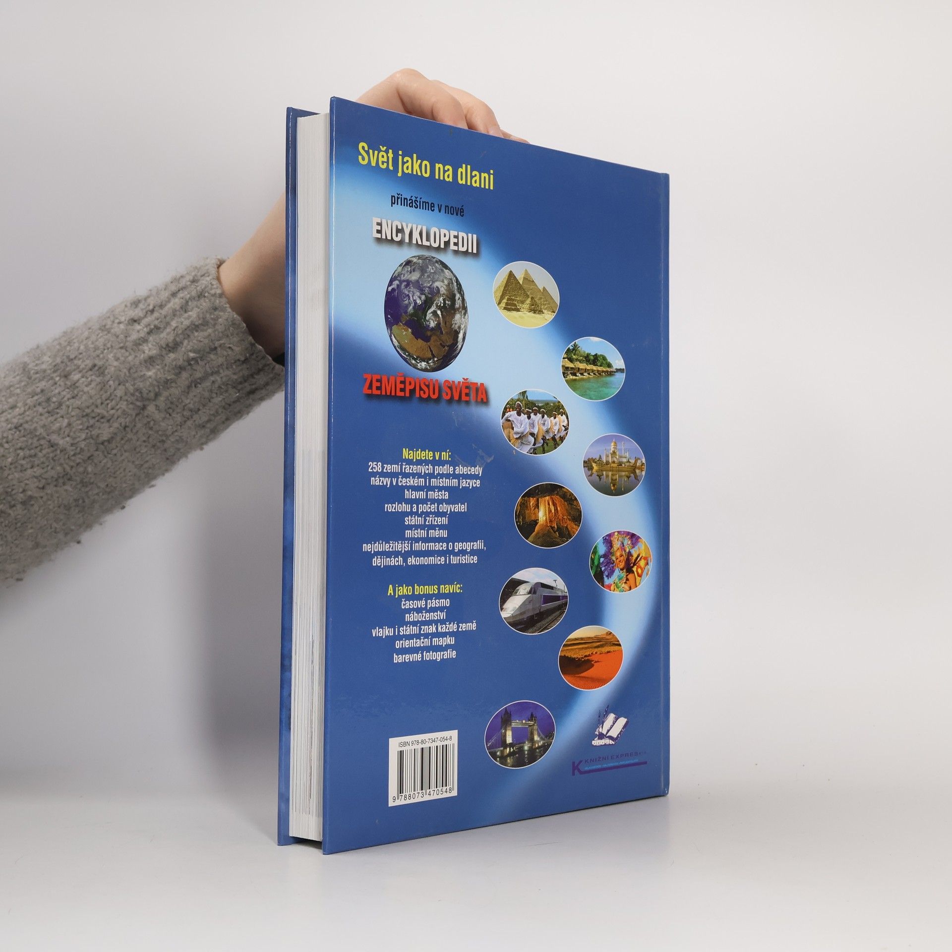 Svět jako na dlani přinášíme v nové Encyklopedii zeměpisu světa. Najdete v ní: 258 zemí řazených podle abecedy, názvy v českém i místním jazyce, hlavní města, rozlohu a počet obyvatel, státní zřízení, místní měnu, nejdůležitější informace o geografii, dějinách, ekonomice i turistice. A jako bonus navíc: časové pásmo, náboženství, vlajku i státní znak každé země, orientační mapku, barevné fotografie.