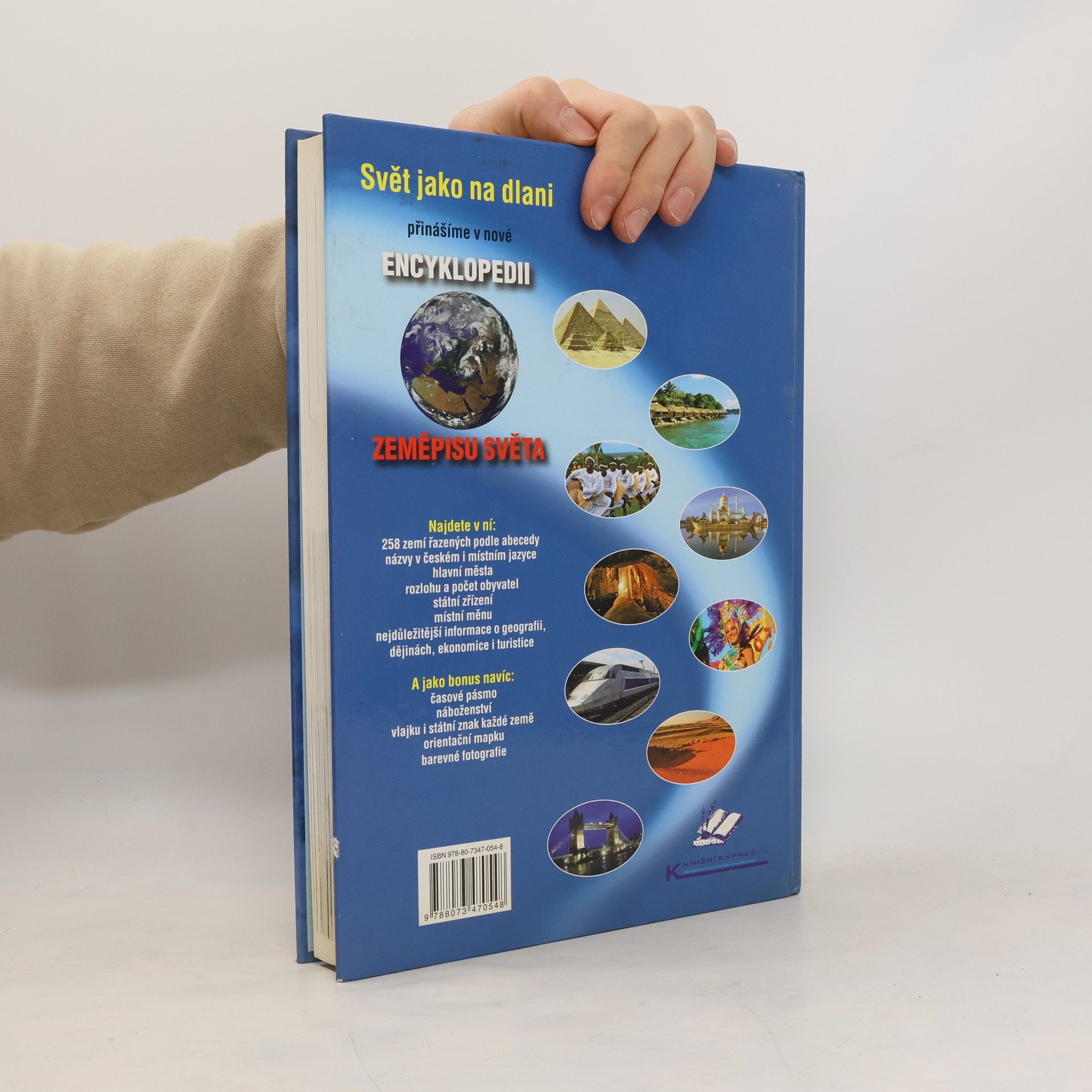 Svět jako na dlani přinášíme v nové Encyklopedii zeměpisu světa. Najdete v ní: 258 zemí řazených podle abecedy, názvy v českém i místním jazyce, hlavní města, rozlohu a počet obyvatel, státní zřízení, místní měnu, nejdůležitější informace o geografii, dějinách, ekonomice i turistice. A jako bonus navíc: časové pásmo, náboženství, vlajku i státní znak každé země, orientační mapku, barevné fotografie.