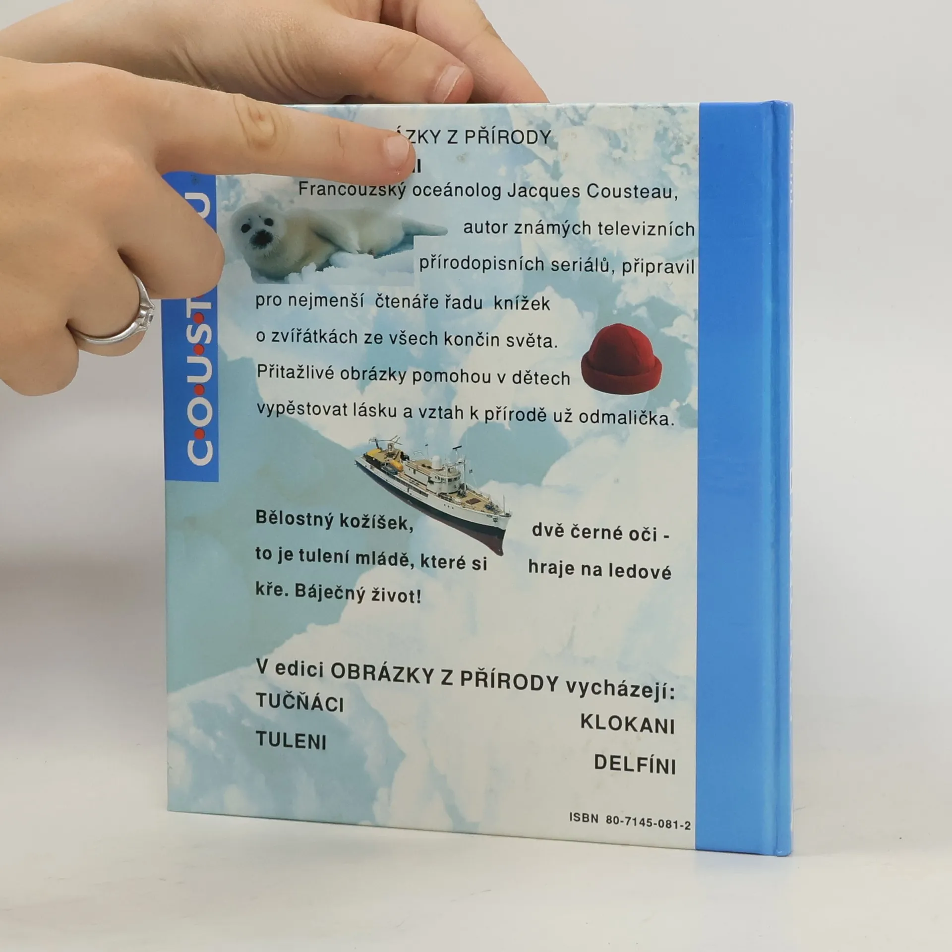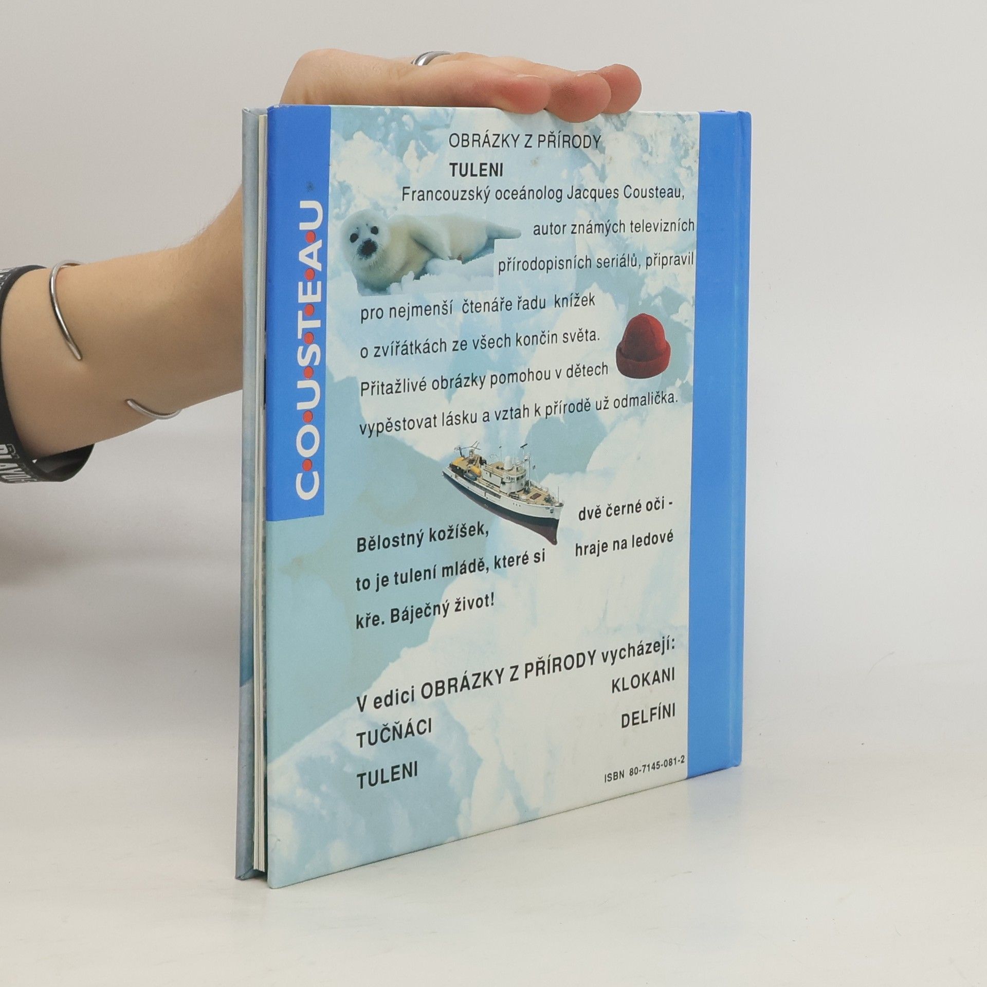 Francouzský oceánolog Jacques Cousteau, autor známých televizních přírodopisných seriálů, připravil pro nejmenší čtenáře řadu knížek o zvířátkách ze všech končin světa. Přitažlivé obrázky pomohou v dětech vypěstovat lásku a vztah k přírodě už odmalička. Bělostný kožíšek, dvě černé oči – to je tulení mládě, které si hraje na ledové kře. Báječný život!