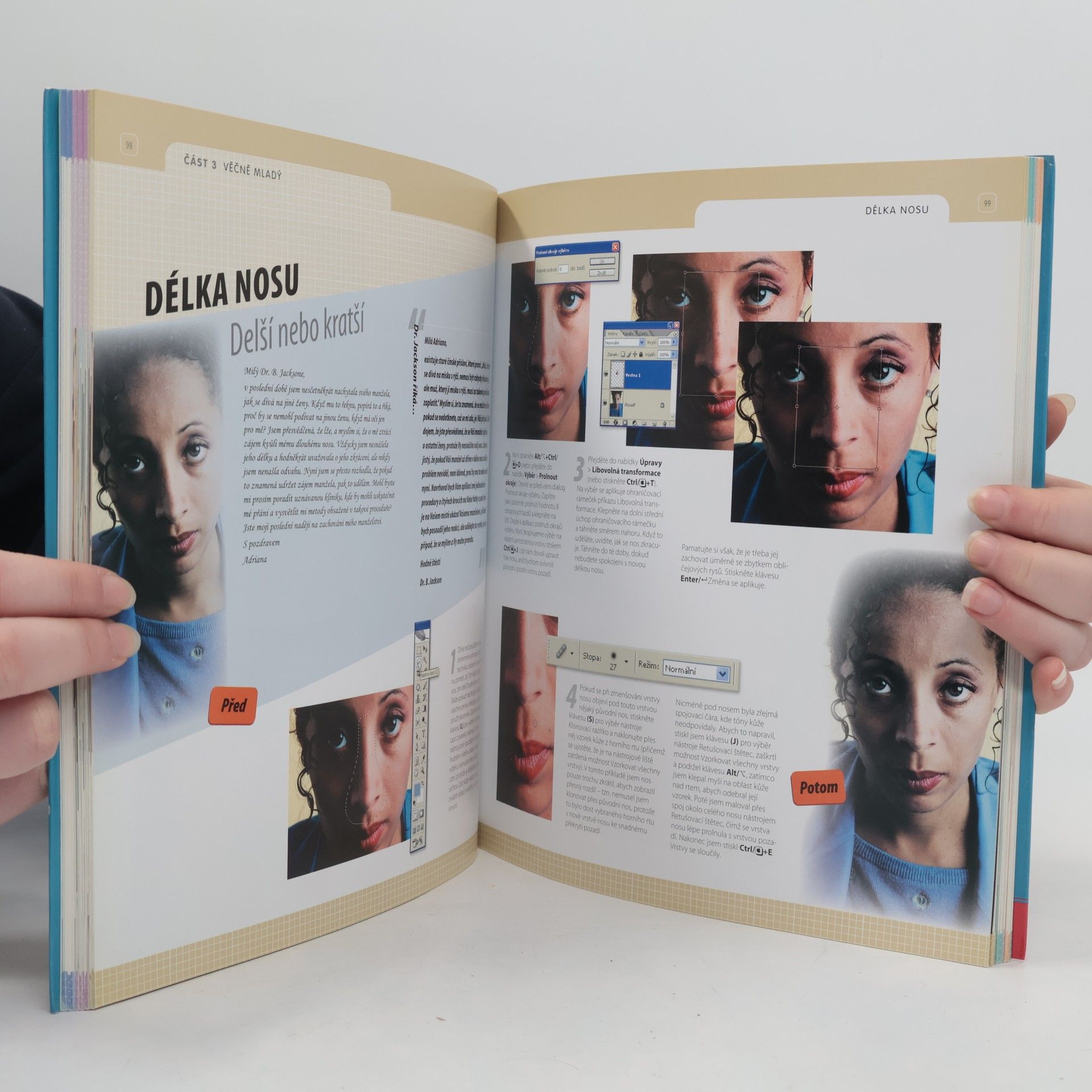 Nikdo není dokonalý! S fyzickými nedostatky ve skutečném světě málokdy co zmůžeme, ale ve světě digitální fotografie není nic nemožné. Tato ojedinělá publikace vás názorně a srozumitelně naučí provádět možné i zdánlivě nemožné úpravy zevnějšku modelu fotografie ve Photoshopu. Dokážete změnit podobu vlasů, očí, nosu, zubů, vyhladit vrásky, zmenšit bříško a vůbec zkrášlit celého člověka k naprosté dokonalosti. Nikdo není zcela dokonalý! S fyzickými nedostatky ve skutečném světě málokdy co zmůžeme.