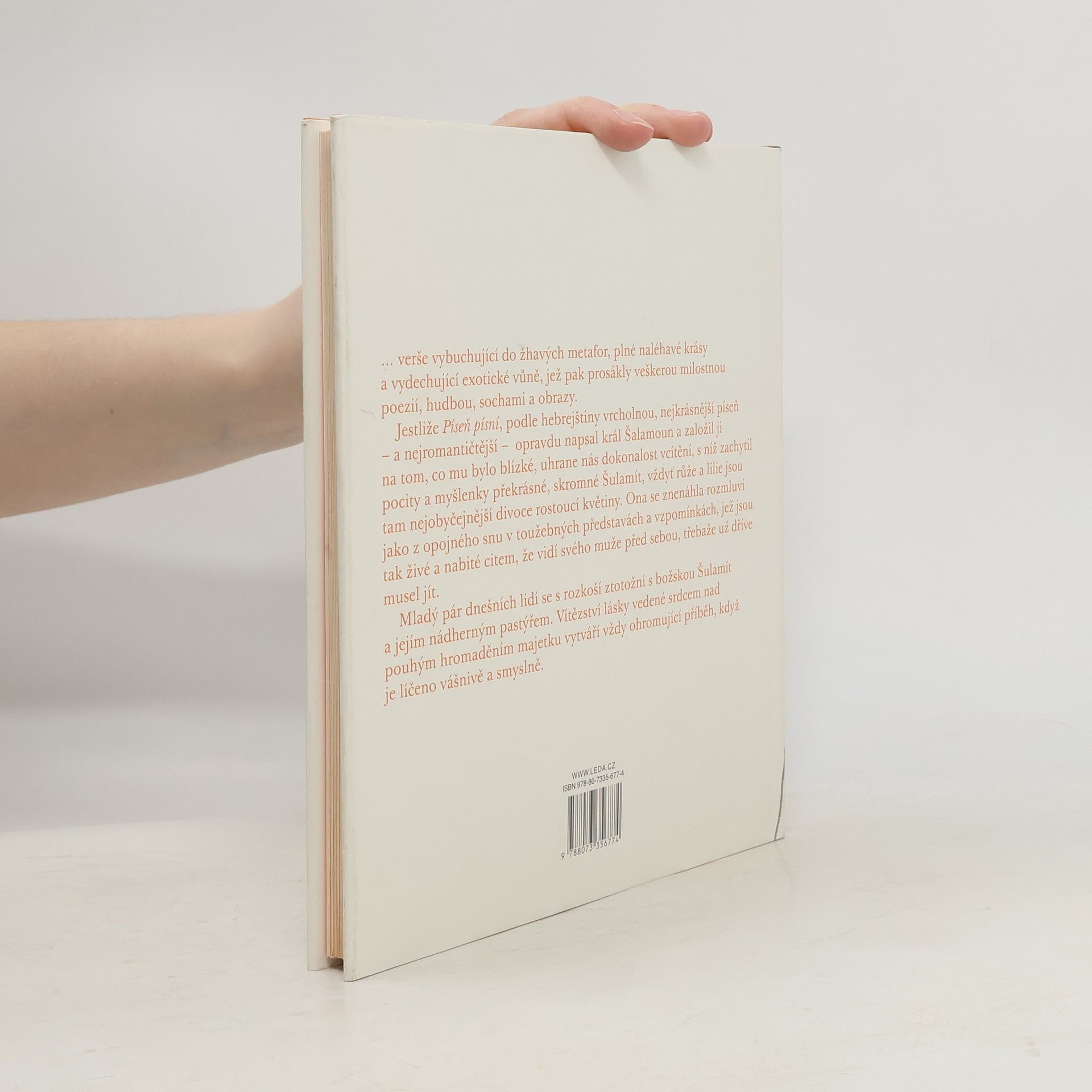 Materiál, z něhož je Píseň složena, prosévali vypravěči během tisíců let velmi důkladně a tolikrát, až v sítu zůstaly ty nejzářivější rubíny, safíry, diamanty… Jsem šafrán šáronský, jsem lilie kvetoucí v údolí. Jak krásná jsi, má milá, jak krásná jsi, tvé oči třpytí se jak holoubci. Jak karmínová šňůrka jsou tvé rty a ústa tvá jsou spanilá, tvá skráň je prasklý granátový plod ve stínu závoje. Jsi krásná, milá má, jak Tirsa a jako Jerúšalém půvabná, hrozná jak Hvězda války. … vybuchující do žhavých metafor, plné naléhavé krásy a vydechující exotické vůně, jež pak prosákly vší milostnou poezií, hudbou, sochami a obrazy. Jestliže Píseň písní, podle hebrejštiny vrcholnou, nejkrásnější píseň – a nejromantičtější – opravdu napsal král Šalamoun a založil ji na tom, co mu bylo blízké, uhrane nás dokonalost vcítění, s níž zachytil pocity a myšlenky překrásné, skromné Šulamít, vždyť růže a lilie jsou tam nejobyčejnější divoce rostoucí květiny. Ona se znenáhla rozmluví jako z opojného snu v toužebných představách a vzpomínkách, jež jsou tak živé a nabité citem, že vidí svého muže před sebou, třebaže už dříve musel jít. Mladý pár se s rozkoší ztotožní s božskou Šulamít a jejím nádherným pastýřem. Vítězství lásky vedené srdcem nad nenasytným hromaděním hmoty vytváří vždy ohromující příběh, když je líčeno vášnivě a smyslně.