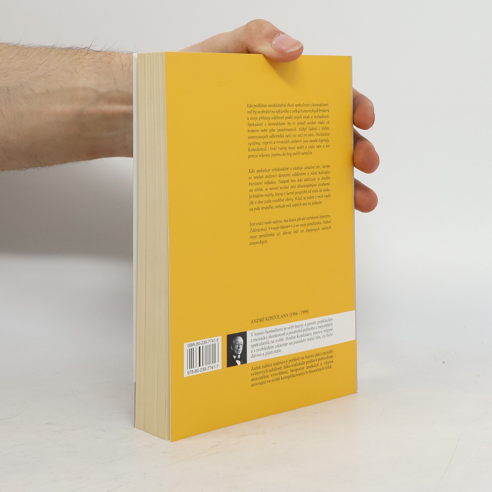 Burzovní profesionál André Kostolány tvrdí, že umění přijít k bohatství, se lze naučit. V tomto bestselleru nabízí odpovědi na otázky investování do akcií a nemovitostí, ale i obrazů, starožitností a šperků a jednou provždy bortí naivní představy o švýcarských číselných účtech a daňových rájích v Karibiku. Obsah knihy je zcela nadčasový. A. Kostolany čtenářům na mnoha příkladech ukazuje, jak odhalit každou bublinu a přehřátý trh.
