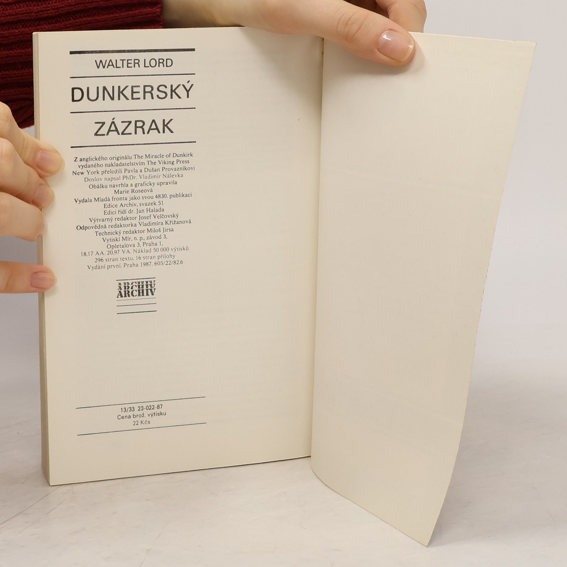 V květnu 1940 byla spojenecká vojska zatlačena do francouzského přístavu Dunkerque. Pro 400 000 vojáků byla jedinou cestou k záchraně evakuace do Anglie. Německé tanky stály 10 mil od nich a záchrana většiny z nich se zdála utopií. Kniha pojednává o největší záchranné operaci všech dob, díky které se podařilo zachránit 338 000 vojáků, což byl opravdu zázrak… Z anglického originálu The Miracle of Dunkirk vydaného nakladatelstvím The Viking Press, New York přeložili Pavla a Dušan Provazníkovi. Doslov napsal PhDr.Vladimír Nálevka. 296 stran textu, 16 stran přílohy. Vydání první.