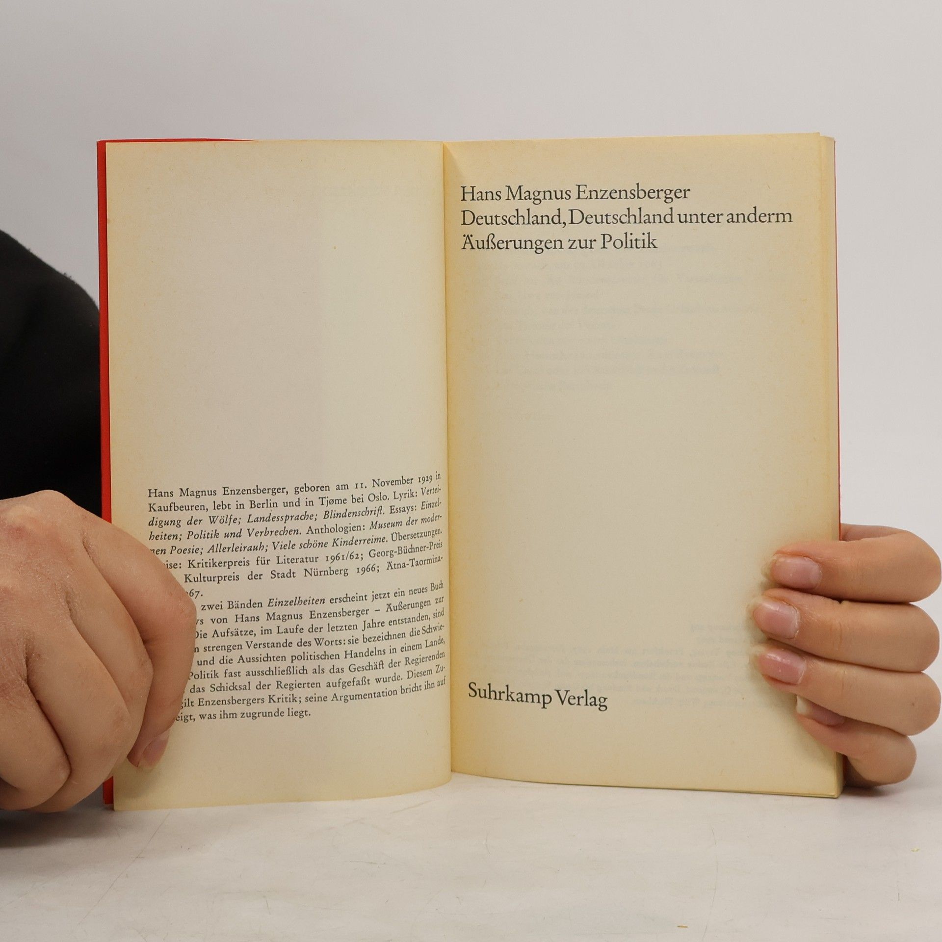 Deutschland, Deutschland unter anderm Äußerungen zur Politik, Hans Magnus Enzensberger