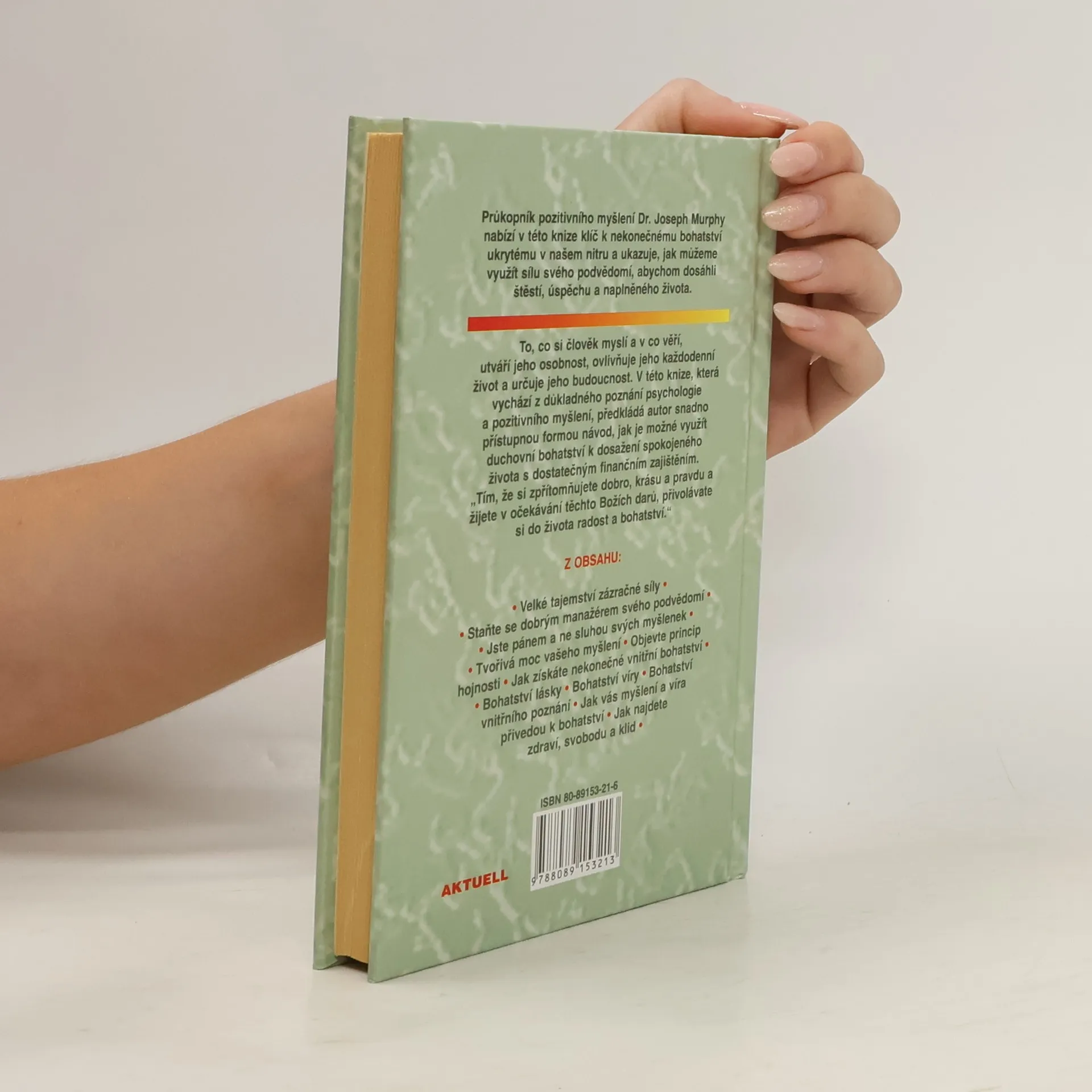 Průkopník pozitivního myšlení Dr. Joseph Murény nabízí v této knize klíč k nekonečnému bohatství ukrytému v našem nitru a ukazuje, jak můžeme využít sílu svého podvědomí, abychom dosáhli štěstí, úspěchu a naplněného života. To, co si člověk myslí a v co věří, utváří jeho osobnost, ovlivňuje jeho každodenní život a určuje jeho budoucnost. V této knize, která vychází z důkladného poznání psychologie a pozitivního myšlení, předkládá autor snadno přístupnou formou návod, jak je možné využít duchovní bohatství k dosažení spokojeného života s dostatečným finančním zajištěním. Z obsahu: . Velké tajemství zázračné síly. Staňte se dobrým manažérem svého podvědomí. Jste pánem a ne sluhou svých myšlenek. Tvořivá moc vašeho myšlení. Objevte princip hojnosti. Jak získáte nekonečné vnitřní bohatství. Bohatství lásky. Bohatství víry. Bohatství vnitřního poznání. Jak vás myšlení a víra přivedou k bohatství. Jak najdete zdraví, svobodu a klid..