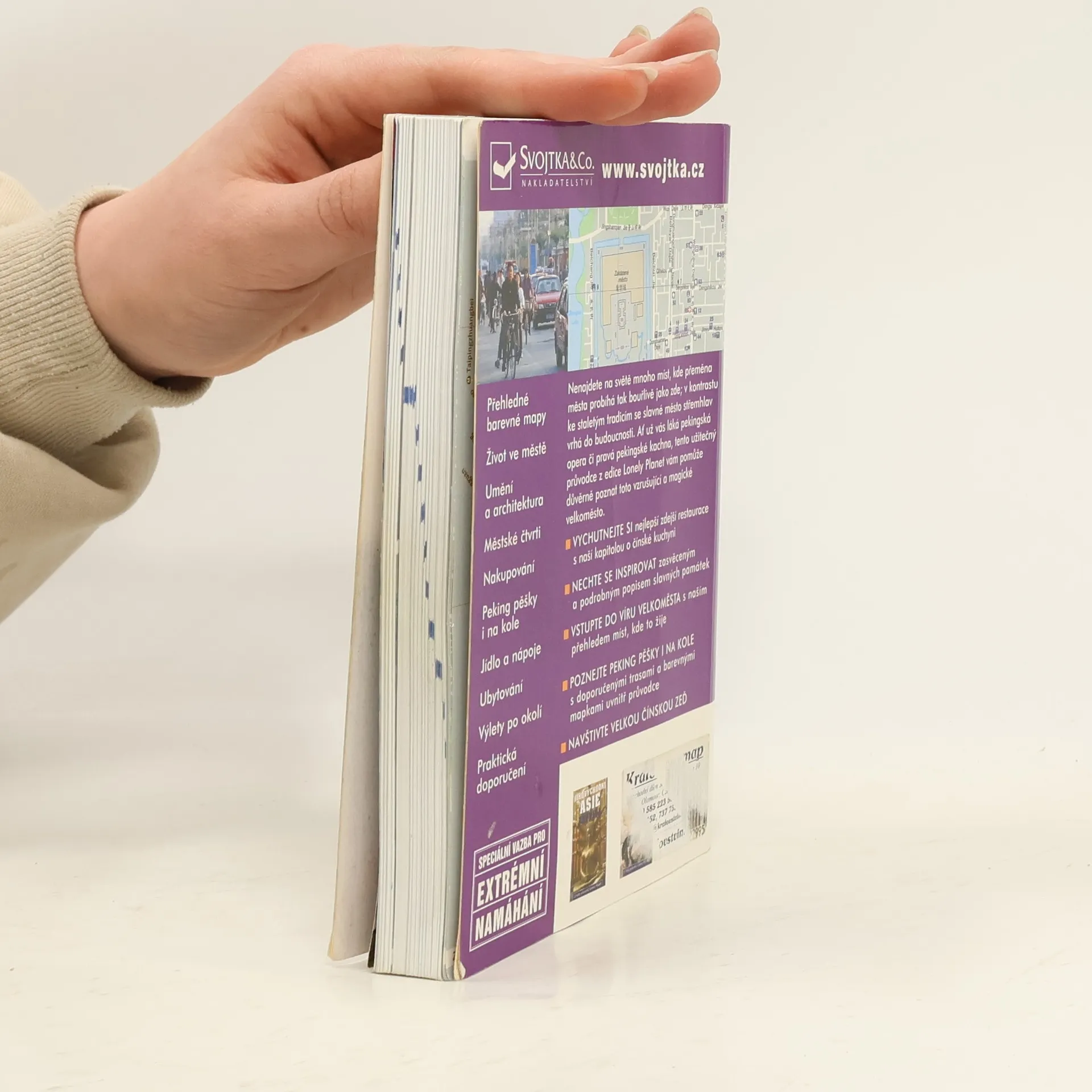 Průvodce z řady Libely Planet se speciální vazbou pro extrémní namáhání nabízí kapitoly: Přehledné barevné mapy. Život ve městě. Umění a architektura. Městské čtvrti. Nakupování. Peking pěšky i na kole. Jídlo a nápoje. Ubytování. Výlety po okolí. Praktická doporučení. Nenajdete na světě mnoho míst, kde přeměna města probíhá tak bouřlivě jako zde; v kontrast ke staletým tradicím se slavné město střemhlav vrhá do budoucnosti. Ať už vás láká pekingská opera či pravá pekingské kachna, tento užitečný průvodce z edice Lonely Planet vám pomůže důvěrně poznat toto vzrušující a magické velkoměsto. . Vychutnejte si nejlepší zdejší restaurace s naší kapitolou o čínské kuchyni . Nechte se inspirovat zasvěceným a podrobným popisem slavných památek . Vstupte do víru velkoměsta s naším přehledem míst, kde to žije . Poznejte Peking pěšky i na kole s doporučenými trasami a barevnými mapkami uvnitř průvodce . Navštivte Velkou čínskou zeď