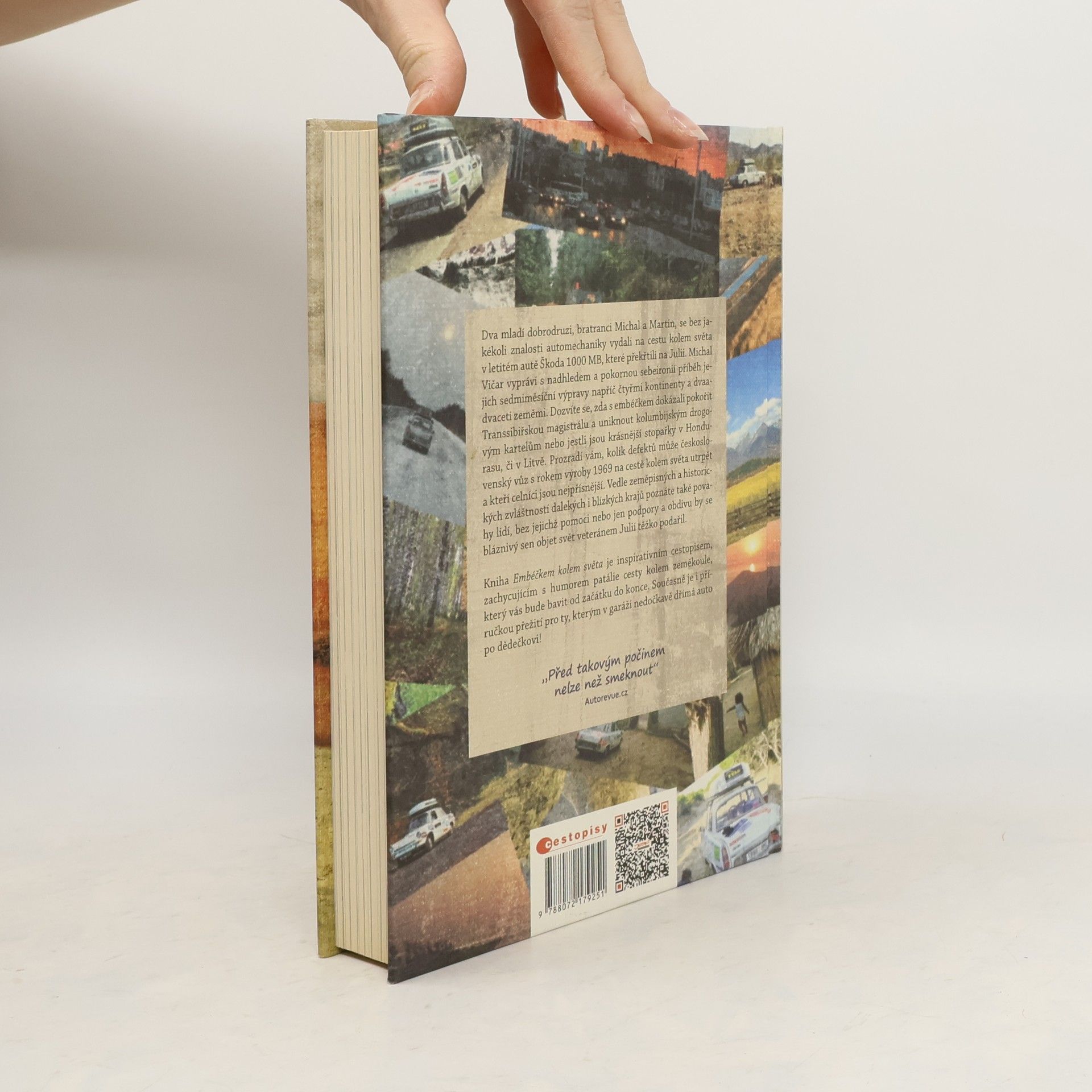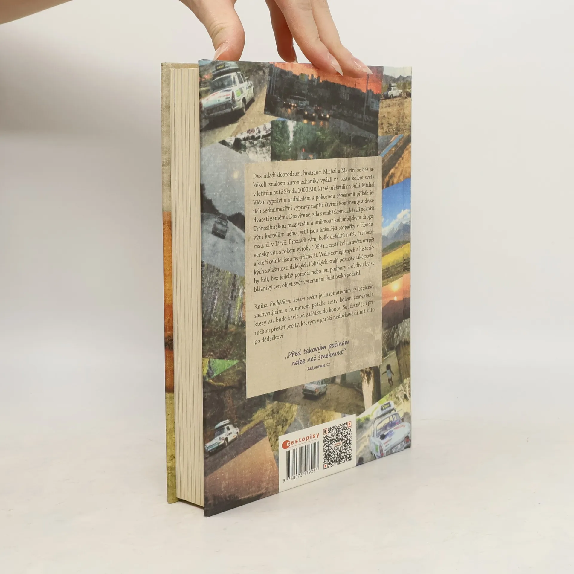 Horký vzduch se tetelí nad rozpálenou americkou dálnicí ztrácející se v nekonečnu ostrého slunce, když tu se z prašné dáli vynoří elegantní bílý vůz Škoda 1000 MB. Pasažéry čtyřicet let starého embéčka Julie jsou bratranci Michal a Martin, dva mladí dobrodruzi, kteří se bez jakékoli znalosti automechaniky vydali na cestu kolem světa za doprovodu této letité Čechoslovačky. Michal Vičar, mladší z cestovatelů, vypráví s nadhledem a pokornou sebeironií příběh jejich sedmiměsíční výpravy napříč třemi kontinenty a dvaadvaceti zeměmi. Dozvíte se, zda s embéčkem dokázali pokořit Transsibiřskou magistrálu a uniknout kolumbijským drogovým kartelům nebo jestli jsou krásnější stopařky v Hondurasu, či v Litvě. Prozradí vám, kolik defektů může československý vůz s rokem výroby 1969 na cestě kolem světa utrpět a kteří celníci jsou nejpřísnější. Vedle zeměpisných a historických zvláštností dalekých i blízkých krajů poznáte také povahy lidí, bez jejichž pomoci nebo jen podpory a obdivu by se bláznivý
