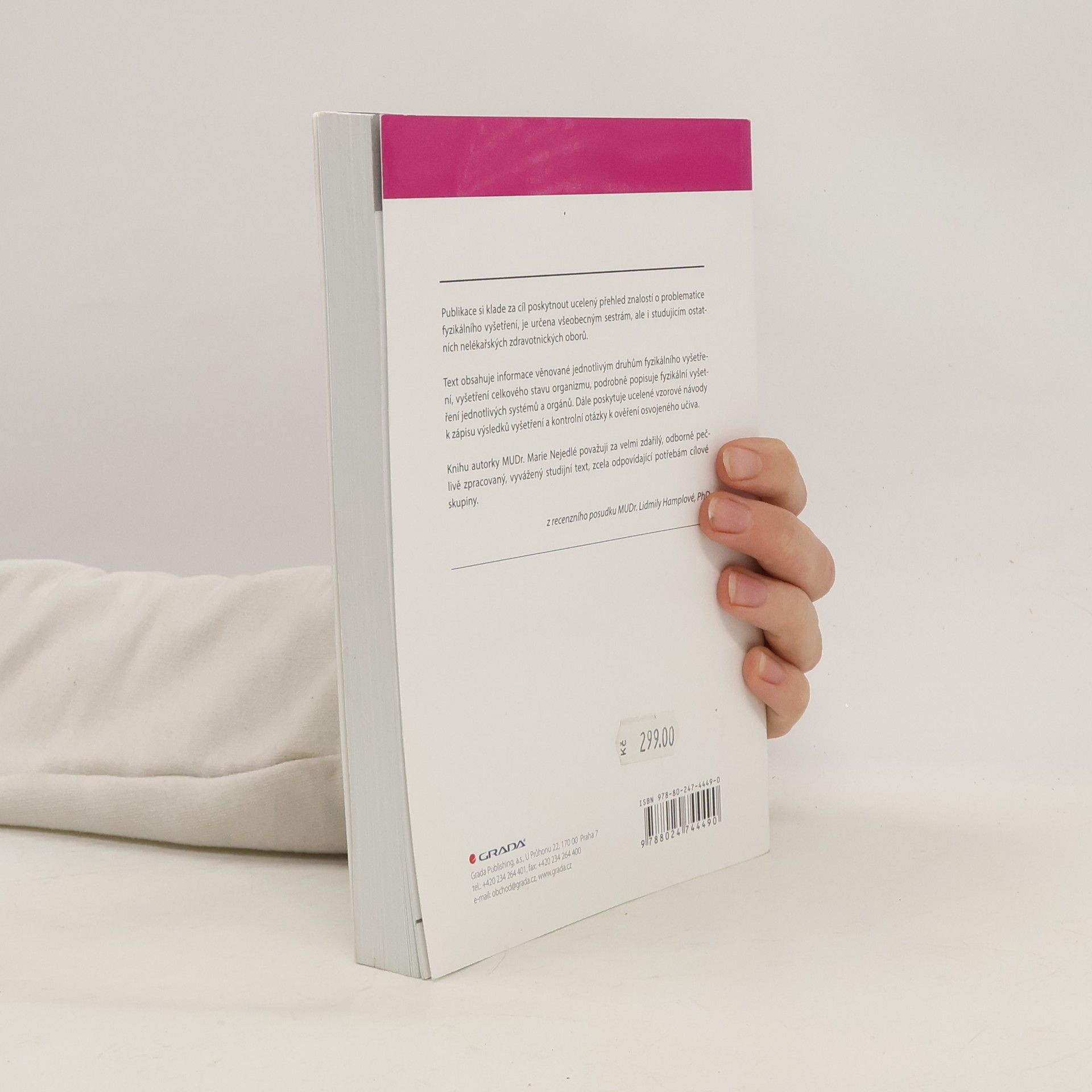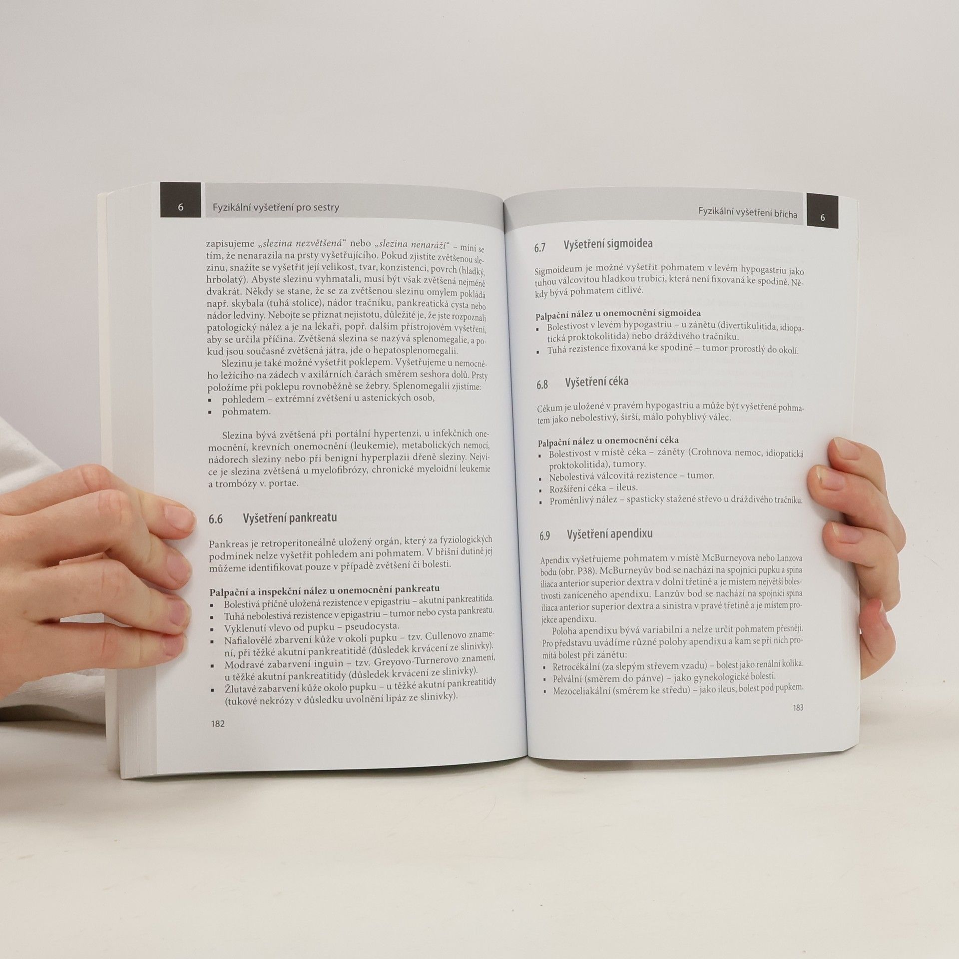 Kniha je koncipována jako základní učebnice pro studenty ošetřovatelství a sestry v praxi. Seznamuje se základními technikami sběru anamnestických dat a fyzikálního vyšetření pacientů umožňujícími získat co nejvíce informací o pacientovi, sledovat a správně dokumentovat změny jeho zdravotního stavu. Tyto dovednosti podporují větší samostatnost v práci sester, na kterou současná koncepce ošetřovatelství klade stále větší důraz. Autorka má bohaté zkušenosti s výukou tohoto předmětu v oboru ošetřovatelství. Text je doplněn černobílými obrázky a barevnou přílohou.