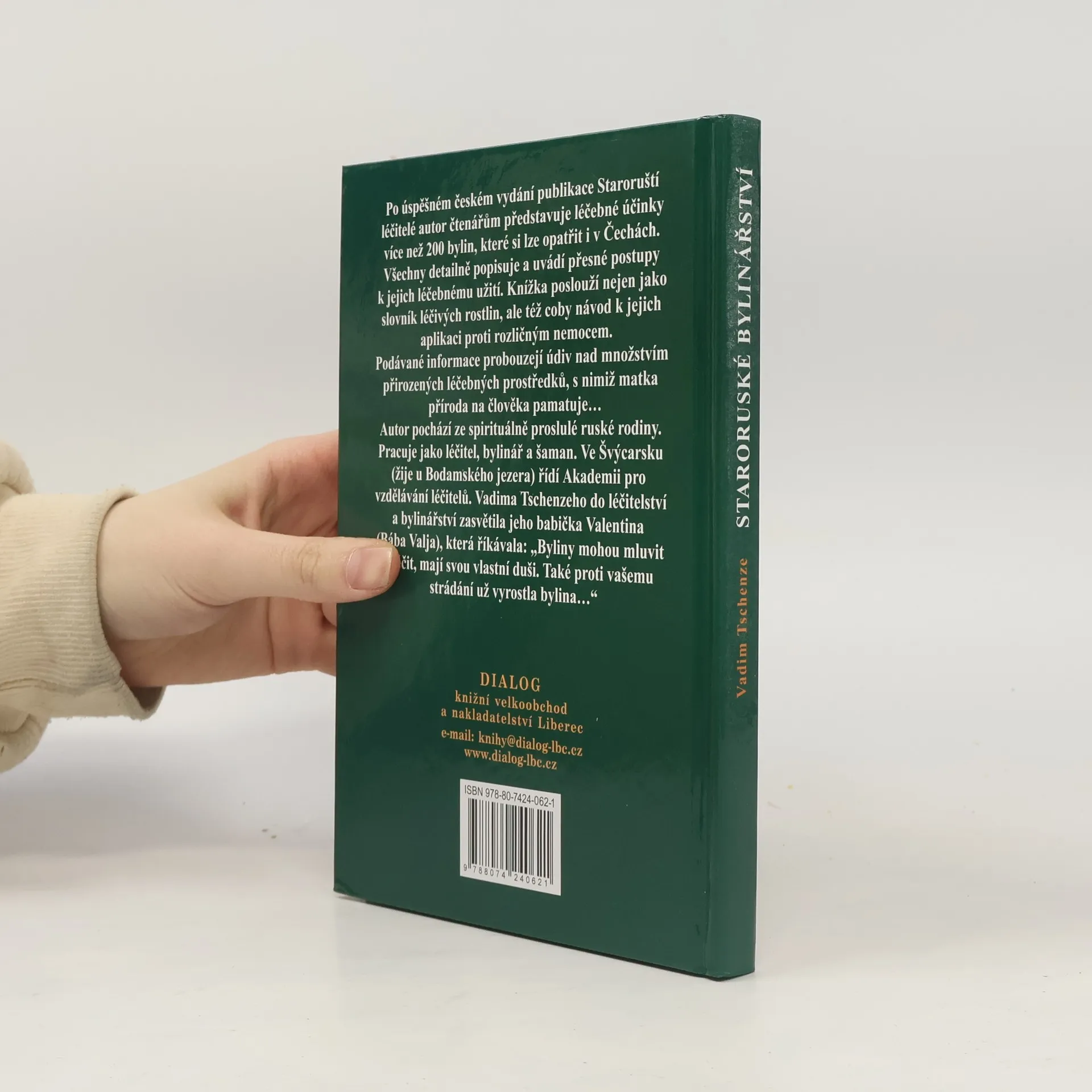 Po úspěšném českém vydání publikace Staroruští léčitelé představuje autor léčebné účinky více jak 200 bylin, které jsou k mání i v Čechách. Všechny byliny detailně popisuje a k jejich léčebnému užití podává přesné návody. Knížka poslouží nejen jako slovník bylin, ale i jako návod k jejich nasazení proti mnoha rozličným nemocem. Podávané informace probouzejí údiv nad množstvím přirozených léčebných prostředků, s nimiž matka příroda na člověka pamatuje… Autor pochází ze spirituálně proslulé ruské rodiny. Pracuje jako léčitel, bylinář a šaman na Bodensee. Ve Švýcarsku řídí Akademii pro vzdělávání léčitelů. Vadima Tschenzeho do léčitelství a bylinářství zasvětila jeho babička Valentina (Bába Valja). Byliny mohou mluvit a léčit, mají svou vlastní duši. Také proti vašemu strádání vyrostla už bylina…říkala Valja.