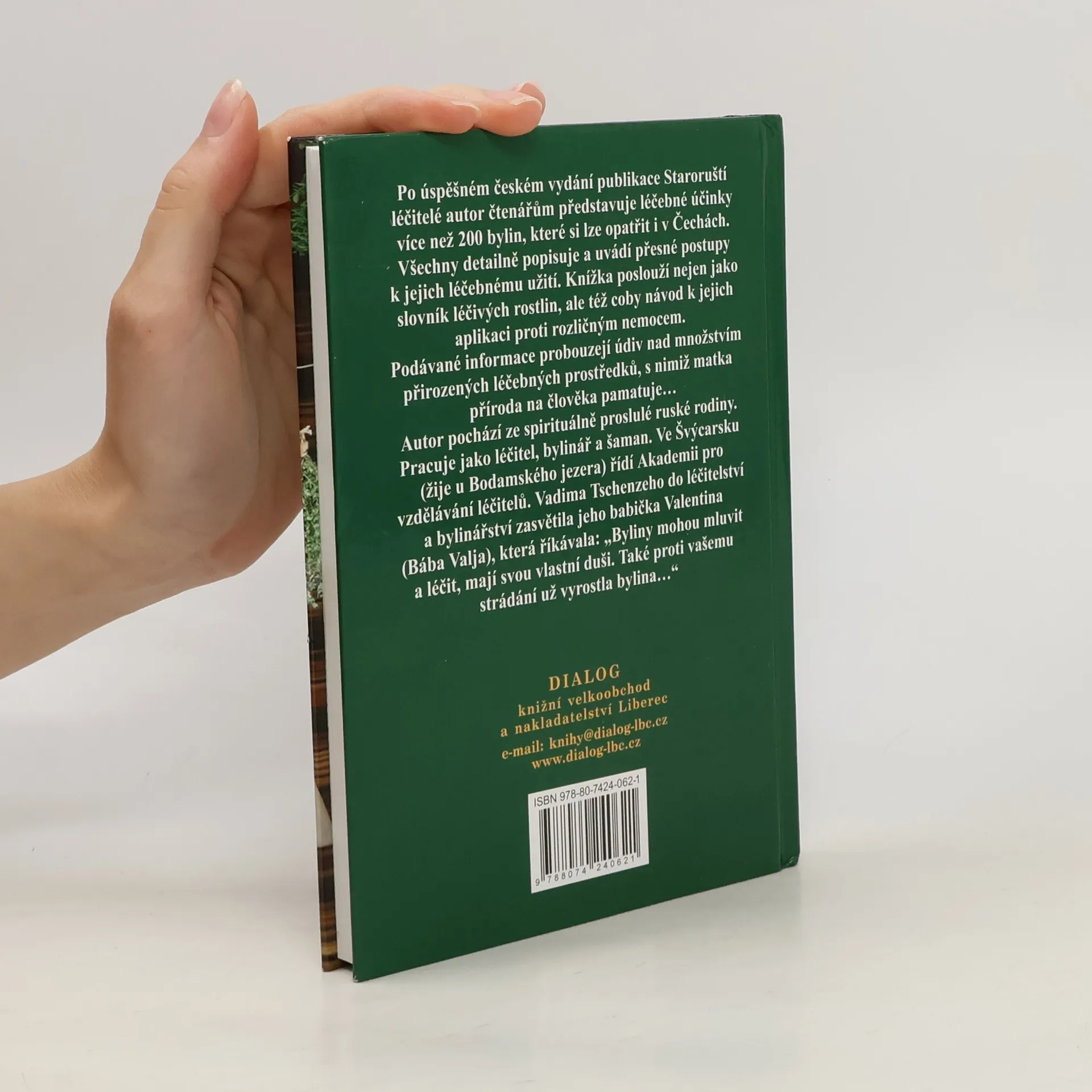 Po úspěšném českém vydání publikace Staroruští léčitelé představuje autor léčebné účinky více jak 200 bylin, které jsou k mání i v Čechách. Všechny byliny detailně popisuje a k jejich léčebnému užití podává přesné návody. Knížka poslouží nejen jako slovník bylin, ale i jako návod k jejich nasazení proti mnoha rozličným nemocem. Podávané informace probouzejí údiv nad množstvím přirozených léčebných prostředků, s nimiž matka příroda na člověka pamatuje… Autor pochází ze spirituálně proslulé ruské rodiny. Pracuje jako léčitel, bylinář a šaman na Bodensee. Ve Švýcarsku řídí Akademii pro vzdělávání léčitelů. Vadima Tschenzeho do léčitelství a bylinářství zasvětila jeho babička Valentina (Bába Valja). Byliny mohou mluvit a léčit, mají svou vlastní duši. Také proti vašemu strádání vyrostla už bylina…říkala Valja.