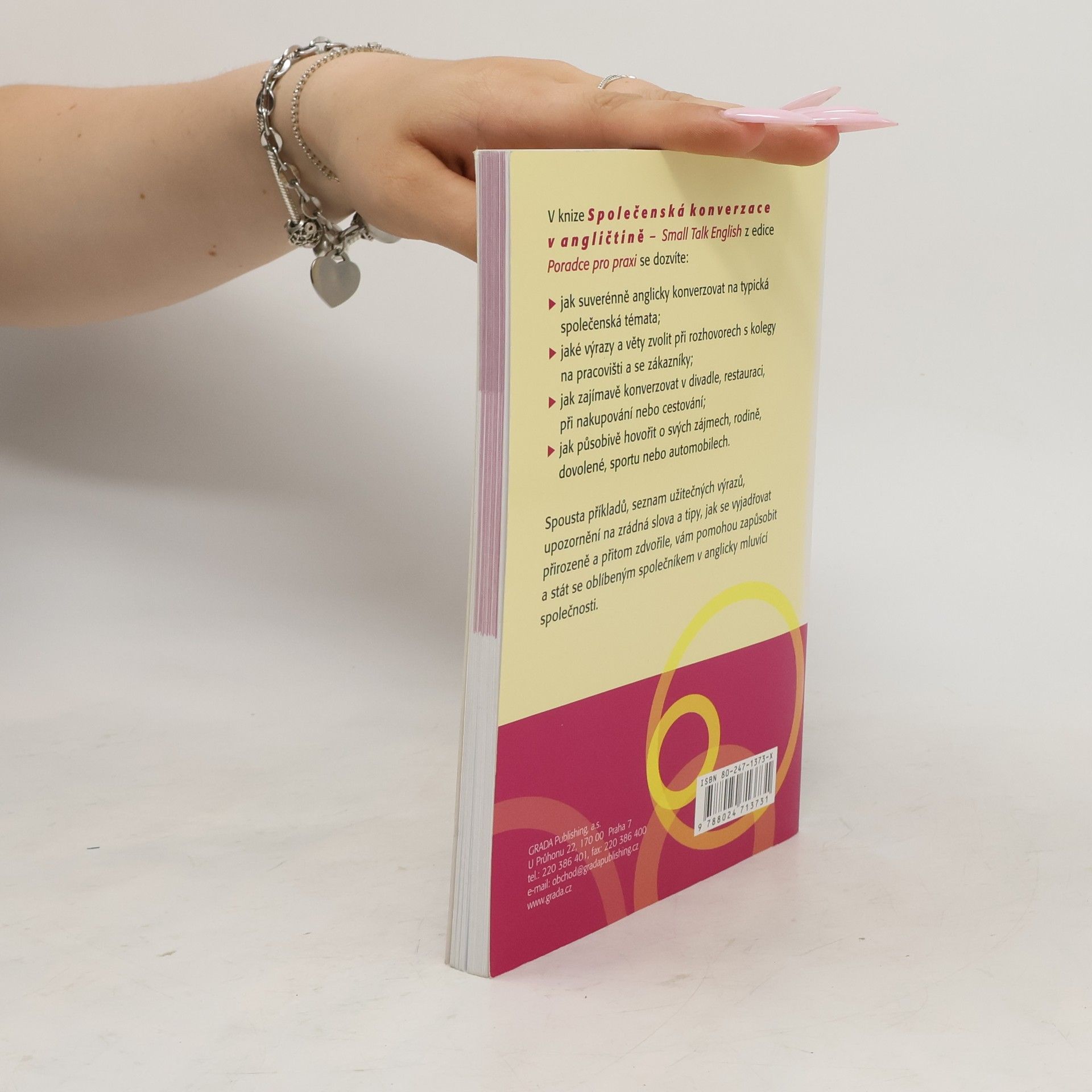 Jak suverénně anglicky konverzovat na typická společenská témata? Jaké výrazy a věty zvolit při rozhovorech s kolegy na pracovišti a se zákazníky? Jak zajímavě konverzovat v divadle, na koncertě nebo na výstavě, v restauraci, při nakupování nebo cestování? Jak působivě hovořit o svých zájmech, rodině, dovolené, sportu nebo automobilech? Spousta vzorových frází, příkladů, slovníček nejdůležitějších výrazů a tipy, jak se vyjadřovat přirozeně a přitom zdvořile, vám pomohou zapůsobit a stát se oblíbeným společníkem v anglicky mluvící společnosti. Kniha je určena především manažerům, obchodníkům, asistentkám a studentům.