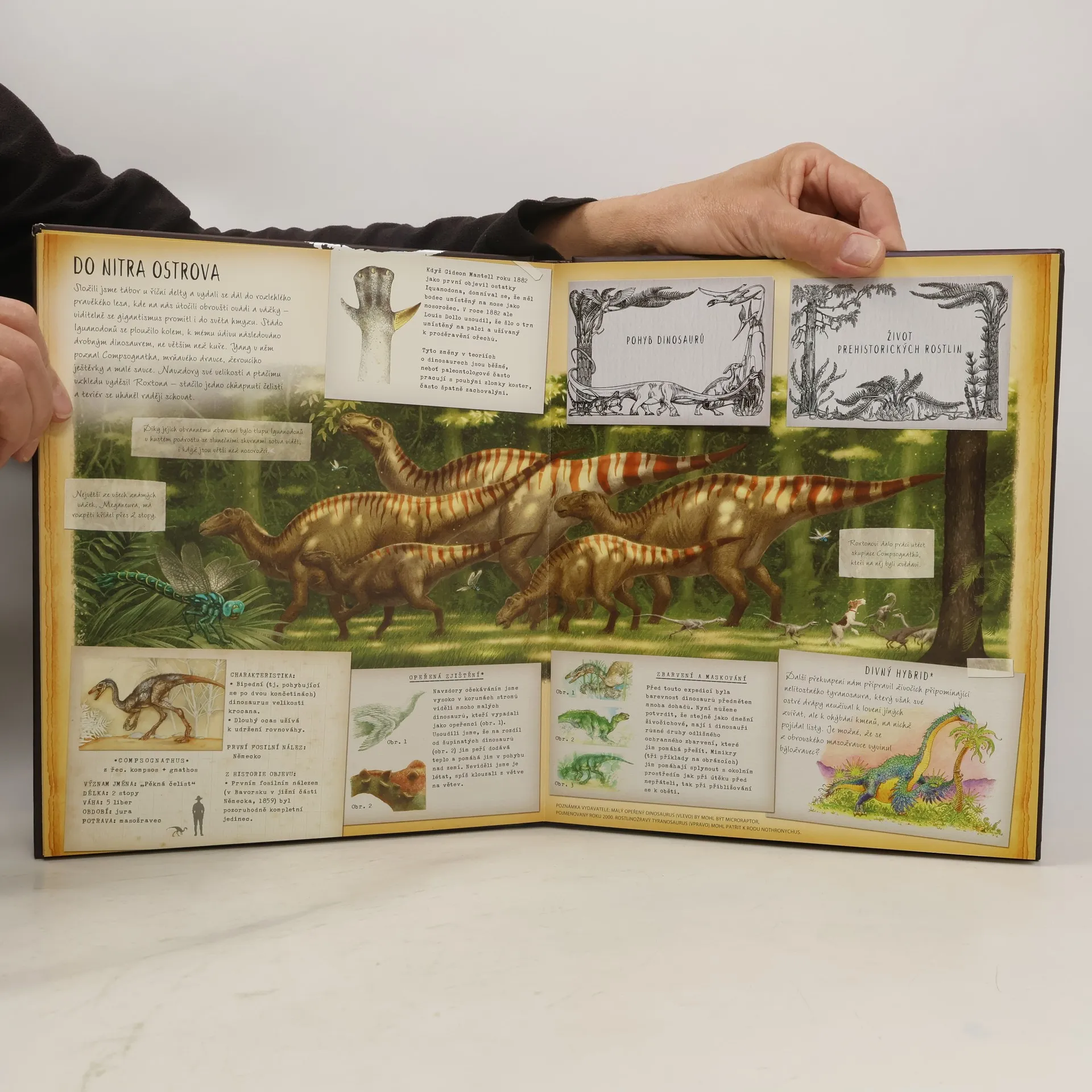 „Slyšeli jsme příběhy o ostrově, na němž pobývají dinosauři. Mohly by být legendy pravdivé? Jedeme na ostrov, abychom to zjistili.“ Tato kniha je faksimile zápisníku výpravy, která se vydala na prastarý ostrov. Ostrov pokrytý neobvyklou vegetací, kde je slyšet ohlušující podivné skřeky a kde žijí podivuhodná pravěká zvířata. Kniha je bohatou sbírkou nejen názorných ilustrací prehistorických zvířat, vyobrazením jejich bojů a poznámek o jejich způsobu života, ale najdete v ní i kousek svléknuté kůže Allosaura nebo jemně mleté dinosauří rohy, které ostrované užívají jako lék. Kniha je určena klukům a holkám, které zajímá život dinosaurů.