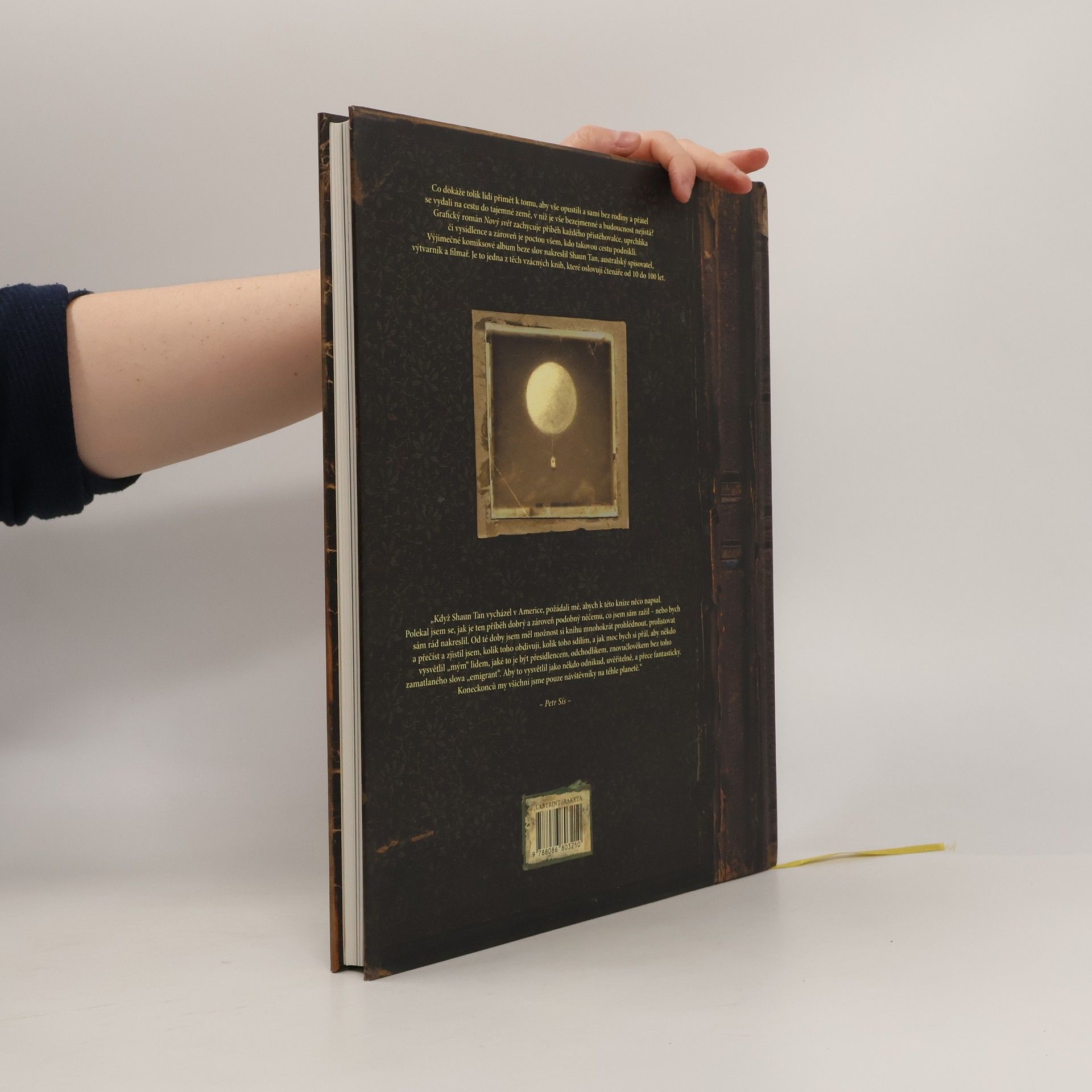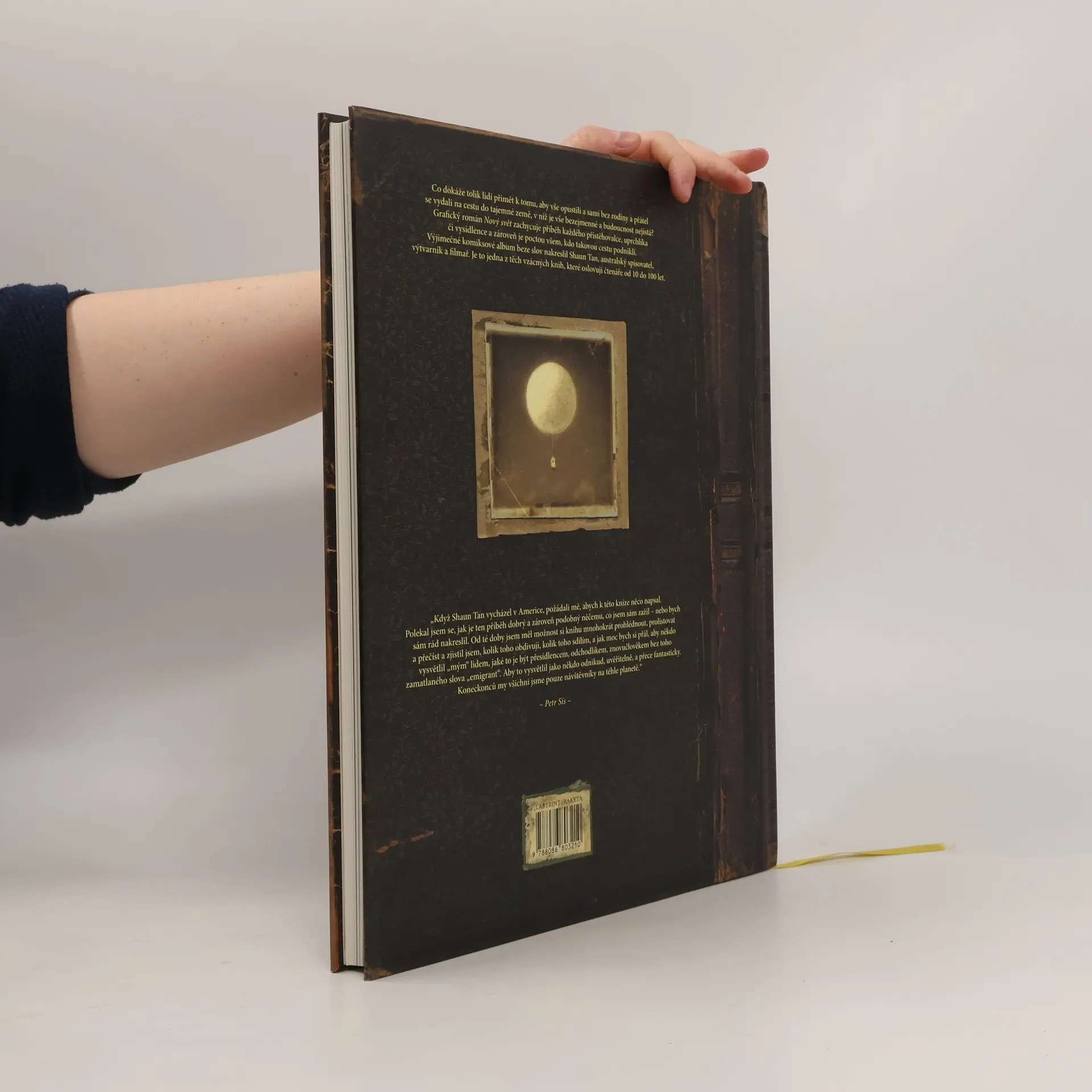 Výjimečné komiksové album beze slov. Co dokáže tolik lidí přimět k tomu, aby vše opustili a sami bez rodiny a přátel se vydali na cestu do tajemné země, v níž je vše bezejmenné a budoucnost nejistá? Grafický román zachycuje příběh každého přistěhovalce, uprchlíka či vysídlence a zároveň je poctou všem, kdo takovou cestu podnikli. Jedna z těch vzácných knih, které oslovují čtenáře od 10 do 100 let.