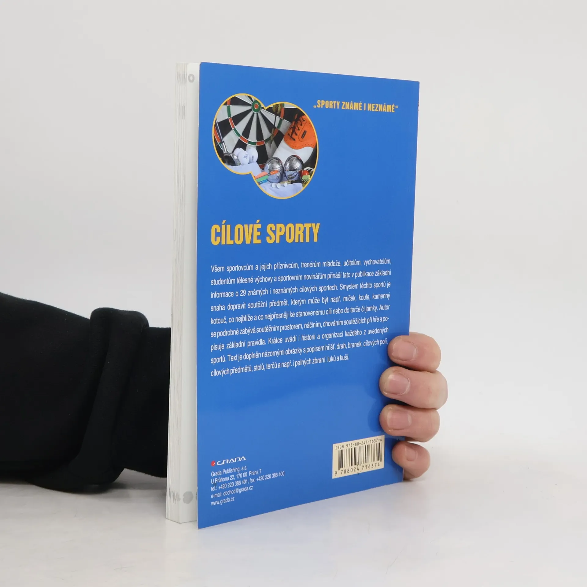 Všem sportovcům a jejich příznivcům, trenérům mládeže, učitelům, vychovatelům, studentům tělesné výchovy a sportovním novinářům přináší tato v publikace základní informace o 29 známých i neznámých cílových sportech. Smyslem těchto sportů je snaha dopravit soutěžní předmět, kterým může být např. míček, koule, kamenný kotouč, co nejblíže a co nejpřesněji ke stanovenému cíli nebo do terče či jamky. Autor se podrobně zabývá soutěžním prostorem, náčiním, chováním soutěžících při hře a popisuje základní pravidla. Krátce uvádí i historii a organizaci každého z uvedených sportů. Text je doplněn názornými obrázky s popisem hřišť, drah, branek, cílových polí, cílových předmětů, stolů, terčů a např. i palných zbraní, luků a kuší.