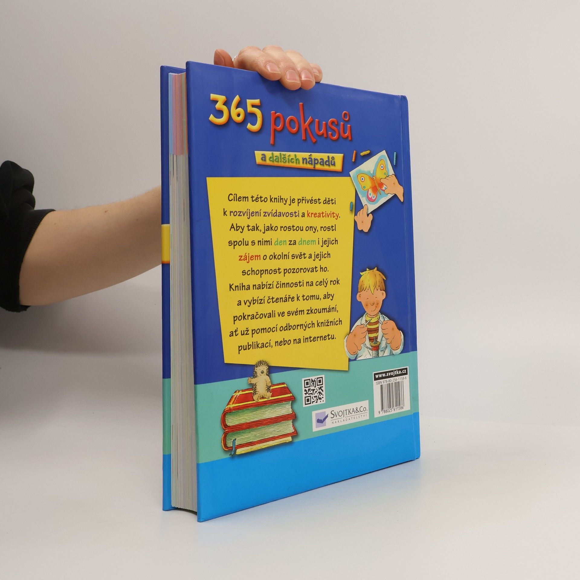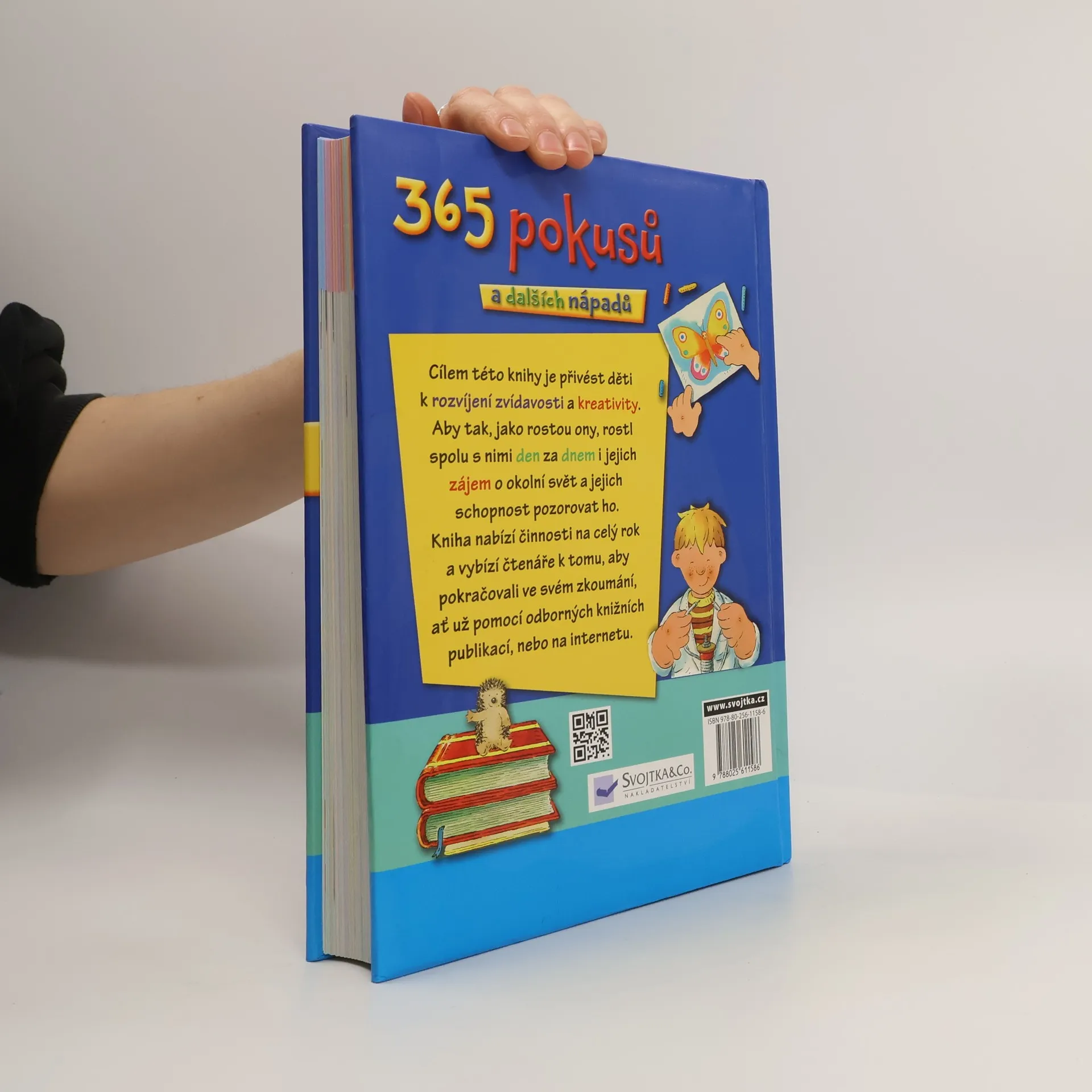 Cílem této knihy je přivést děti k rozvíjení zvídavosti a kreativity. Nabízí 365 různých činností na celý rok - první "vědecké pokusy", různé nápady pro malování a ruční práce, vaření či pozorování přírody. Doufáme, že tato inspirativní knížka děti pobídne k tomu, aby dále pokračovaly ve svém zkoumání a aby tak, jak rostou ony, rostl spolu s nimi den za dnem i jejich zájem o okolní svět a jejich schopnost pozorovat ho!