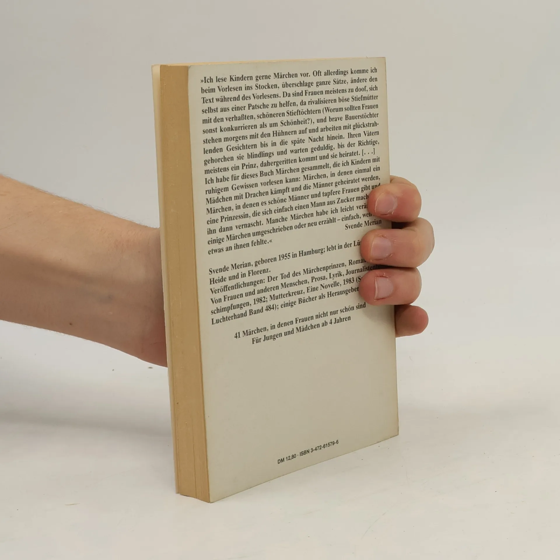 Merian, Svende. Der Mann aus Mein Märchenbuch. Mit Illustrationen von Ludwig Richter. Darmstadt, Luchterhand, 1985. 11,5 x 18cm. 205 Seiten, mit Schwarzweißabbildungen im Text. Originale Broschur. Bindung etwas wellig. Sonst sehr guter Zustand mit nur ganz geringen Gebrauchsspuren. [Sammlung Luchterhand, Band 579]. 41 Märchen, in denen Frauen nicht nur schön sind. Für Jungen und Mädchen ab 4 Jahren. Ich habe für dieses Buch Märchen gesammelt, die ich Kindern mit ruhigem Gewissen vorlesen Märchen, in denen einmal ein Mädchen mit Drachen kämpft und die Männer geheiratet werden, Märchen, in denen es schöne Männer und tapfere Frauen gibt und eine Prinzessin, die sich einfach ein Mann aus Zucker macht und ihn dann vernascht. Manche Märchen habe ich leicht verändert, einige Märchen umgeschrieben oder neu erzählt - einfach, weil mir etwas an ihnen fehlte. [Svende Merian]
