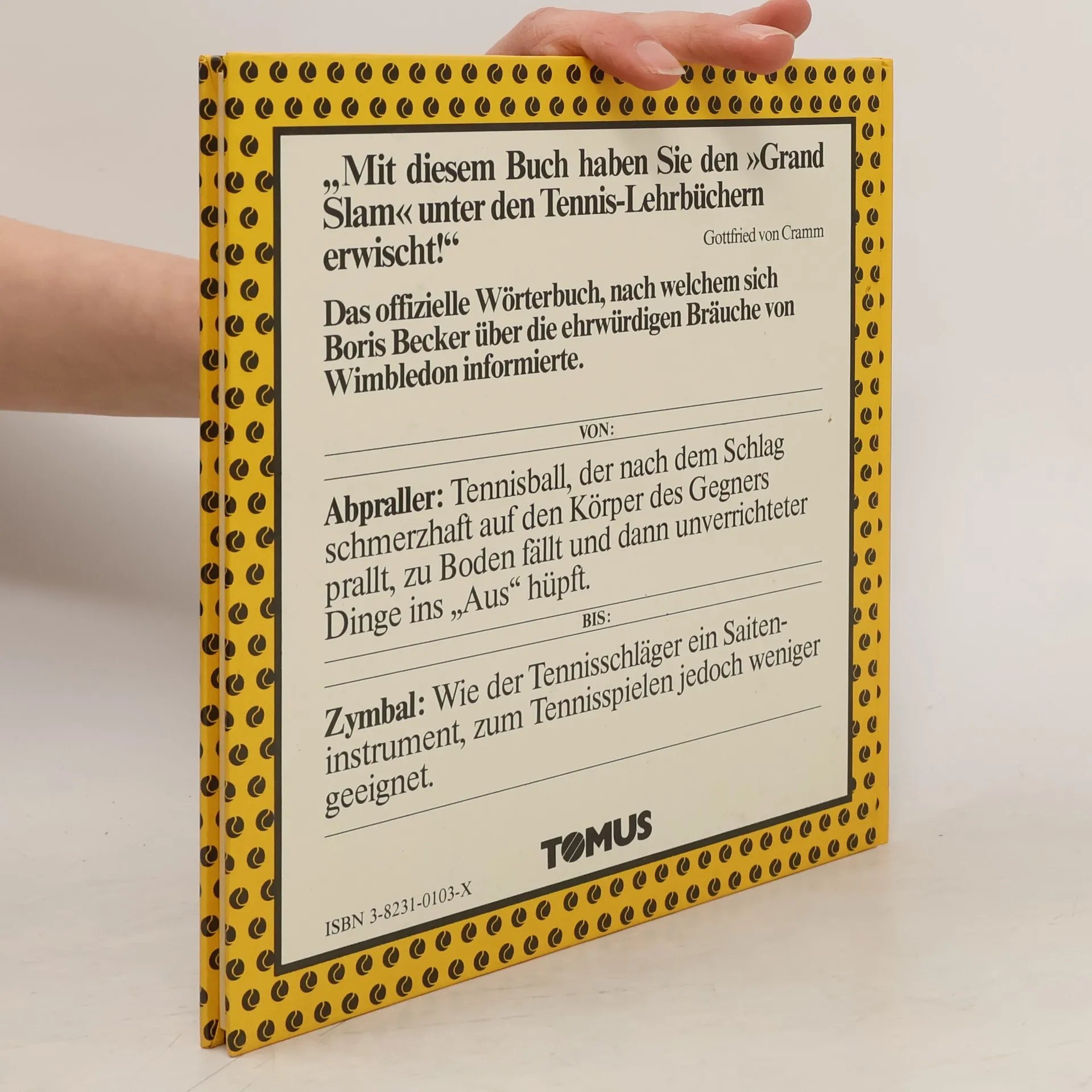 Ten.nis ist die Kunst, auf einen harmlosen Gummiball so loszudreschen, daß entweder der Gegner oder der Ball oder beide für immer vom Platz verschwinden - bk2049; Tomus Verlag; Michael Funcke; Paperback; 1985