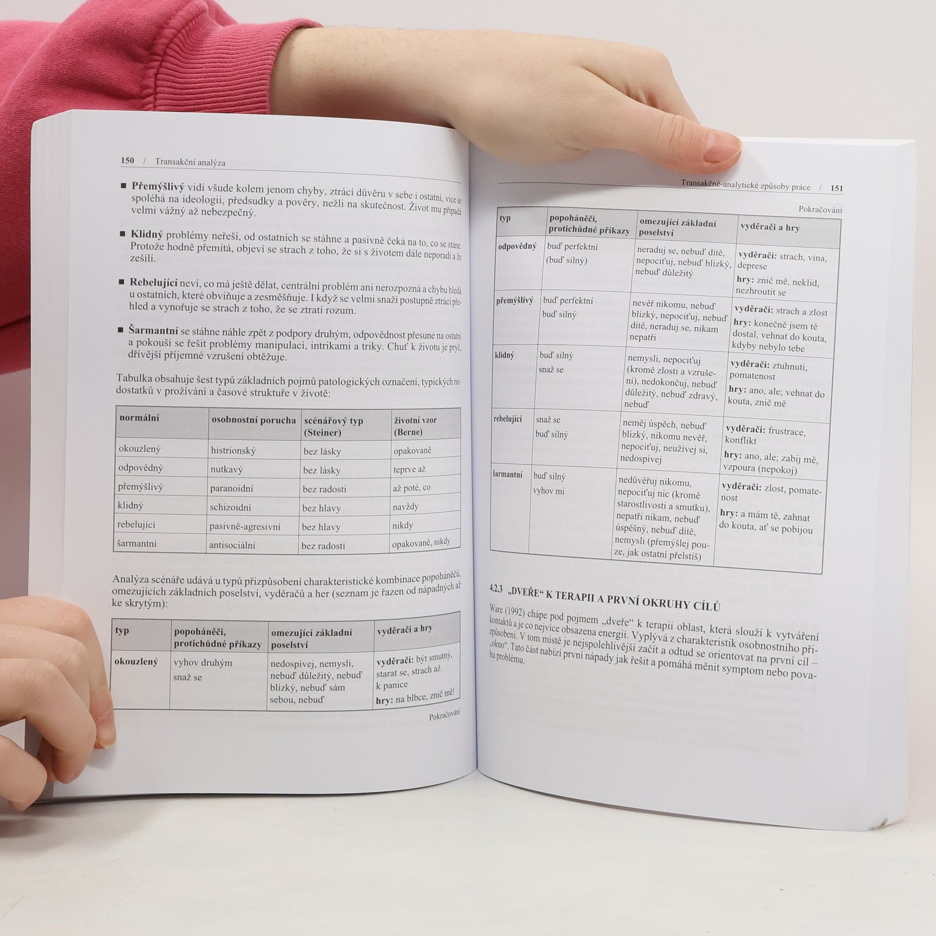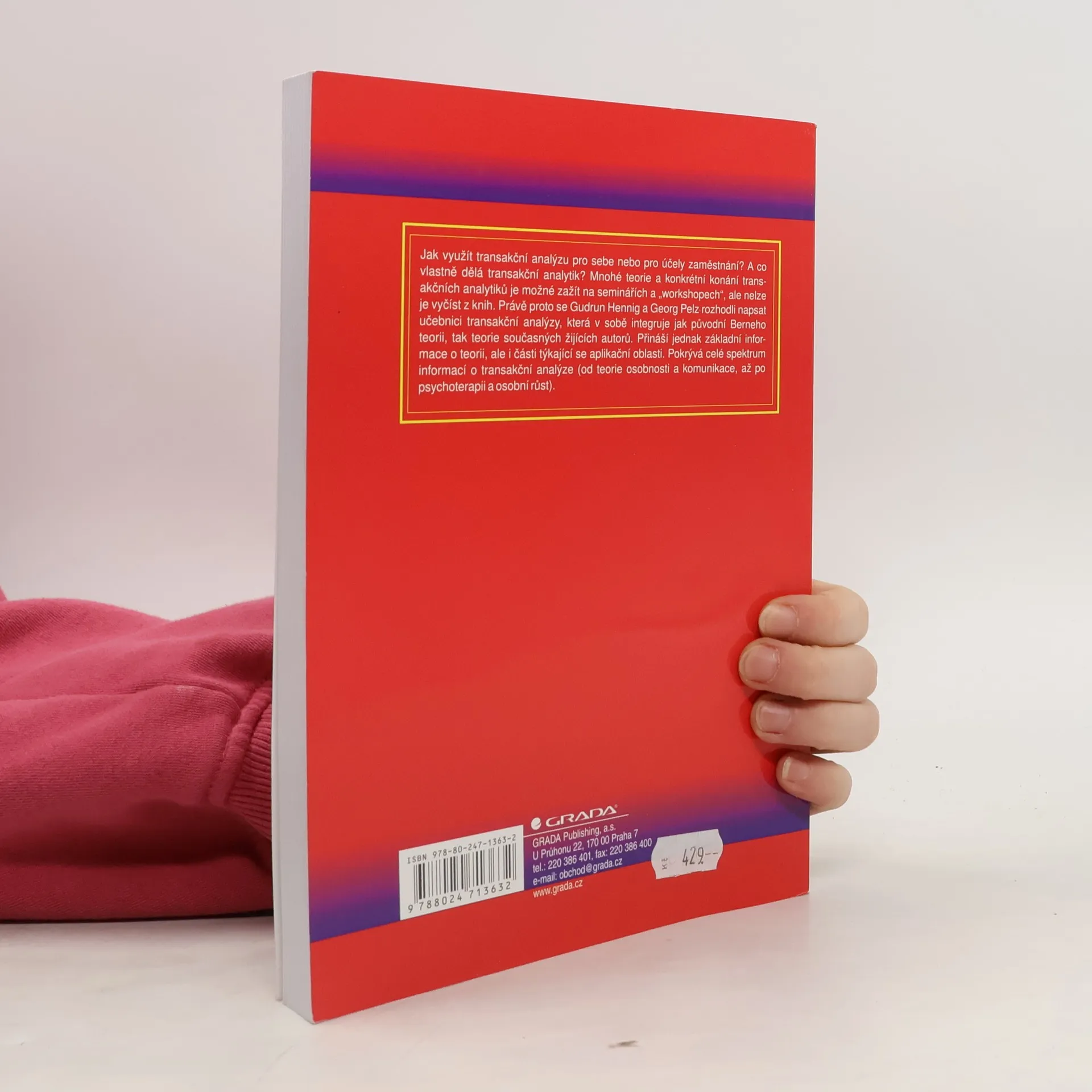 Terapie a poradenství Jak využít transakční analýzu pro sebe nebo pro účely zaměstnání? A co vlastně dělá transakční analytik? Mnoho teorie a konkrétní konání transakčních analytiků je možné zažít na seminářích a \\\"workshopech\\\", ale nelze je vyčíst z knih. Právě proto se autoři rozhodli napsat učebnici transakční analýzy, která v sobě integruje jak původní Berneho teorii, tak teorie současných žijících autorů. Přináší jednak základní informace o teorii, ale i části týkající se aplikační oblasti. Pokrývá celé spektrum informací o transakční analýze (od teorie osobnosti a komunikace, až po psychoterapii a osobnostní růst).
