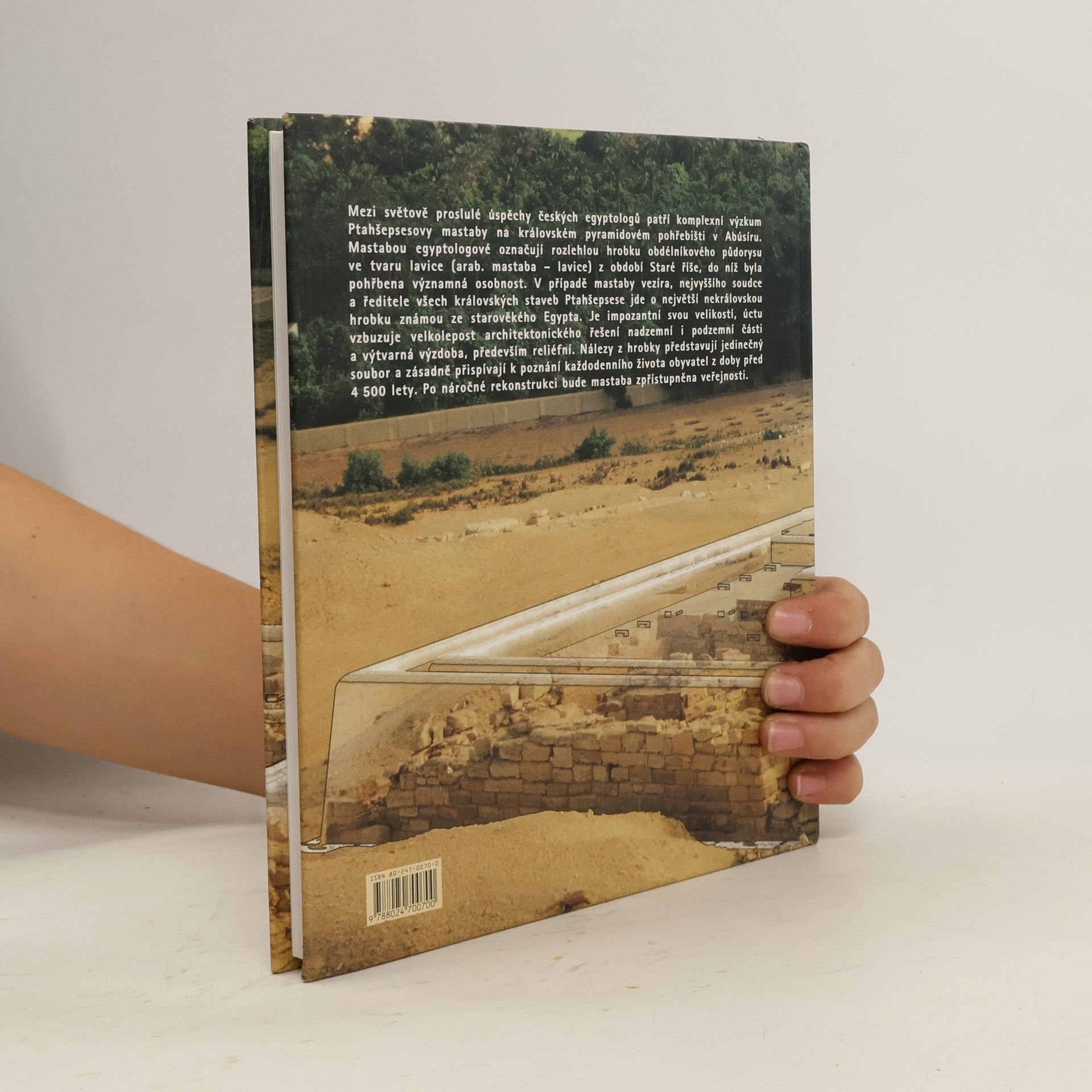 Podtitul: Objevování a rekonstrukce staroegyptské hrobky Další spoluautor: Karel Macek Mezi světově proslulé úspěchy českých egyptologpů patří komplexní výzkum Ptahšepsesovy mastaby na královském pyramidovém pohřebišti v Abúsíru. Mastabou egyptologové označují rozlehlou hrobku obdélníkového půdorysu ve tvaru lavice (arab. mastaba - lavice) z období Staré říše, do níž byla pohřbena významná osobnost. V případě mastaby vezíra, nejvyššího soudce a ředitele všech královských staveb Ptahšepsese jde o největší nekrálovskou hrobku známou ze starověkého Egypta. Je impozantní svou velikostí, úctu vzbuzuje velkolepost architektonického řešení nadzemní i podzemní části a výtvarná výzdoba, především reliéfní. Nálezy z hrobky představují jedinečný soubor a zásadně přispívají k poznání každodenního života obyvatel z doby před 4 500 lety. Po náročné rekonstrukci bude mastaba zpřístupněna veřejnosti