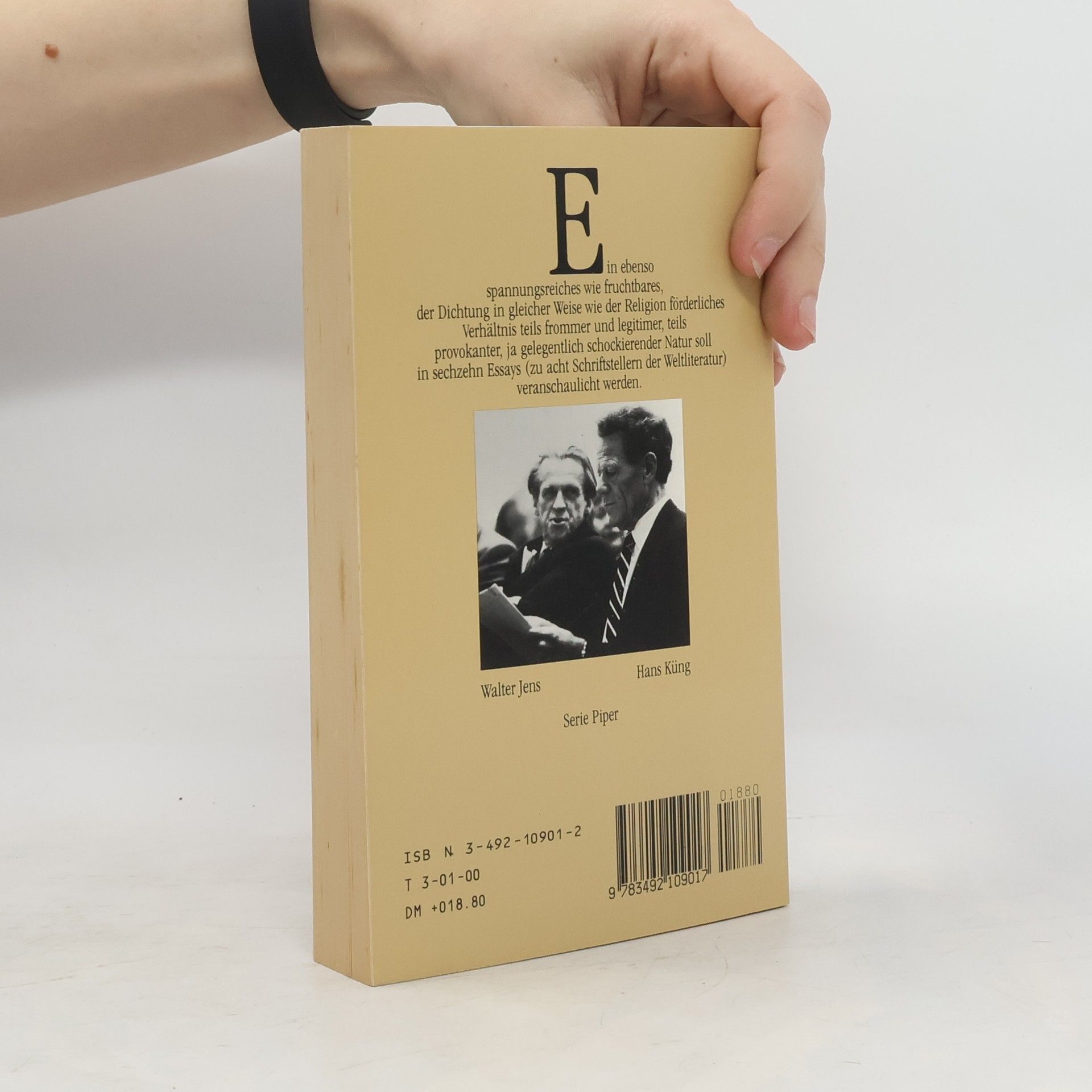Professor Dr. Hans Küng, geboren 1928 in Sursee, Schweiz, begann nach einem dreijährigen Vikariat 1959 seine akademische Laufbahn. Ab 1960 lehrte er Dogmatik und ökumenische Theologie an der Universität Tübingen und wurde 1962 von Papst Johannes XXIII. zum Konzilstheologen ernannt. Seine Gastvorlesungen in den USA, England und Indien fanden großen Anklang. Nach dem Entzug seiner kirchlichen Lehrbefugnis 1979 lehrte er ab 1980 bis zu seiner Emeritierung 1996 als fakultätsunabhängiger Professor für Ökumenische Theologie und übernahm die Direktion des Instituts für ökumenische Forschung in Tübingen. Walter Jens, geboren 1923 in Hamburg, studierte Klassische Philologie und Germanistik in Hamburg und Freiburg. 1944 promovierte er mit einer Arbeit zur Sophokleischen Tragödie und habilitierte sich 1949. Von 1962 bis 1989 hatte er einen Lehrstuhl für Klassische Philologie und Allgemeine Rhetorik in Tübingen inne und war von 1989 bis 1997 Präsident der Akademie der Künste in Berlin. Jens verfasste zahlreiche belletristische und wissenschaftliche Werke sowie Essays und Fernsehkritiken unter dem Pseudonym Momos. Er war seit 1951 mit Inge Jens verheiratet. 1988 erhielten beide den Theodor-Heuss-Preis für ihr Engagement für Zivilcourage und persönliche Verantwortung. Walter Jens starb am 9. Juni 2013 in Tübingen.