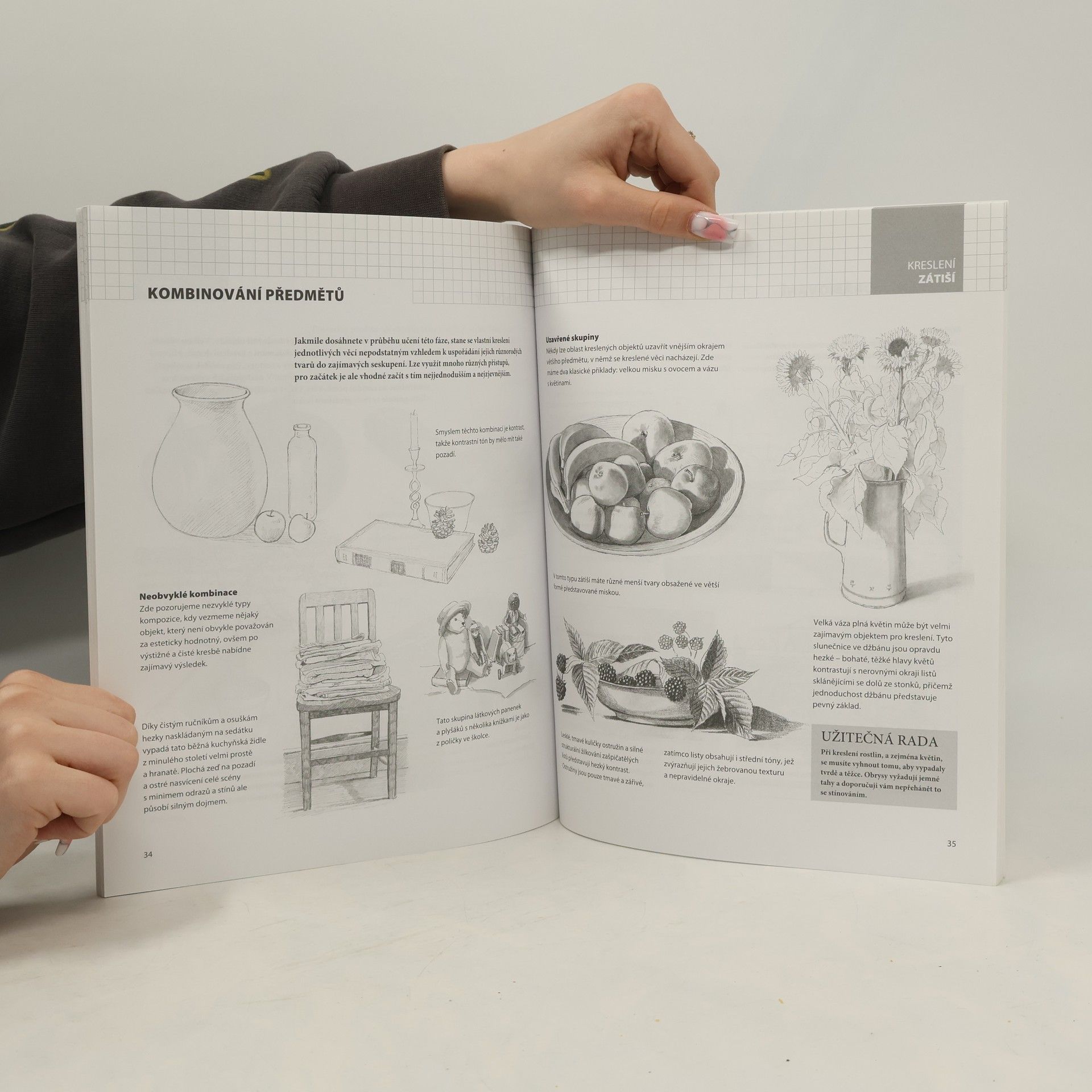 Praktická příručka provází celým procesem kreslení zátiší - od kresby jednoduchých předmětů až po vytváření složitějších kompozic.