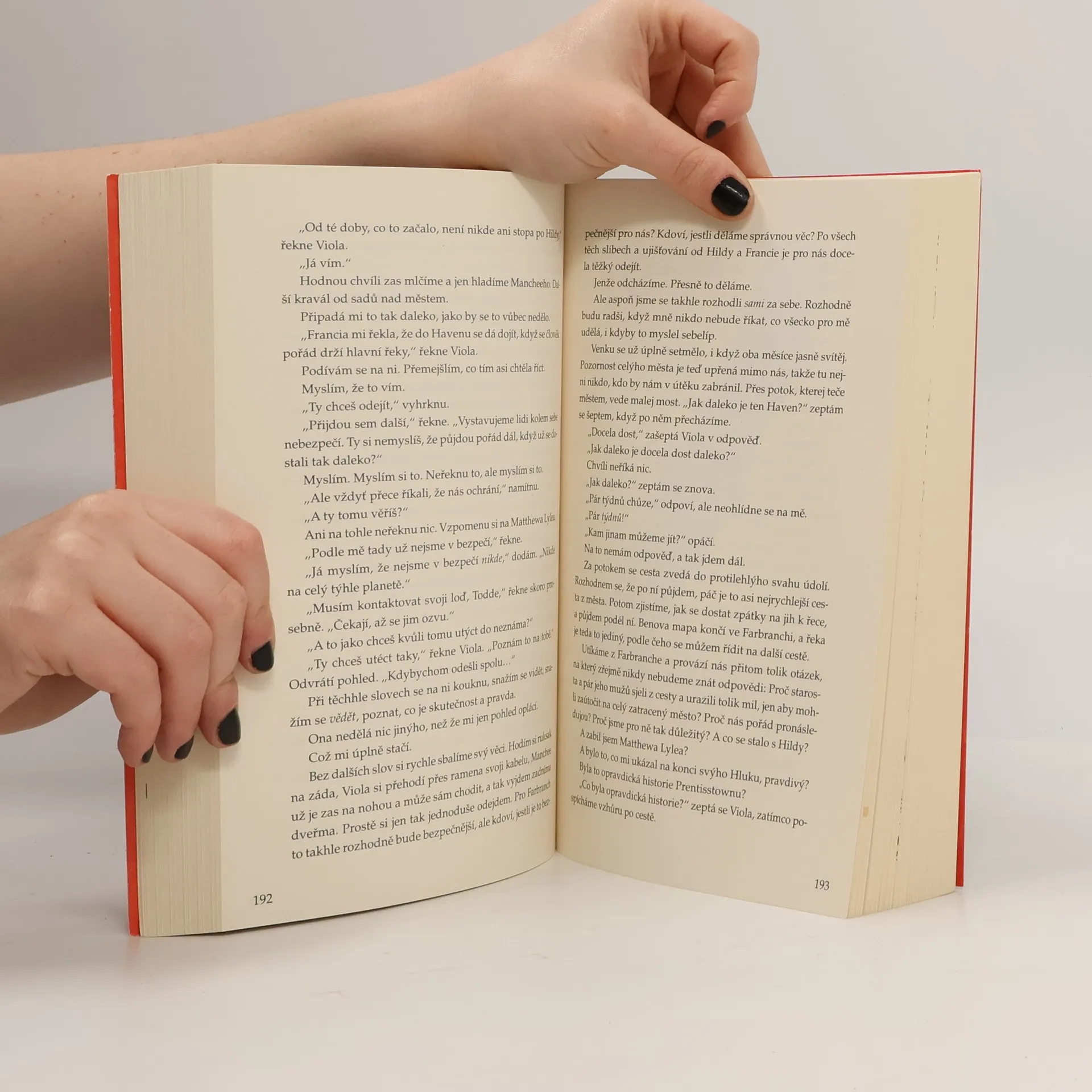 První díl napínavé dystopické trilogie oceňovaného autora Patricka Nesse, který si získal přízeň čtenářů po celém světě. Představte si, že žijete ve městě, kde každý dokáže slyšet vaše myšlenky. Představte si, že jste ustavičně obklopeni myšlenkovým mrakem - Hlukem, který spojuje mysli všech obyvatel města a nikdy vás nenechá na pokoji. Pro dvanáctiletého Todda je to každodenní realita. Ale ve chvíli, kdy začne odpočítávat dny, které mu zbývají do třináctých narozenin, nalezne něco zdánlivě nemožného: místo, kde Hluk neexistuje. Todd nechtěně objeví tajemství, která měla zůstat navždy ukrytá, a musí i se svým věrným psem prchnout, aby si zachránil holý život. Je ale vůbec možné uniknout pronásledovatelům, když kvůli Hluku dokáží slyšet každou myšlenku?