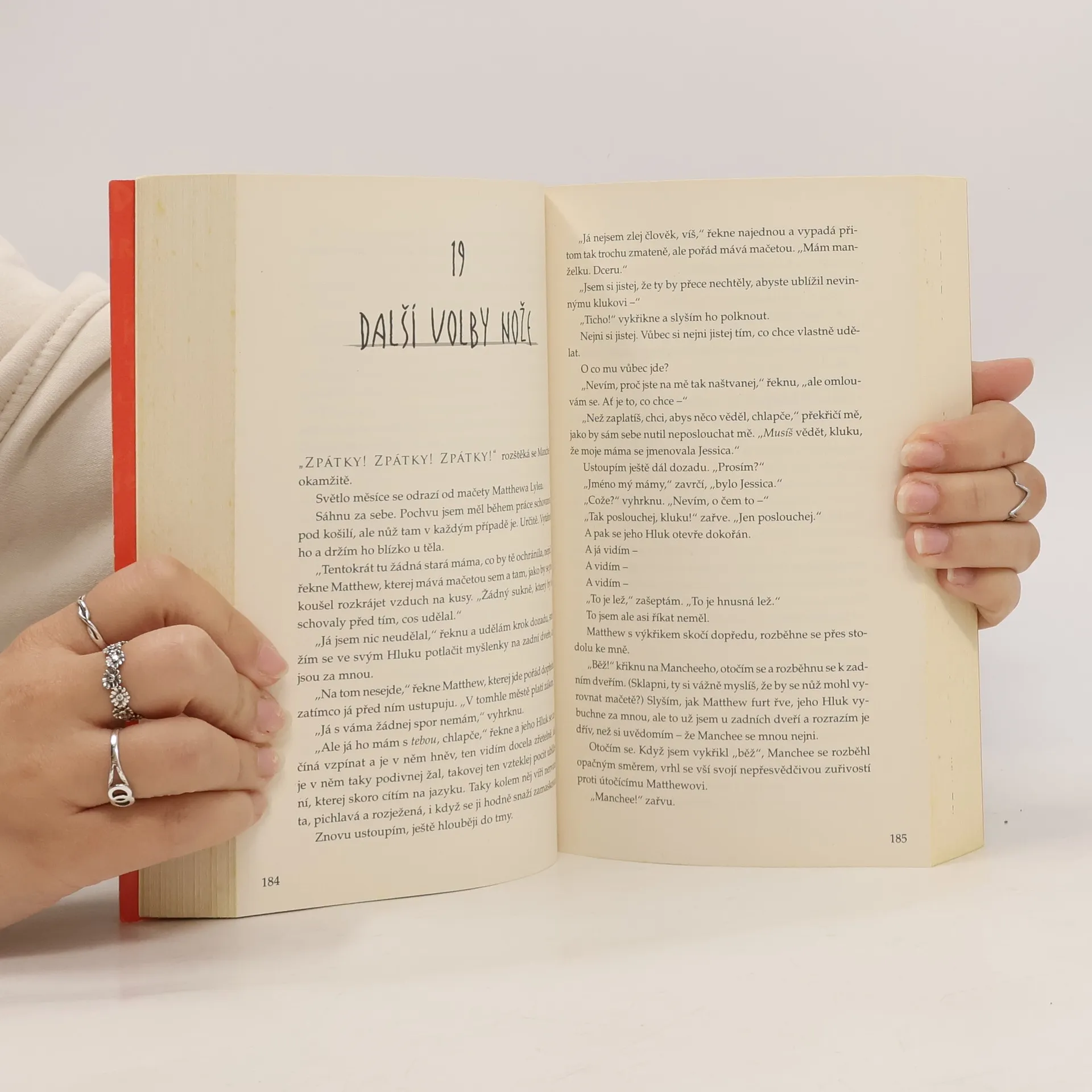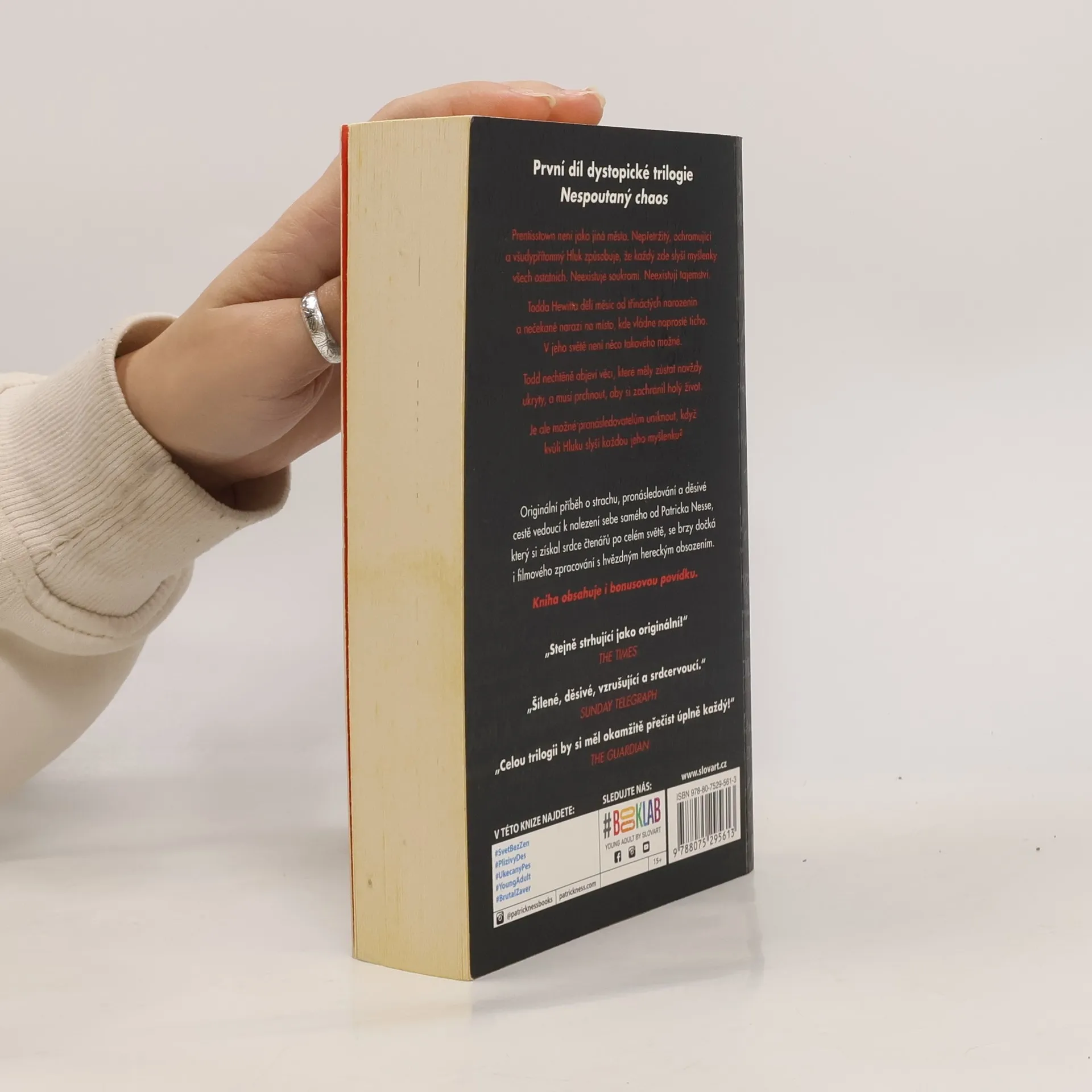 První díl napínavé dystopické trilogie oceňovaného autora Patricka Nesse, který si získal přízeň čtenářů po celém světě. Představte si, že žijete ve městě, kde každý dokáže slyšet vaše myšlenky. Představte si, že jste ustavičně obklopeni myšlenkovým mrakem - Hlukem, který spojuje mysli všech obyvatel města a nikdy vás nenechá na pokoji. Pro dvanáctiletého Todda je to každodenní realita. Ale ve chvíli, kdy začne odpočítávat dny, které mu zbývají do třináctých narozenin, nalezne něco zdánlivě nemožného: místo, kde Hluk neexistuje. Todd nechtěně objeví tajemství, která měla zůstat navždy ukrytá, a musí i se svým věrným psem prchnout, aby si zachránil holý život. Je ale vůbec možné uniknout pronásledovatelům, když kvůli Hluku dokáží slyšet každou myšlenku?