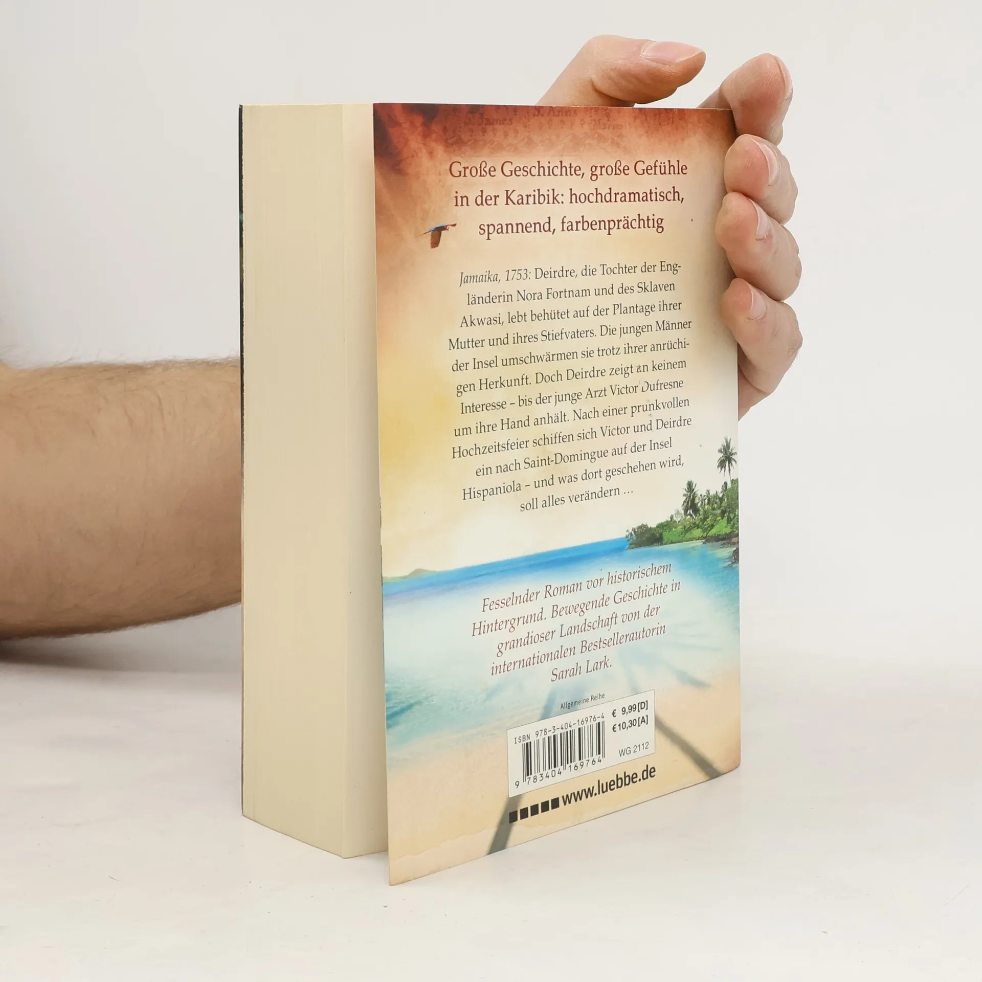 Jamaika, 1753: Deirdre, die Tochter der Engländerin Nora Fortnam und des Sklaven Akwasi, lebt behütet auf der Plantage ihrer Mutter und ihres Stiefvaters. Die jungen Männer der Insel umschwärmen sie trotz ihrer anrüchigen Herkunft. Doch Deirdre zeigt kein Interesse, bis der junge Arzt Victor Dufresne um ihre Hand anhält. Nach einer prunkvollen Hochzeitsfeier schiffen sich Victor und Deirdre ein nach Saint-Domingue auf der Insel Hispaniola. Und was dort geschehen wird, soll alles verändern ... Fesselnder Roman vor historischem Hintergrund. Bewegende Geschichte in grandioser Landschaft von der internationalen Bestsellerautorin Sarah Lark.