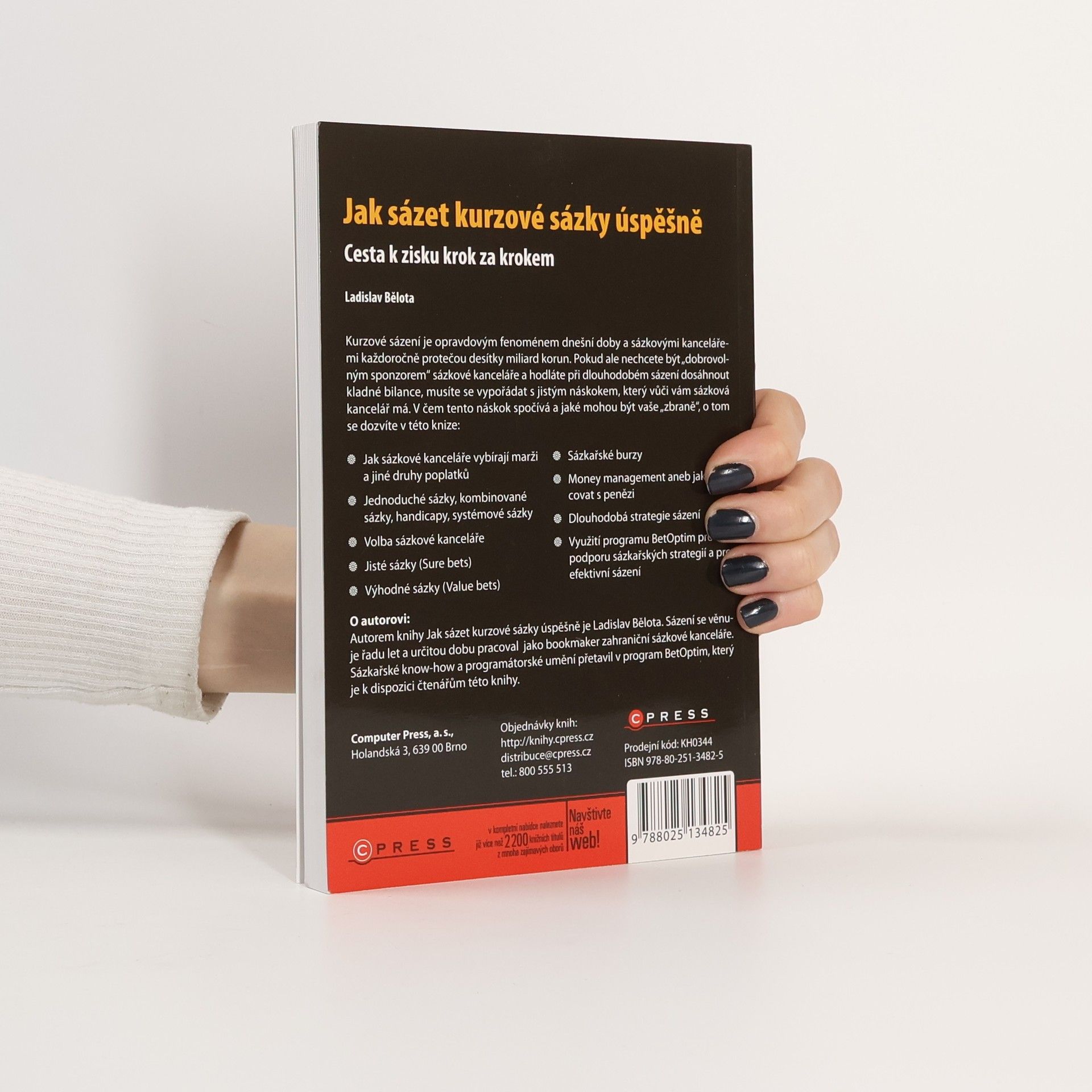 Autor, který zná kurzové sázení jak z pozice sázkaře, tak z pozice bookmakera, předkládá čtenářům své kompletní know how. V knize naleznete popis sázkařských strategií včetně potřebné finanční matematiky, návody jak zvýšit výtěžnost vlastních vkladů sázek, jak využívat sázkařských burz typu Betfair a mnoho dalších cenných informací. Čtenář knihy si navíc může zdarma instalovat užitečný sázkařský program BetOptim. (cesta k zisku krok za krokem)
