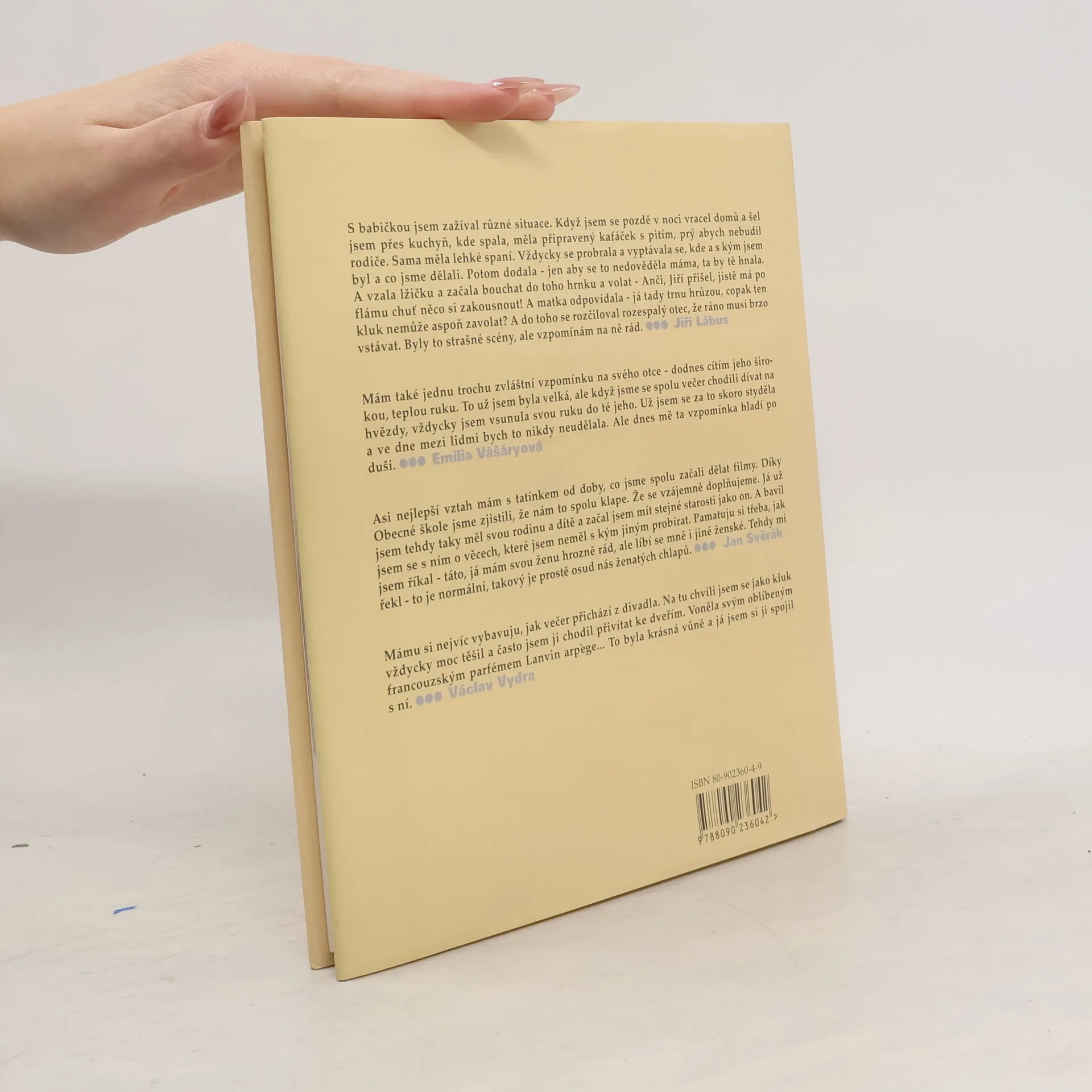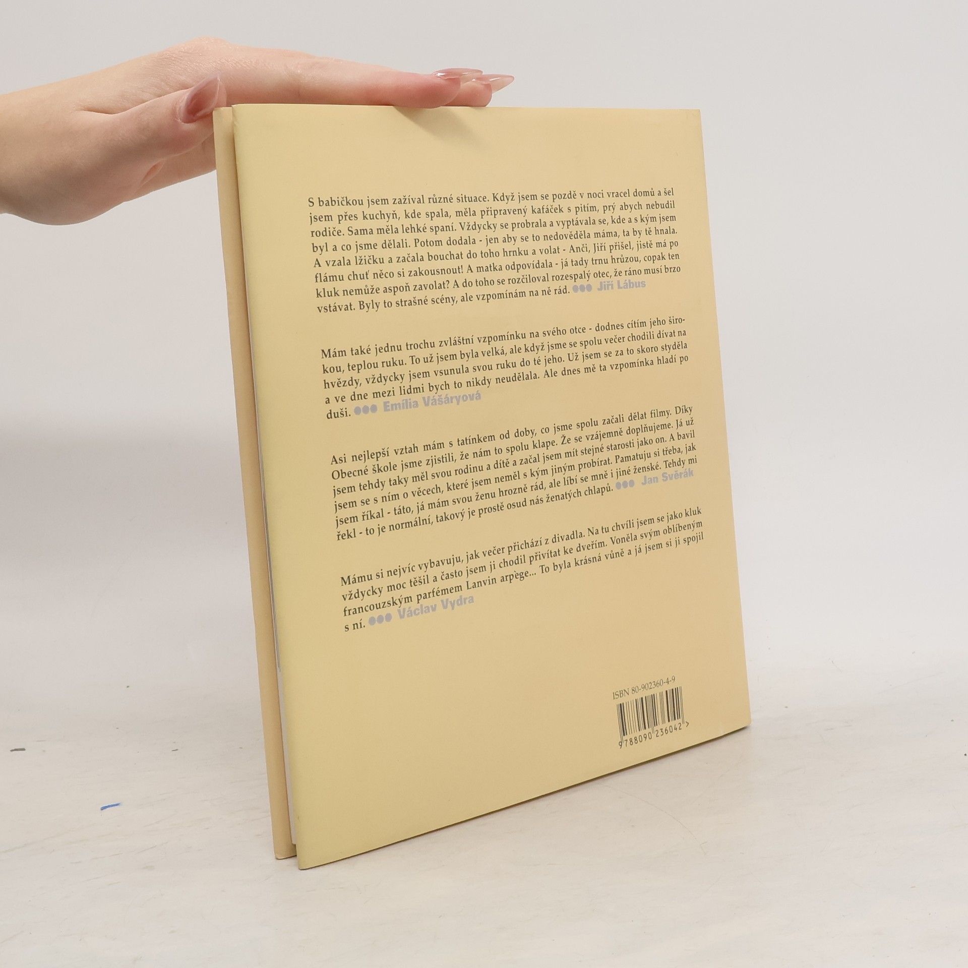 Společným jmenovatelem vzpomínek takřka čtyř desítek osobností české kultury jsou jejich rodiče a dětství. Boris Dočekal, který vyprávění zaznamenal, se ve výběru osobností neomezil jen na známé herce, zpěváky a výtvarníky, ale oslovil také potomky českých šlechticů, v jejichž osudech se odráží osud tohoto národa. Oč silnější a citlivější je dotazovaná osobnost, o to bohatší a autentičtější je její vzpomínání.
