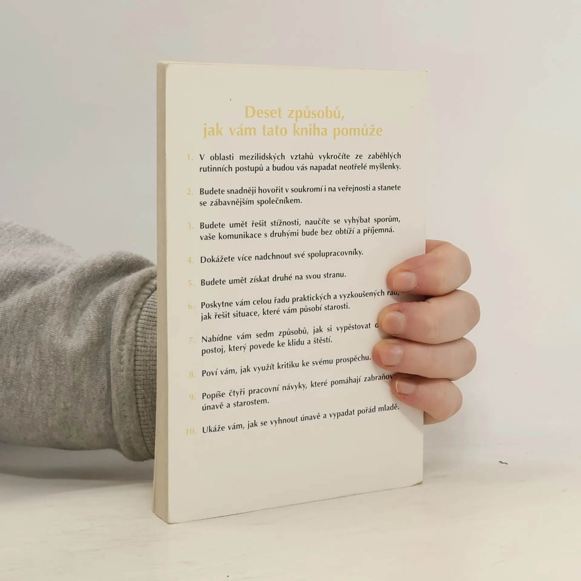 Výběr z knih Jak získávat přátele a působit na lidi, Jak se zbavit starostí a začít žít. Podle amerického originálu sestavil Svatoslav Gosman s použitím překladů Jak získávat přátele a působit na lidi (překlad Tomáš Hrách) a Jak se zbavit starostí a začít žít (překlad Svatoslav Gosman). Úvod napsala Dorothy Carnegiová.