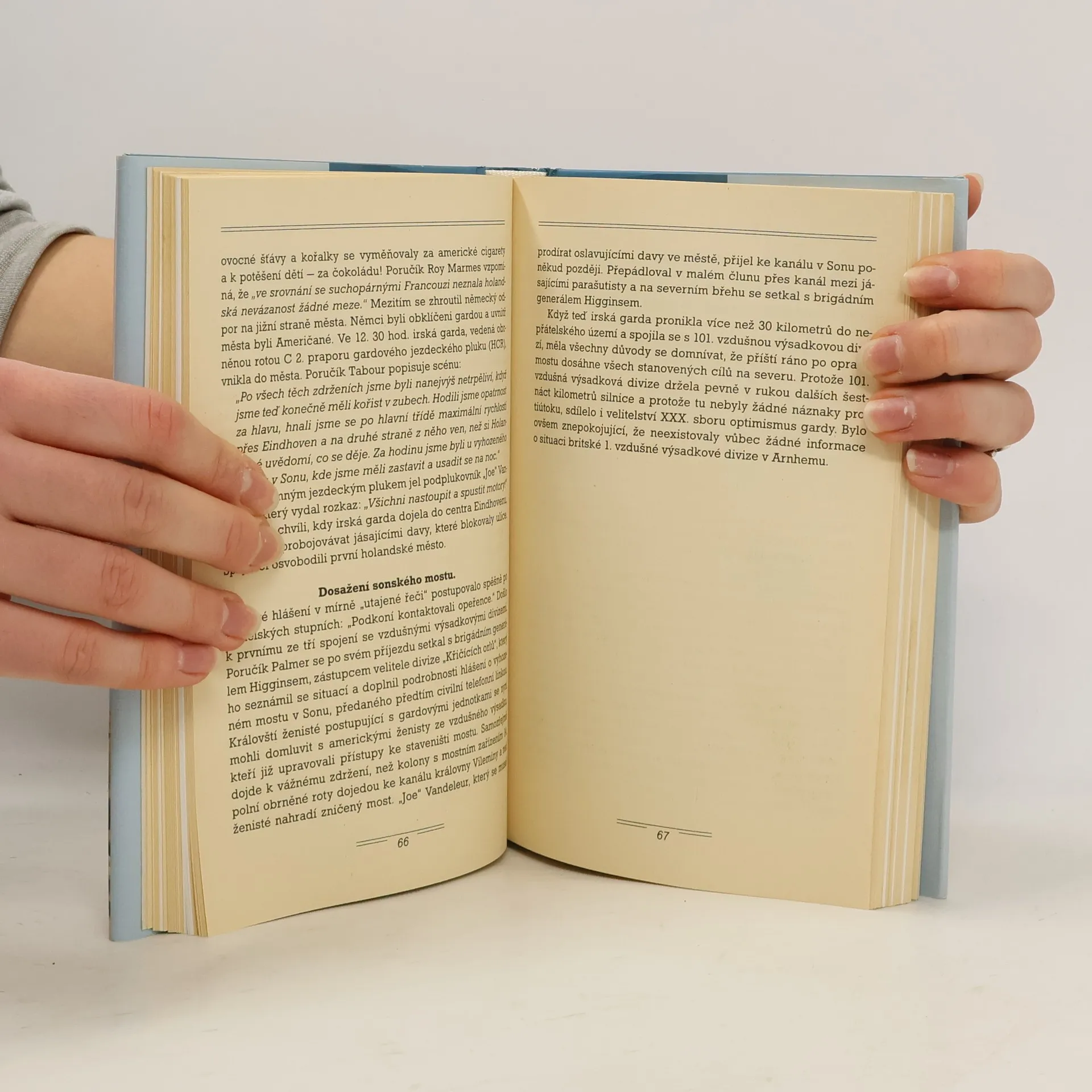 Tento svazek knižnice Bojiště Evropy je věnován úloze, kterou ve velkém kombinovaném tažení v září 1944 v Holandsku sehrála americká 101. vzdušná výsadková divize a britský XXX. sbor, zejména jeho gardová obrněná divize. V operaci Market Garden měly tři parašutistické divize a jedna polská parašutistická brigáda seskočit v Holandsku v týlu Němců, zmocnit se mostů a obsadit a vyčistit silnici od holandsko–německých hranic až po město Arnhem, aby tudy bez velkých překážek mohl bleskově projet britský XXX. sbor, obejít severně od Arnhemu německou Siegfriedovu linii a bez zastávek se pod velením polního maršála Montgomeryho hnát na Berlín. Kniha líčí kombinaci odborného výkladu kvalifikovaného historika, výňatků z kronik příslušných jednotek od roty po divize a sbor a vzpomínek účastníků bojů mimořádně barvitě průlom německé obrany XXX. sborem a boje 101. divize na prvním úseku této dlouhé cesty. Více než sto dobových i současných fotografií ještě zvyšuje dokumentární hodnotu knihy.